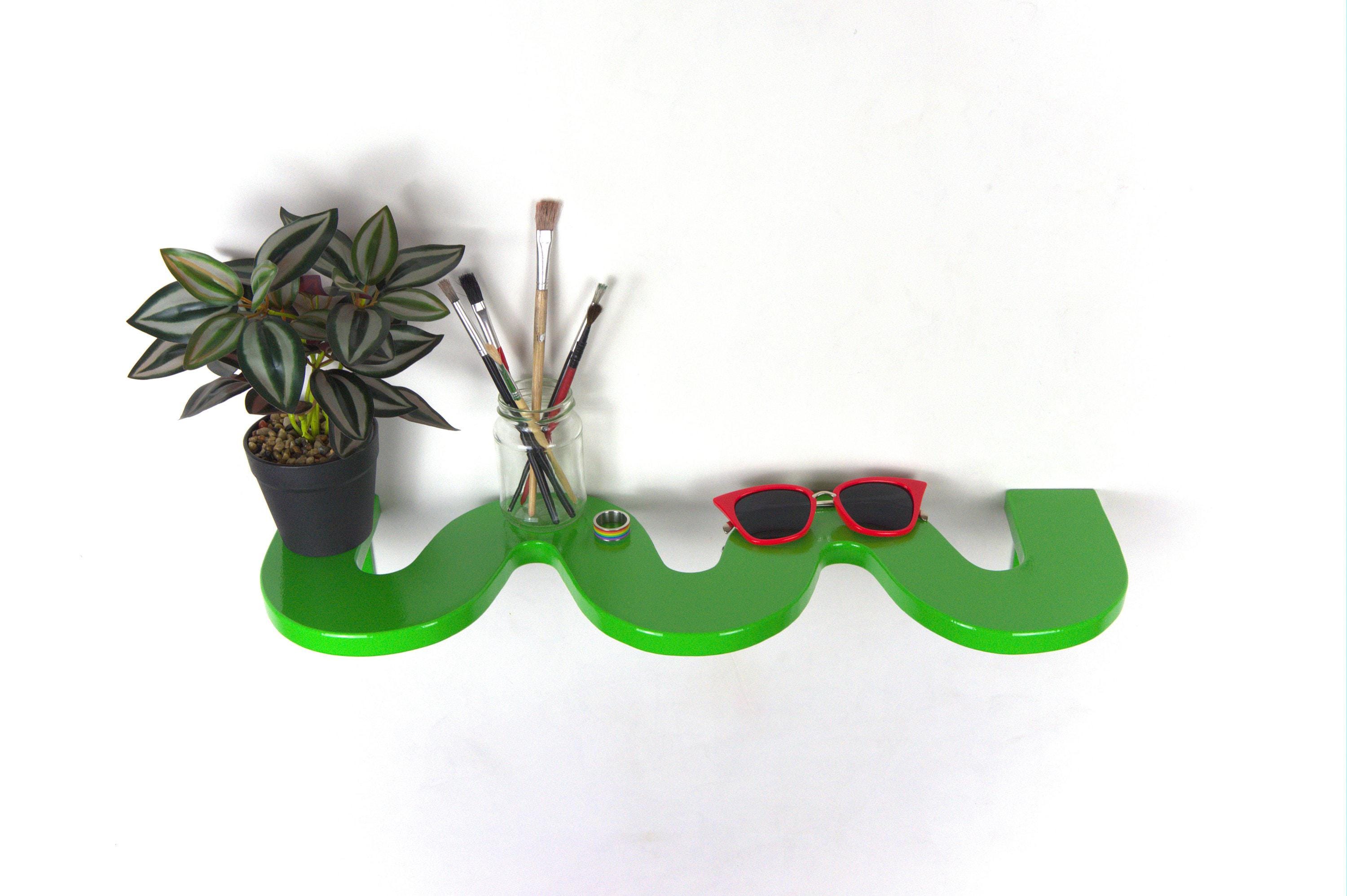 Squiggle Shelf - Green Colorful Shelf, Aesthehic Home Decor, Maximalist, Curvy Shelf, Eclectic Decor