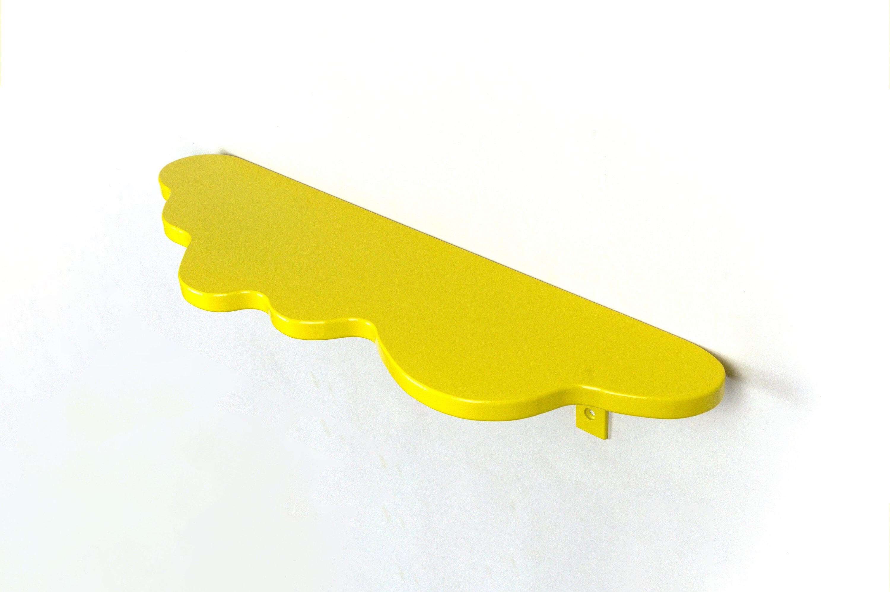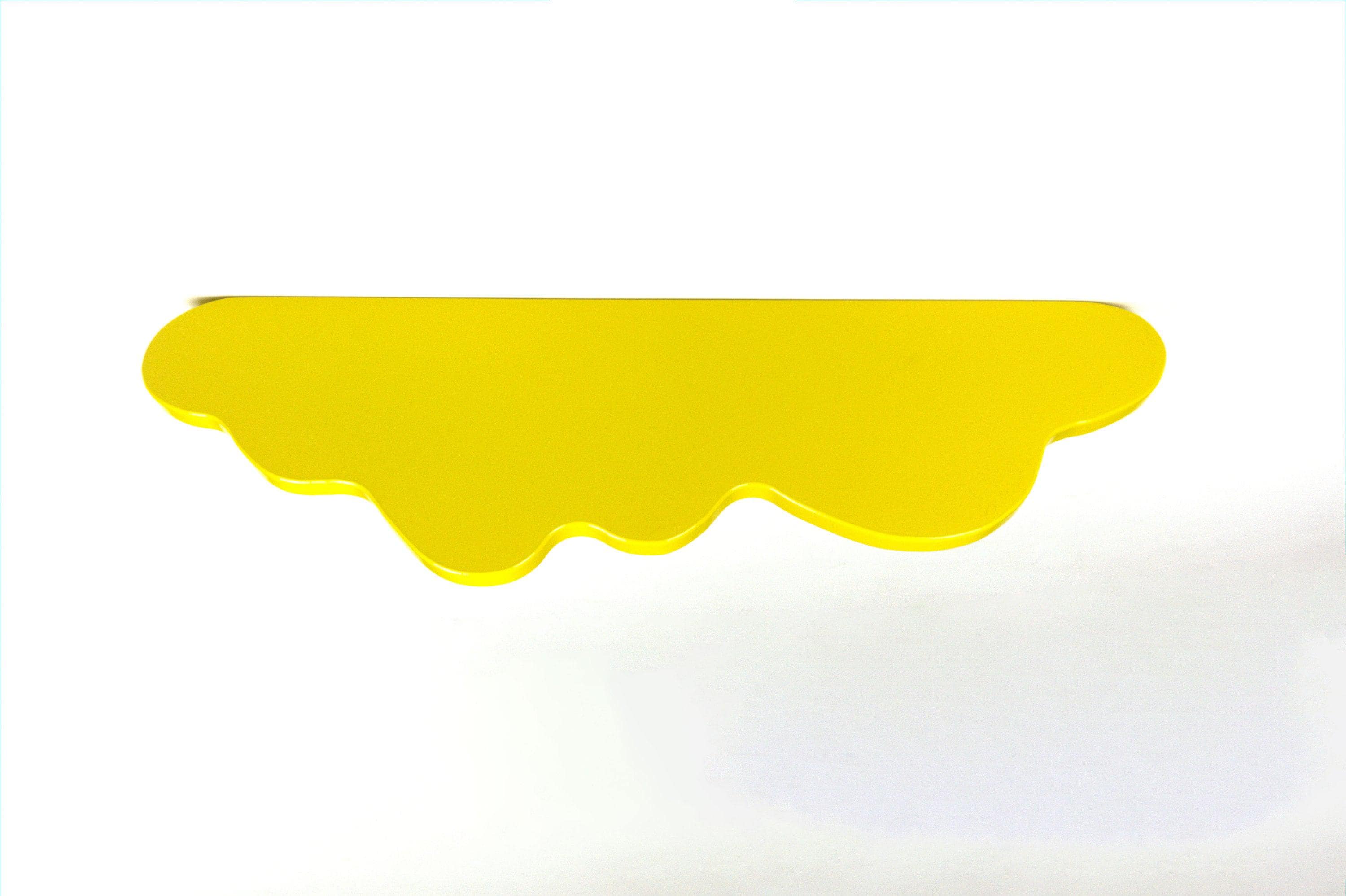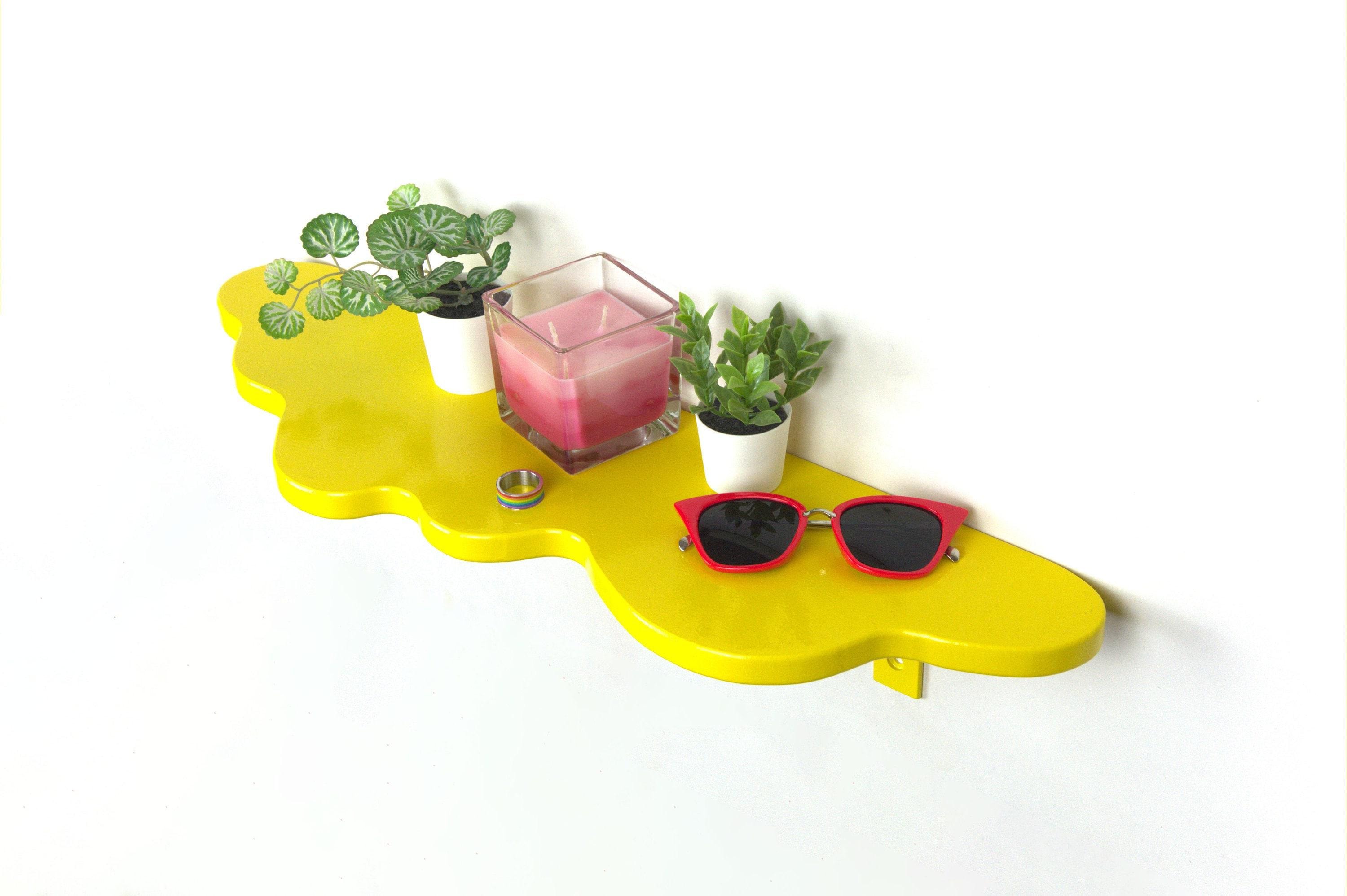 Add a touch of sunshine to your home with our yellow wall mounted shelf. This handmade floating shelf is perfect for displaying plants, books, or other decorative items. It's sure to brighten up any room!