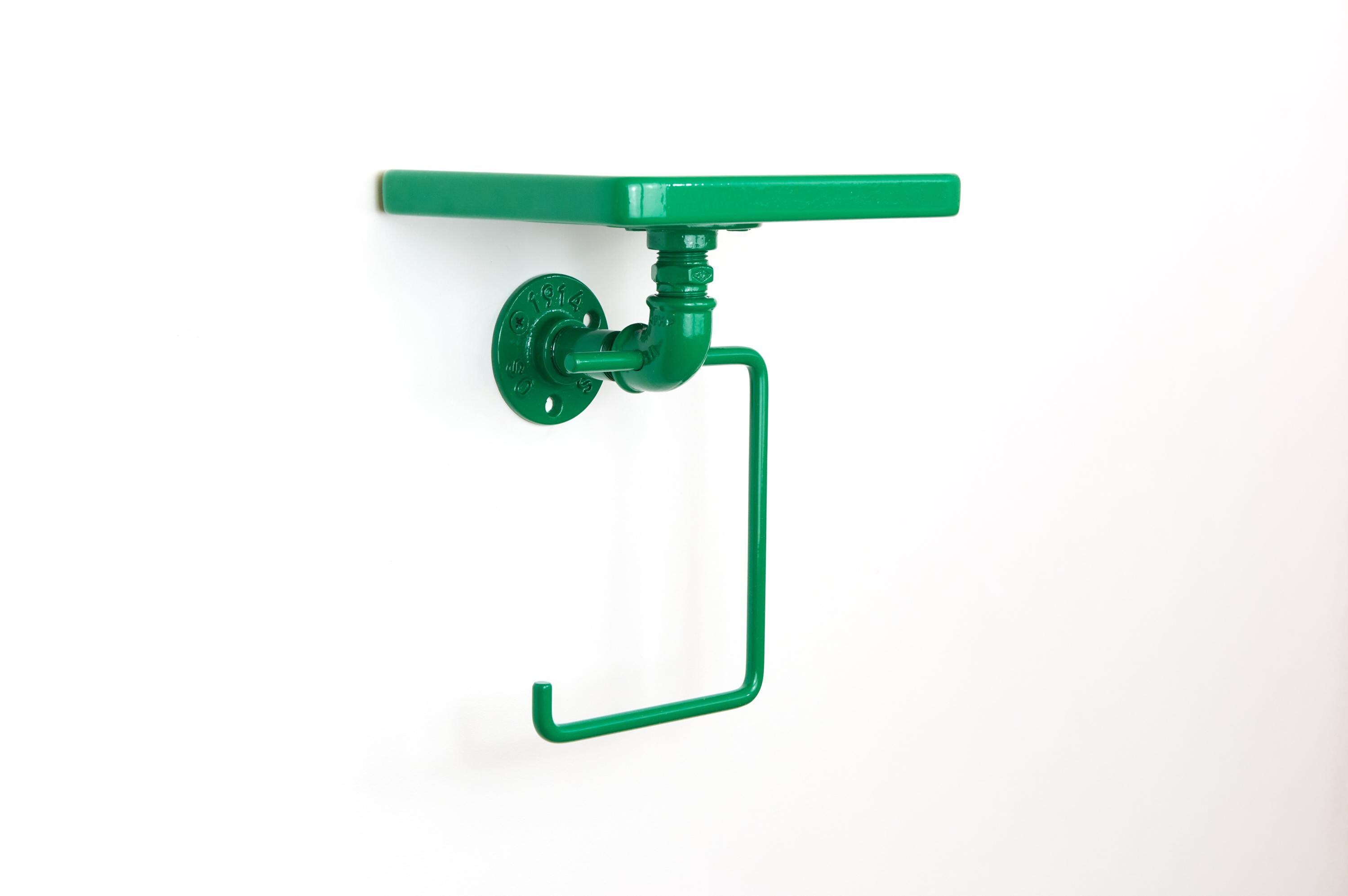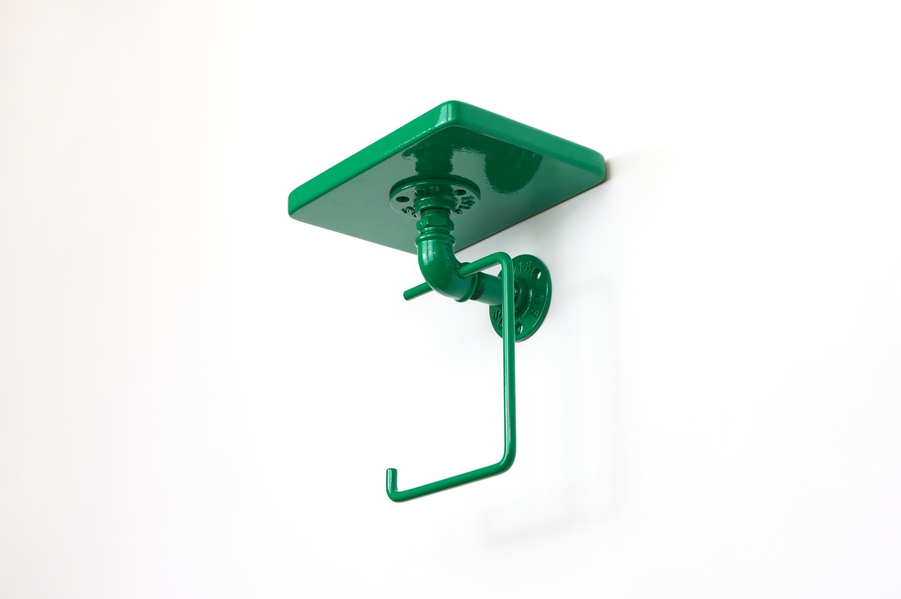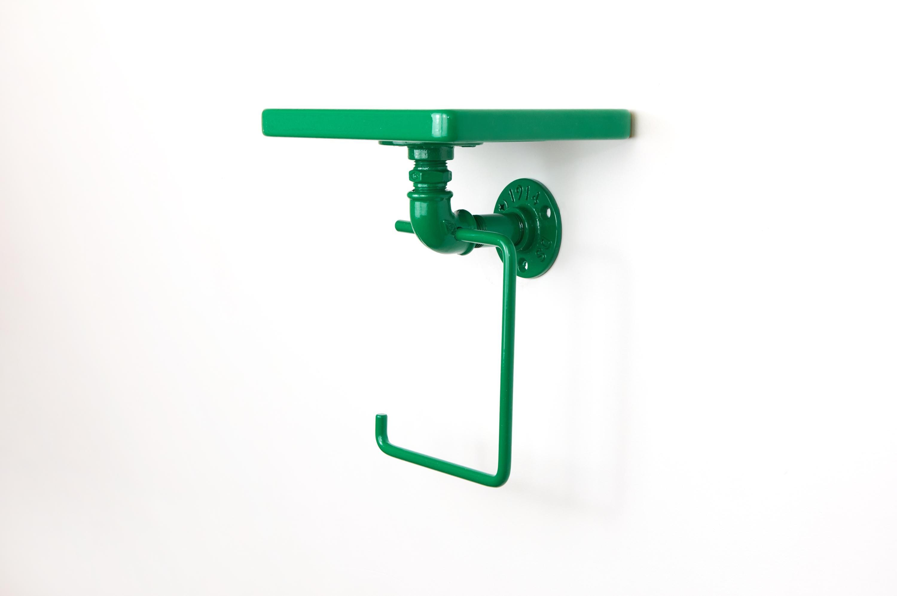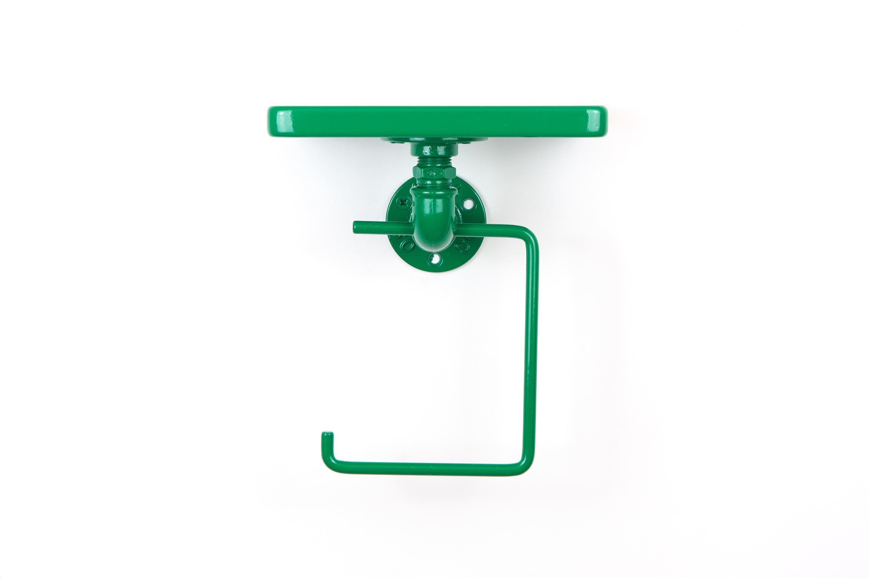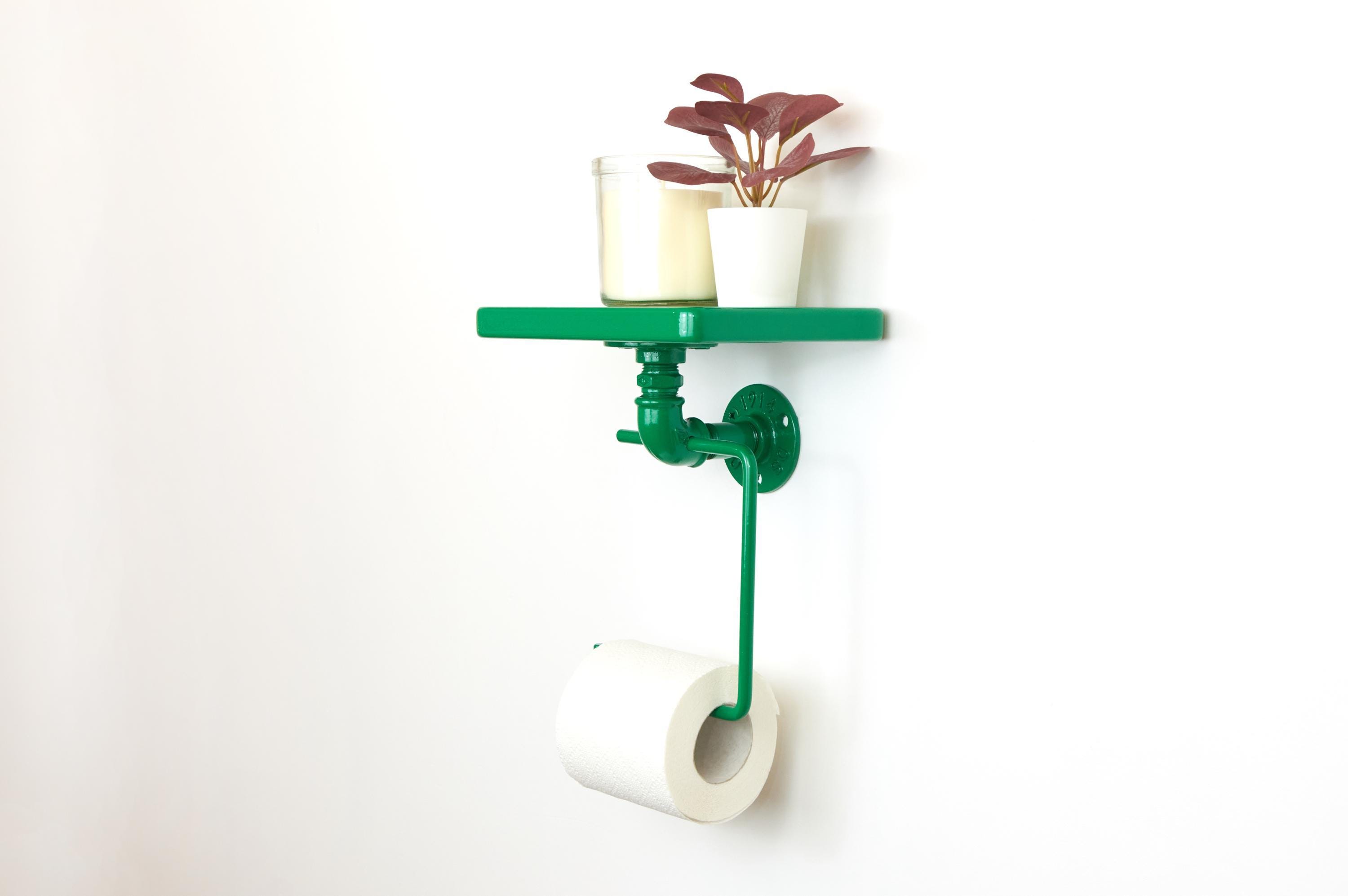 Upgrade your bathroom with this vibrant toilet paper roll holder with a shelf. A stylish and functional storage solution for any home! The color of the product in the pictures is Dark Green Gloss.