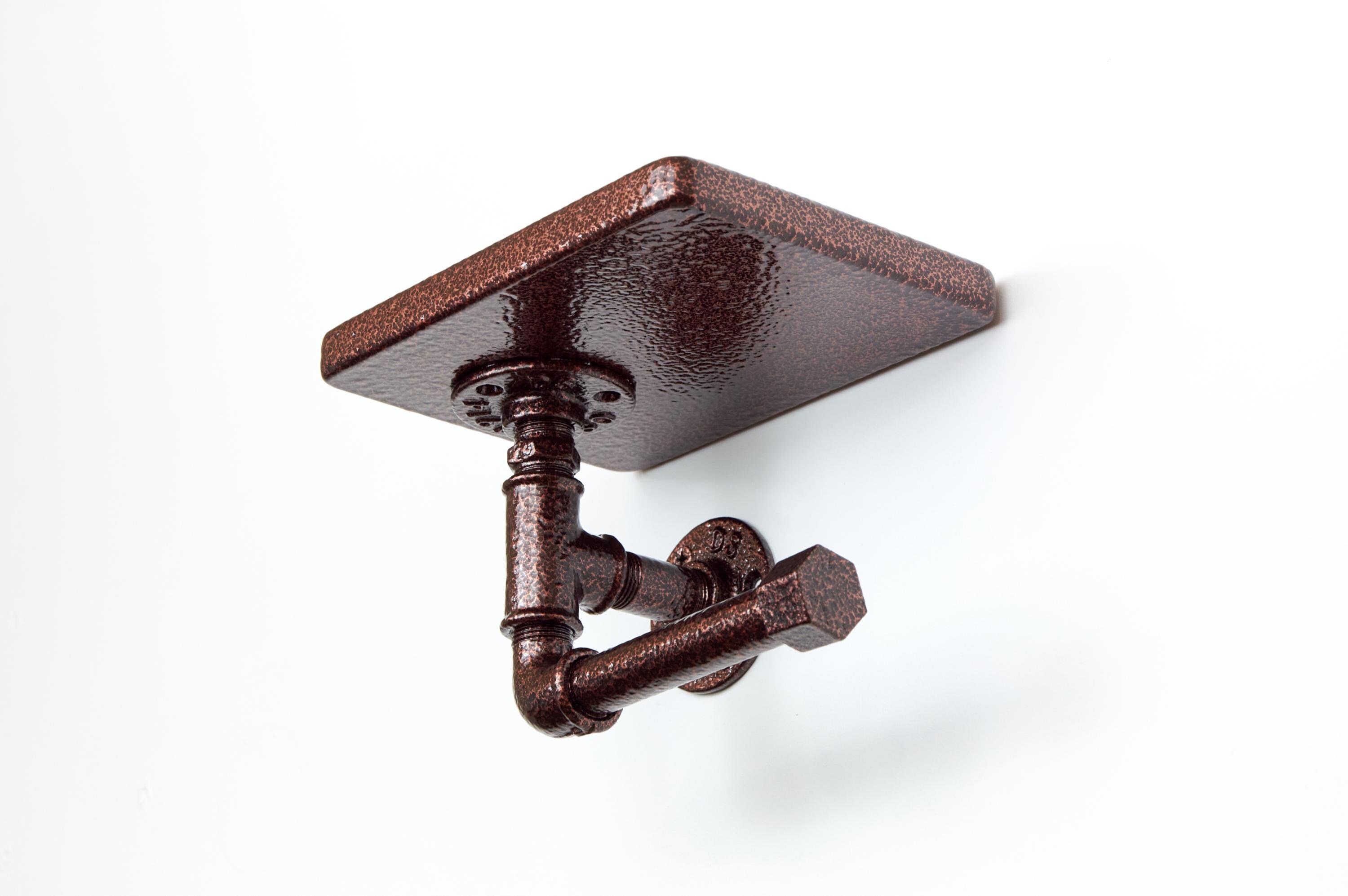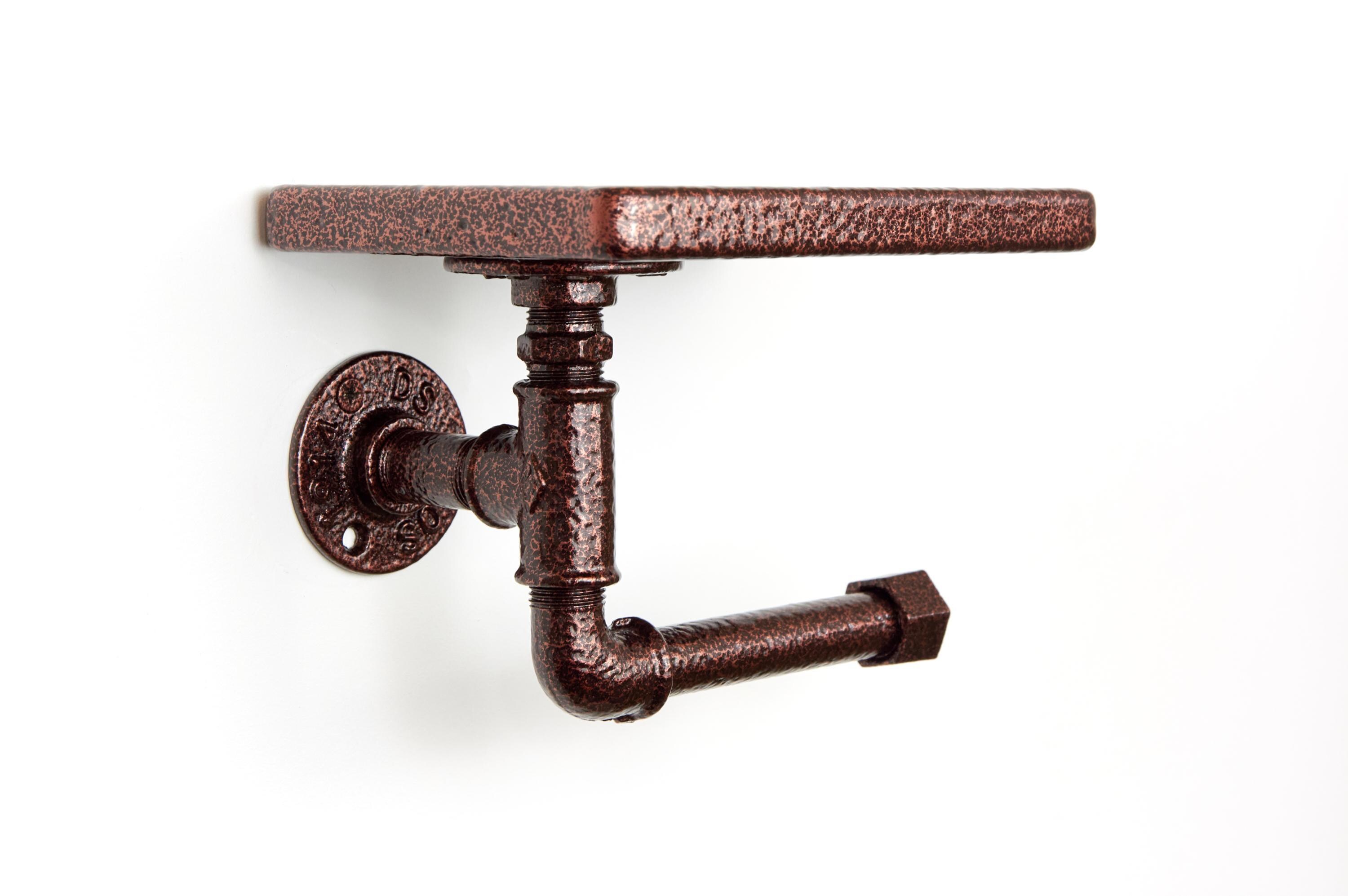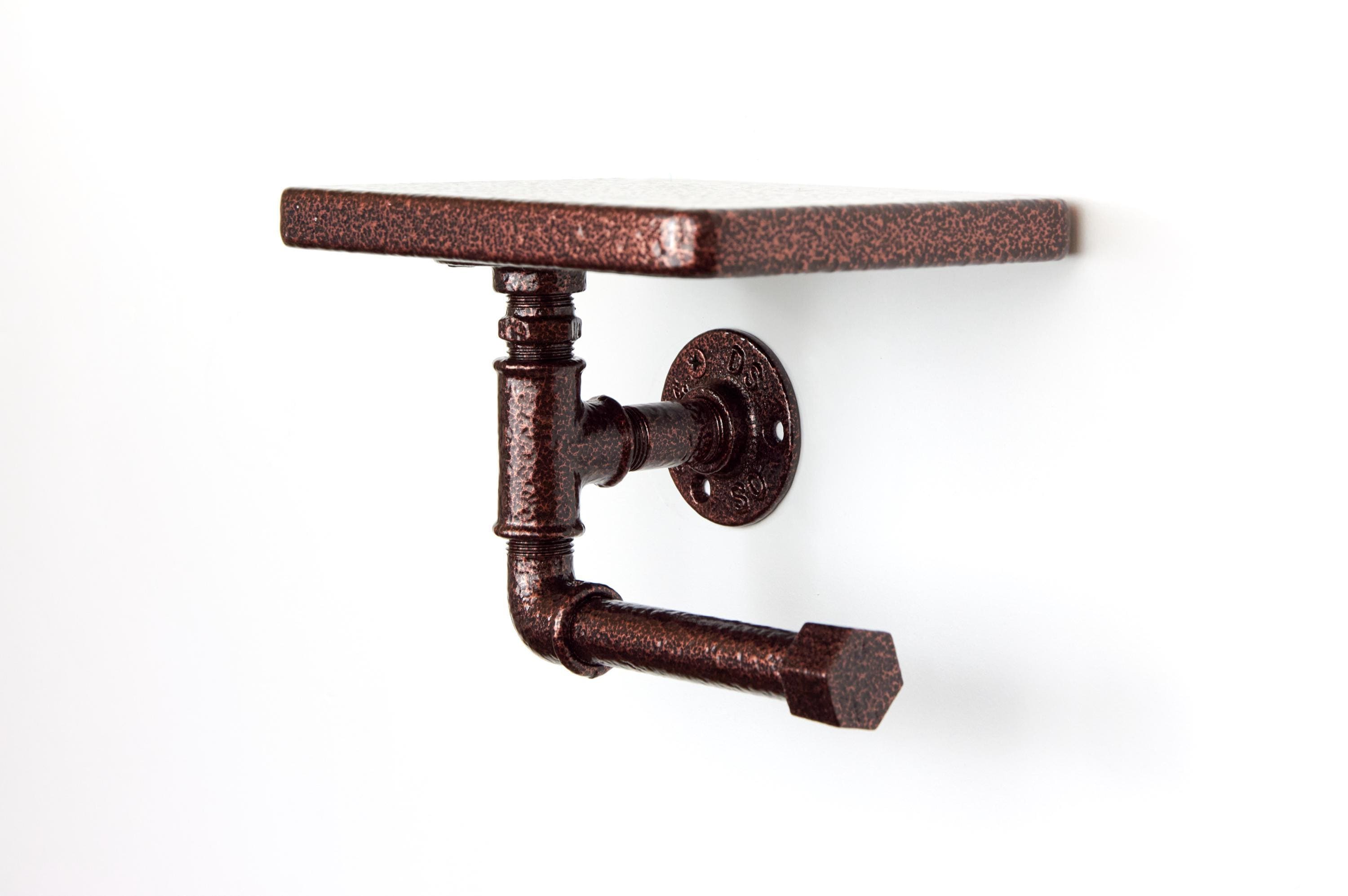 Bring rustic charm to your bathroom with this toilet paper roll holder with a shelf. A perfect farmhouse decor piece for stylish organization! The color of the product in the pictures is Antique Copper.