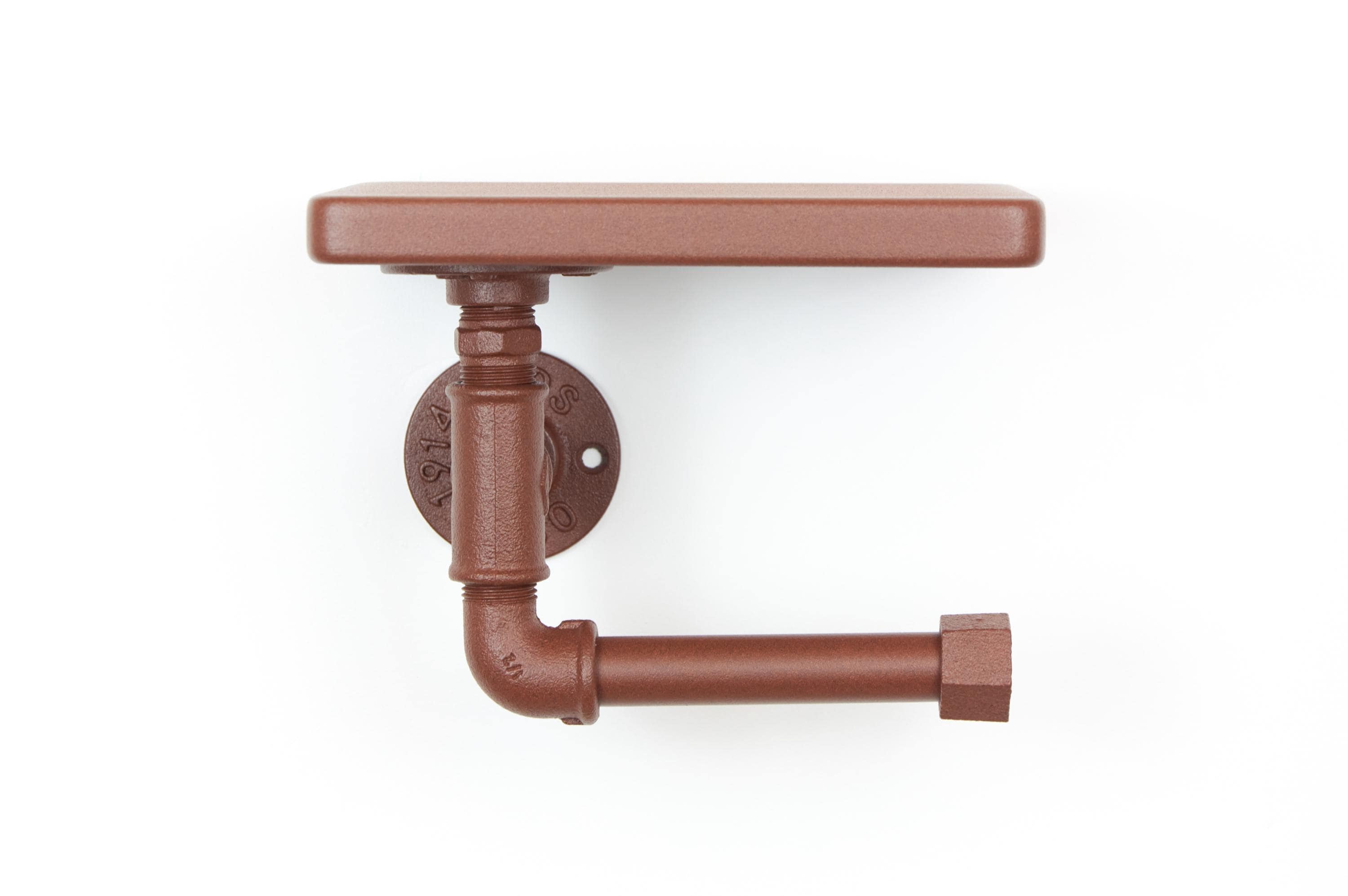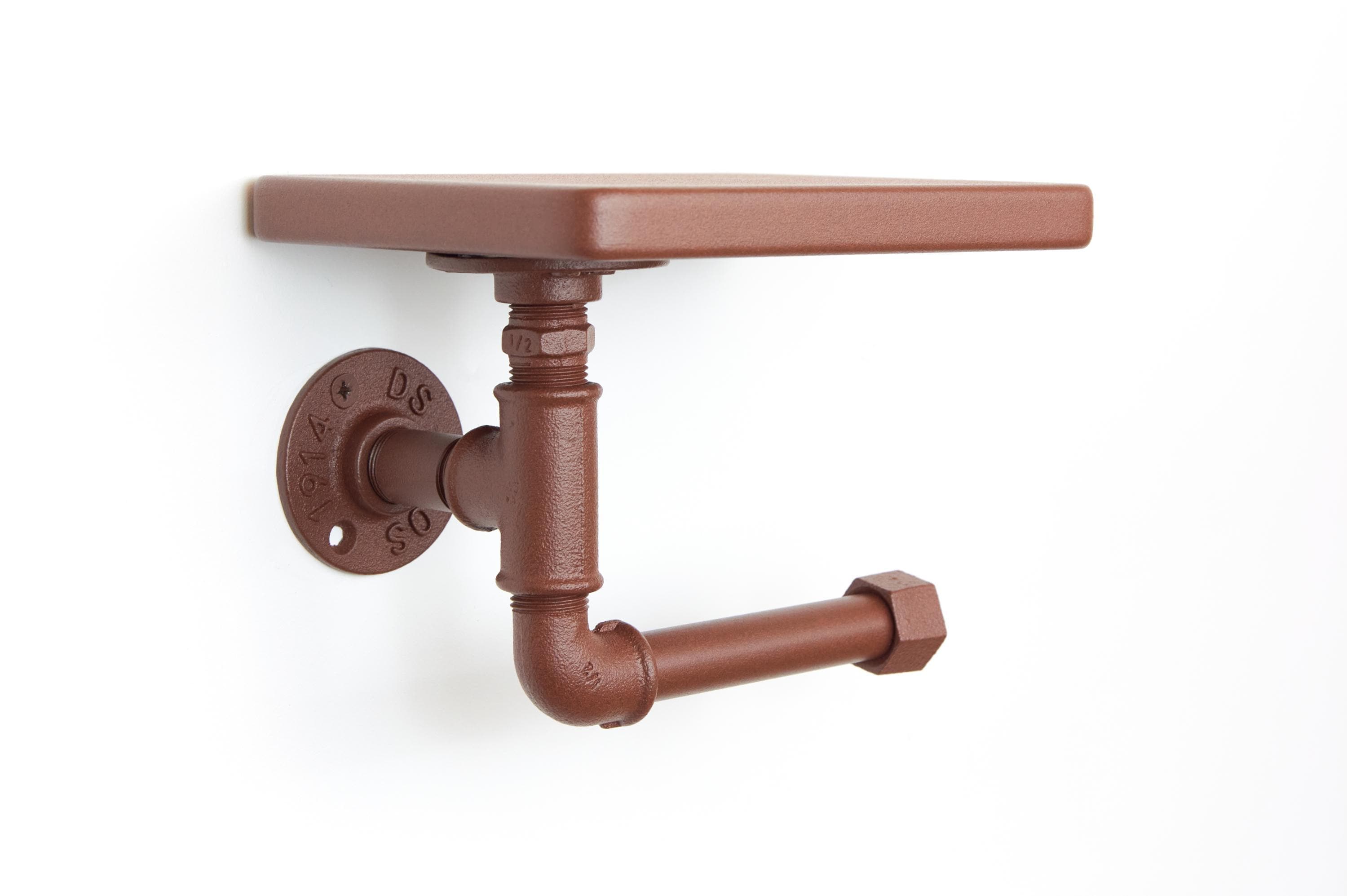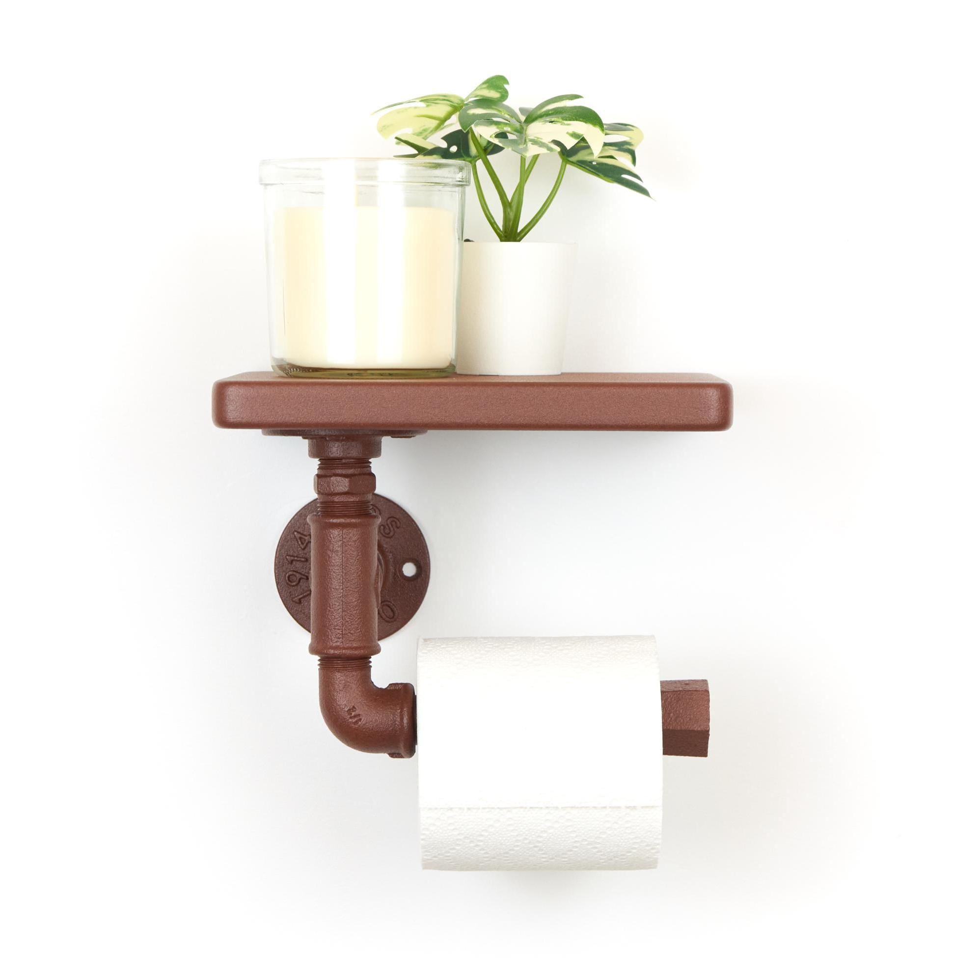 Rustic Toilet Paper Roll Holder with Shelf, Charming Farmhouse Decor, Color Pictured Rust Effect