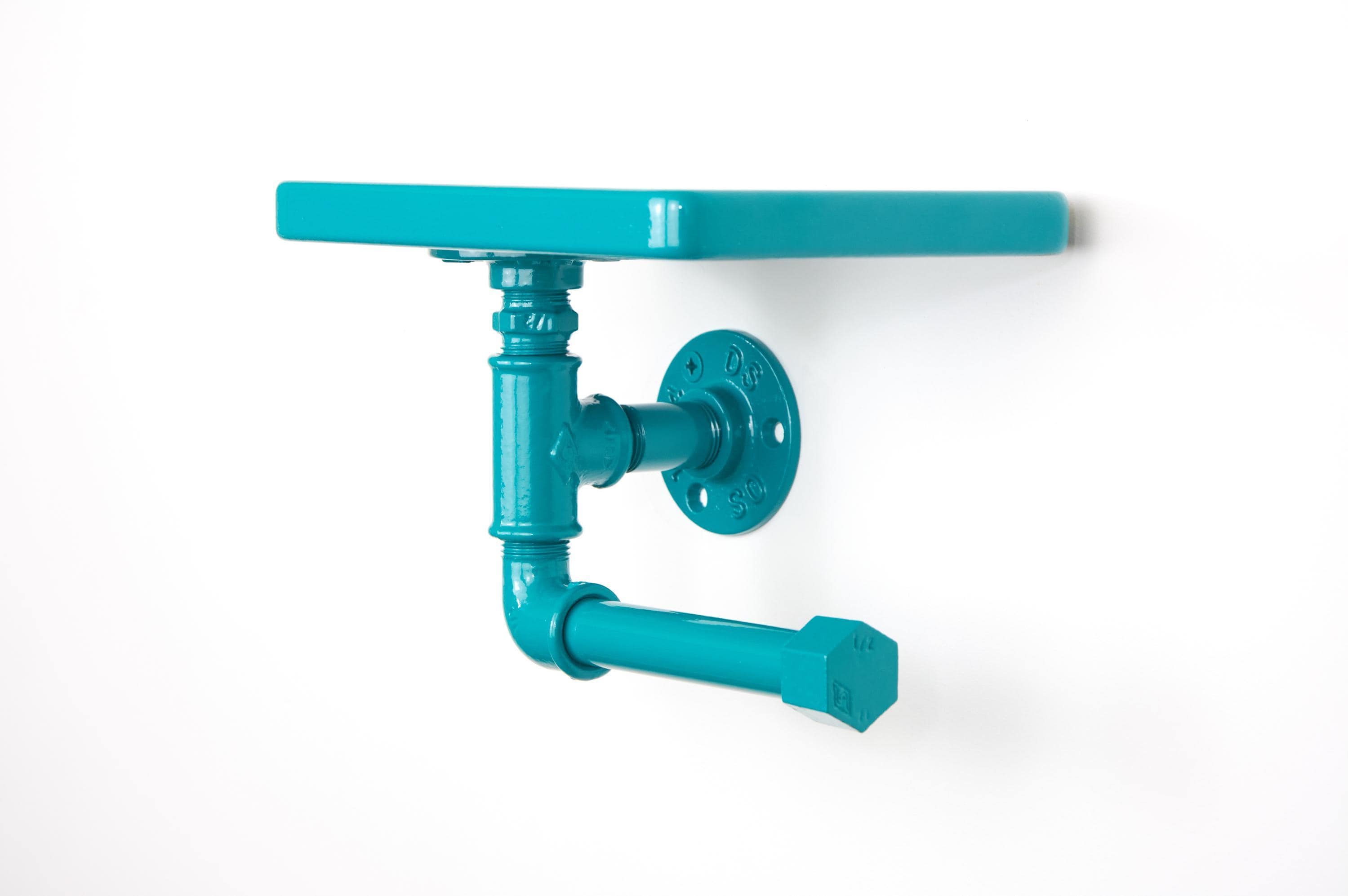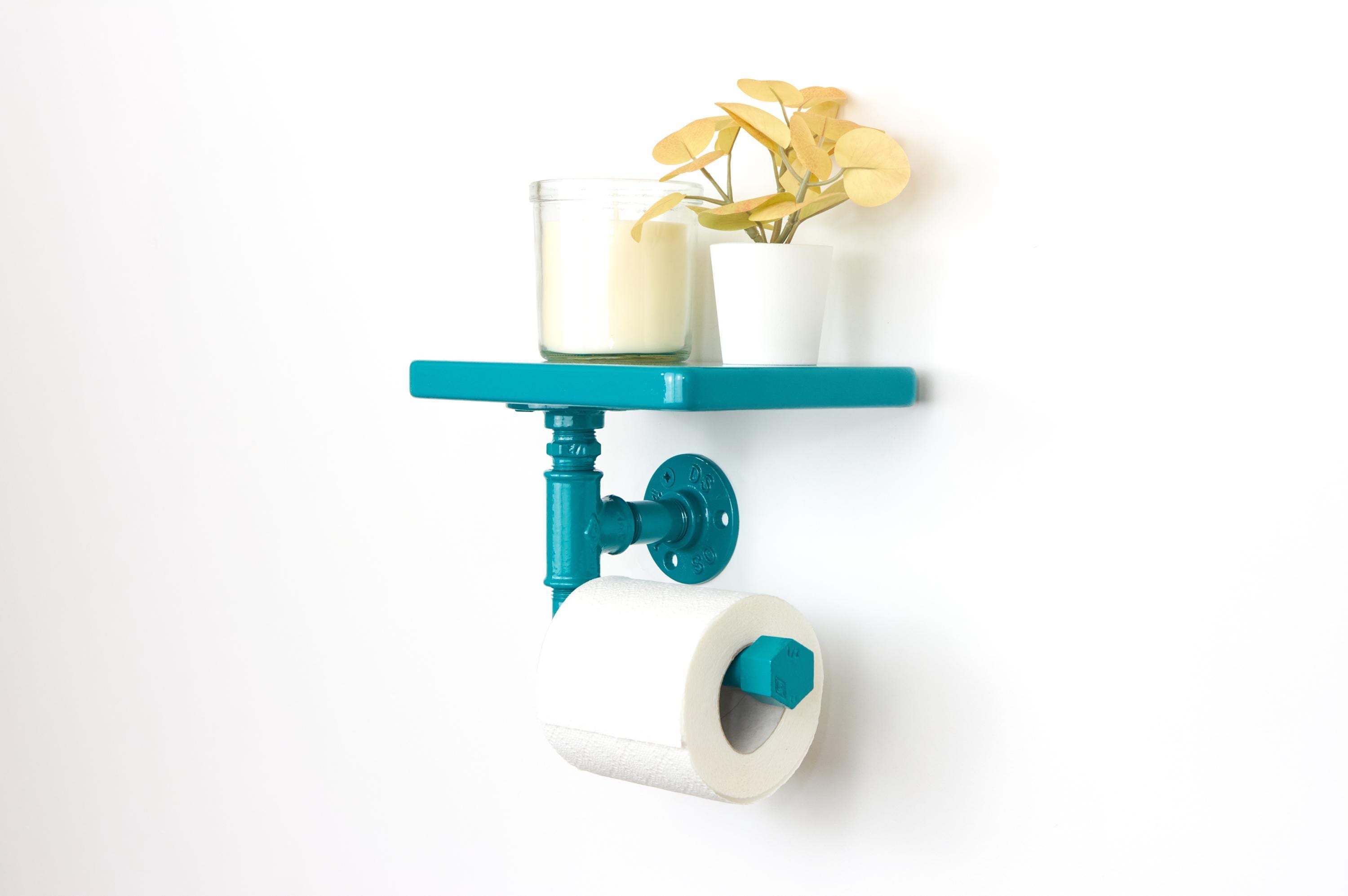 Add a vibrant touch to your bathroom with this toilet paper roll holder with a shelf. Its bright, colorful design is perfect for stylish organization! The color of the product in the pictures is Turquoise.