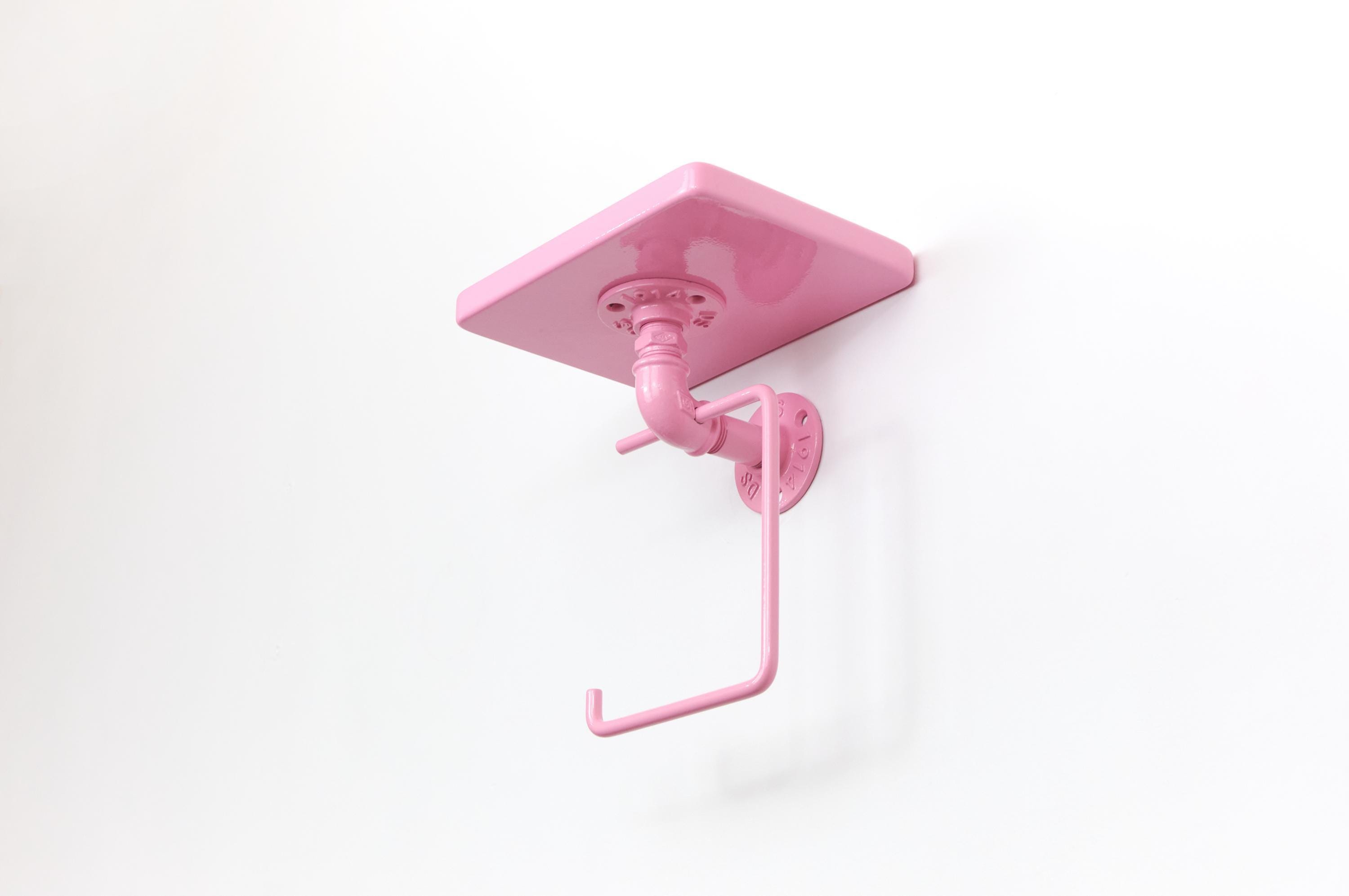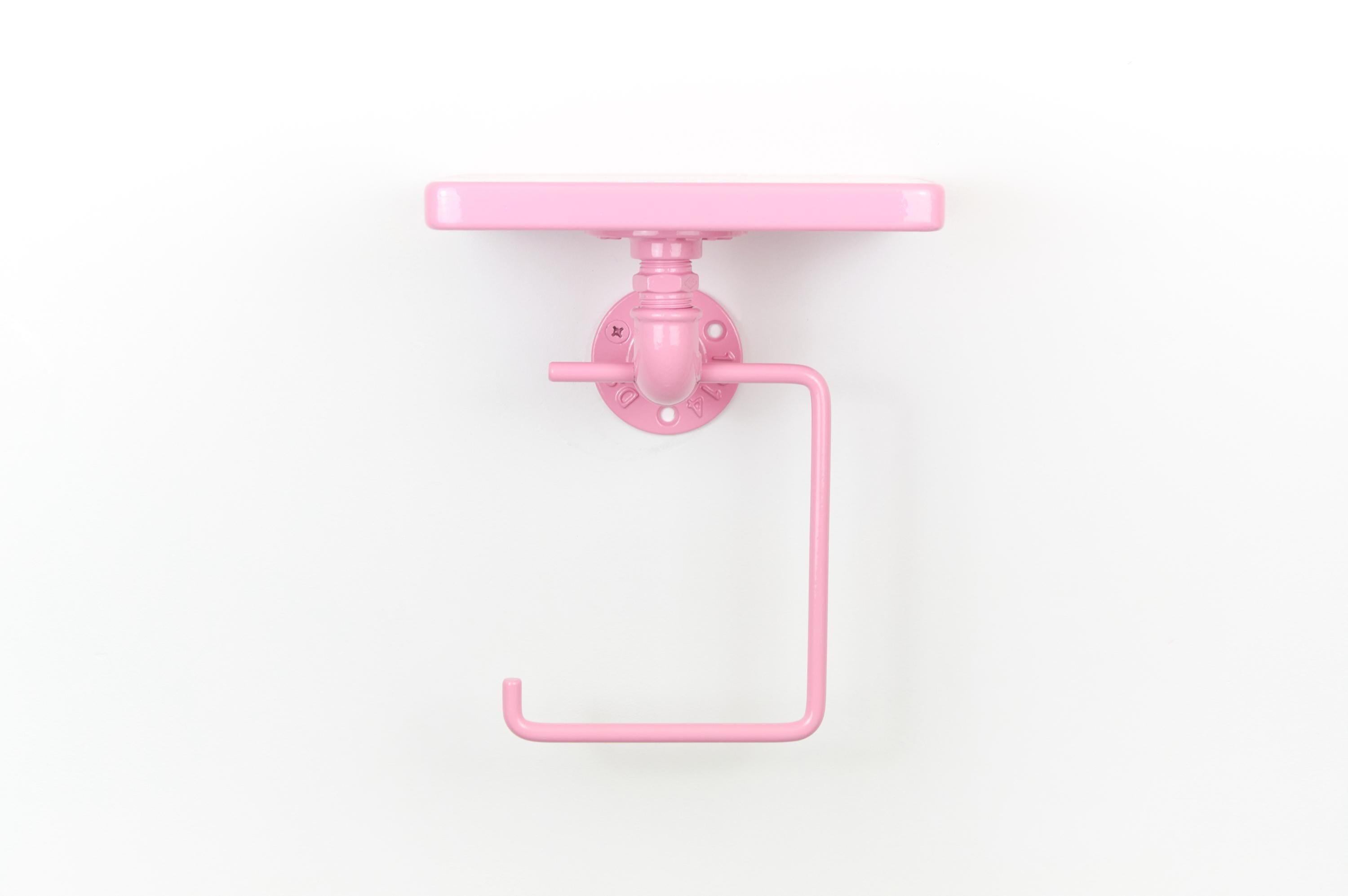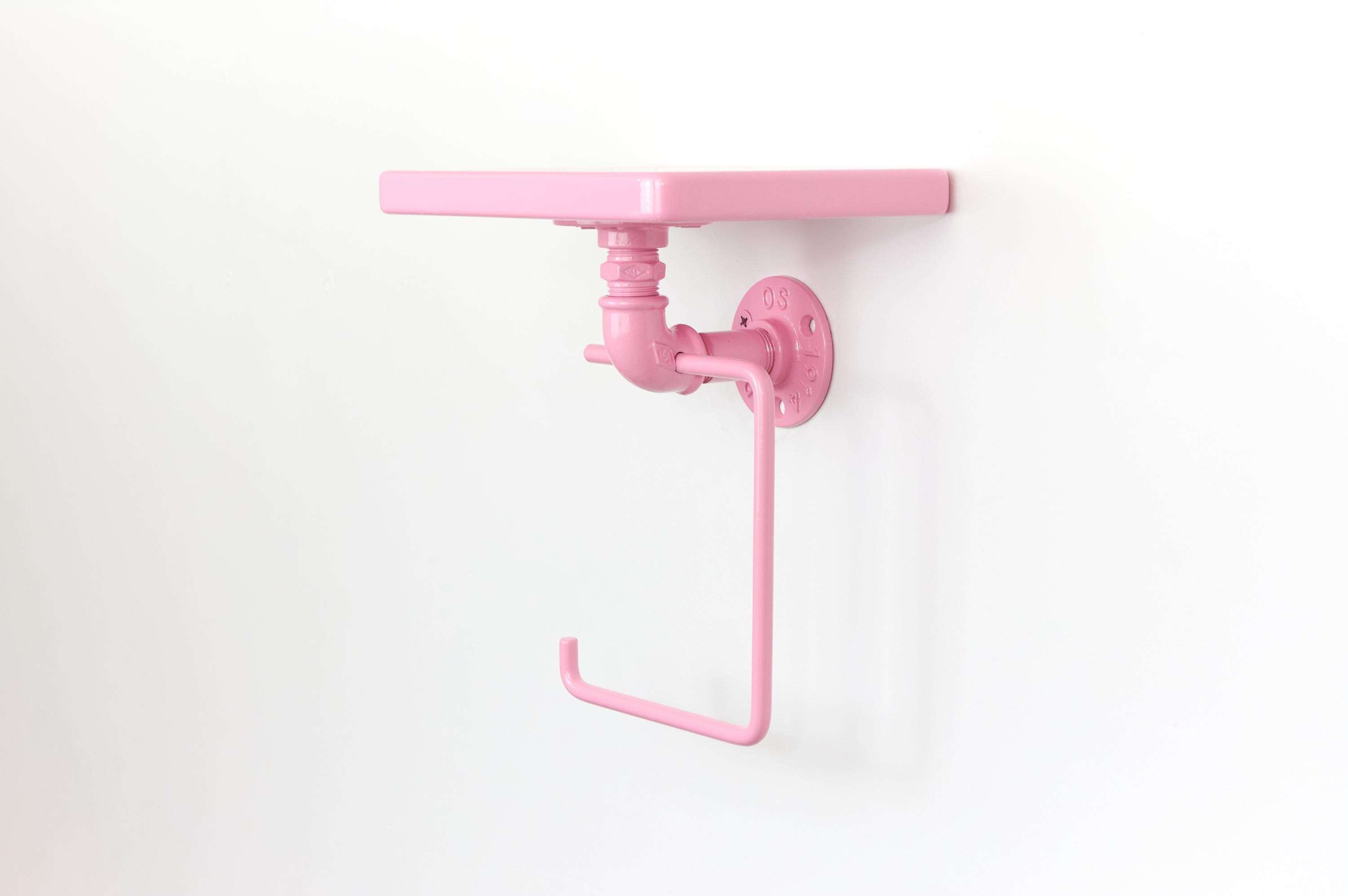 Keep your bathroom organized with this modern toilet paper roll holder with a shelf! The color of the product in the pictures is Pastel Pink.