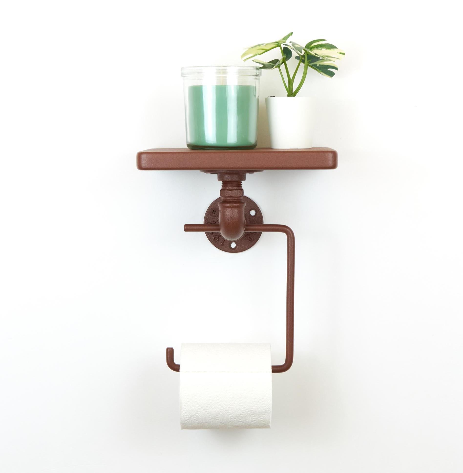 Toilet Paper Roll Holder with Shelf, Rustic Design for Stylish Bathroom Storage, Color Pictured - Rust Effect