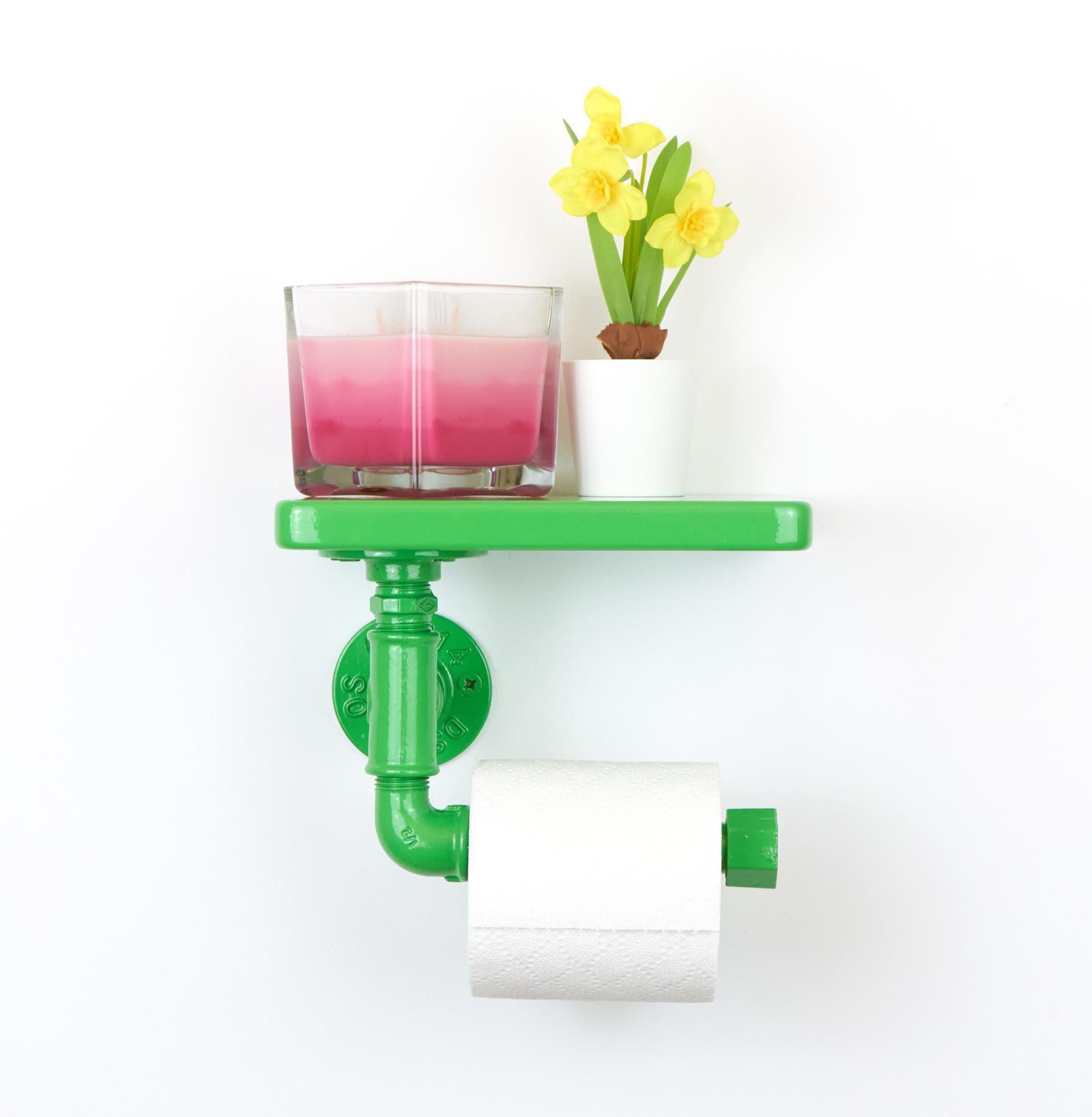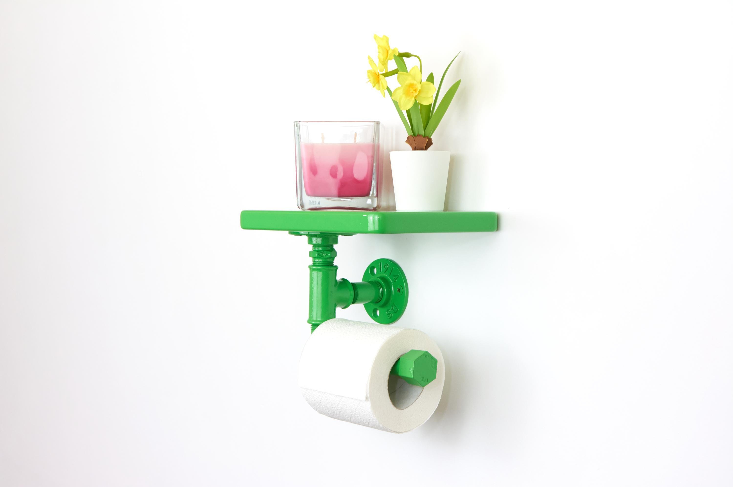 Add a touch of color to your bathroom with this toilet paper roll holder with a shelf. A stylish organizer and perfect home decor gift! The color of the product in the pictures is Green Gloss.