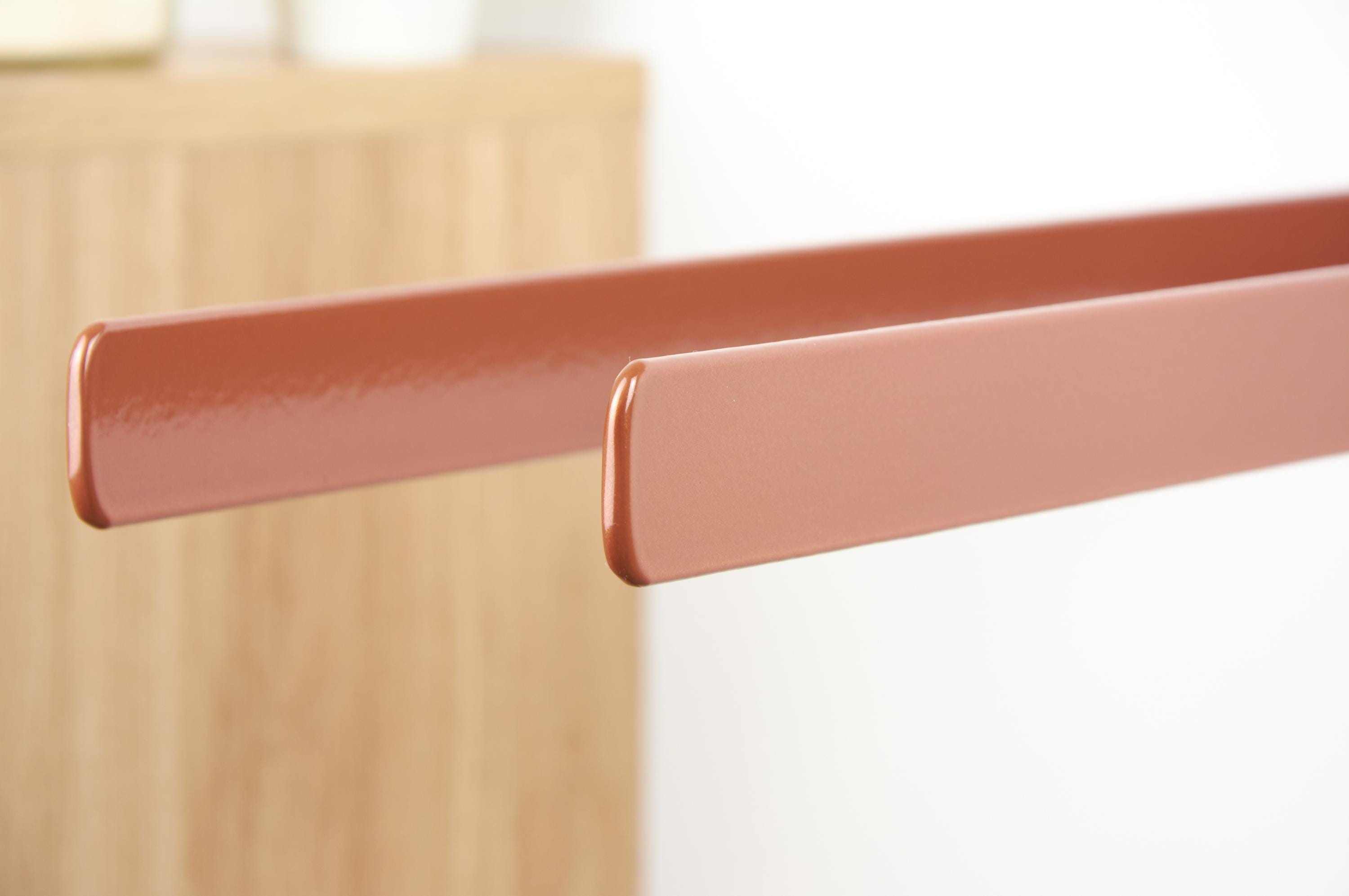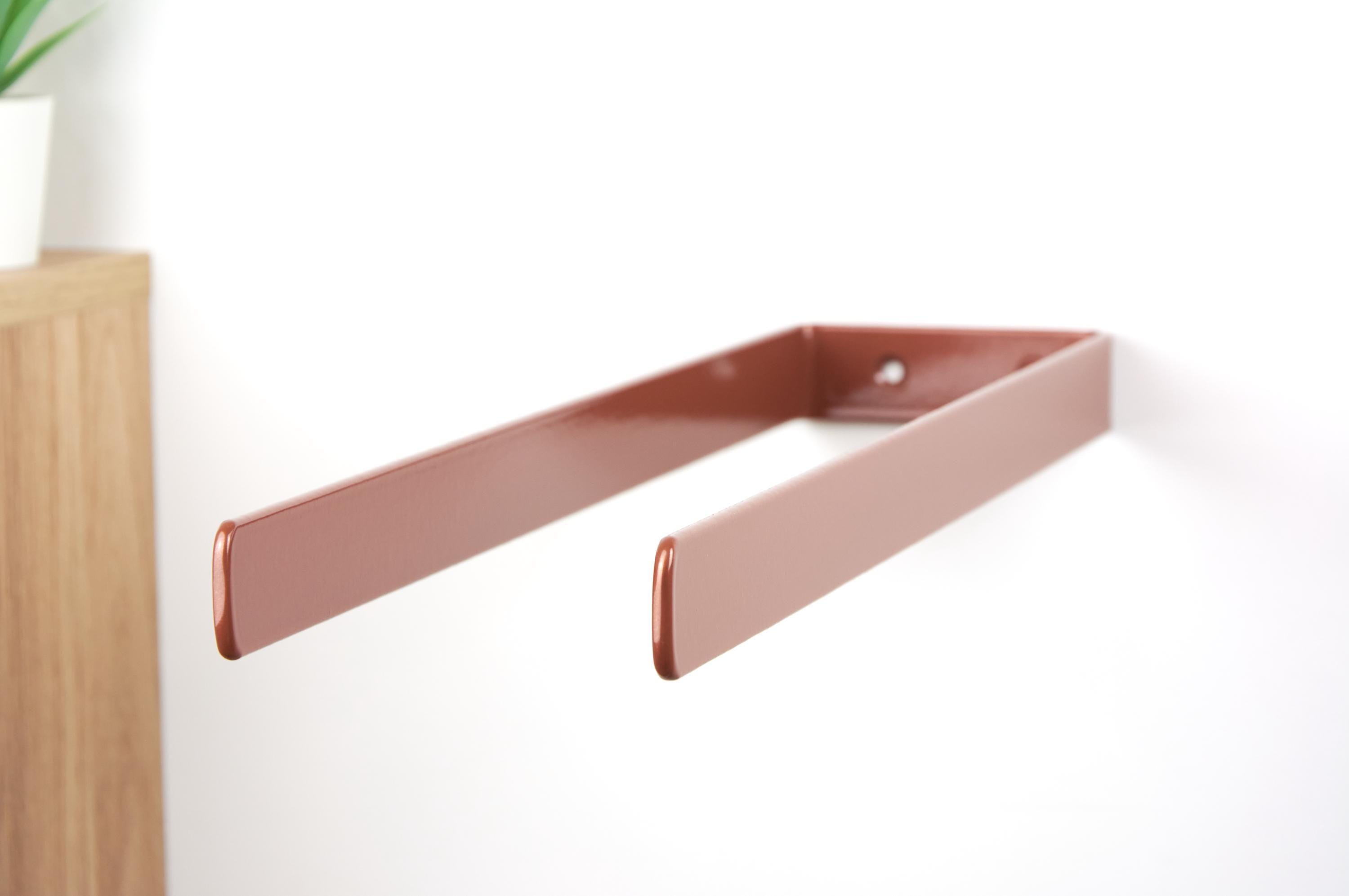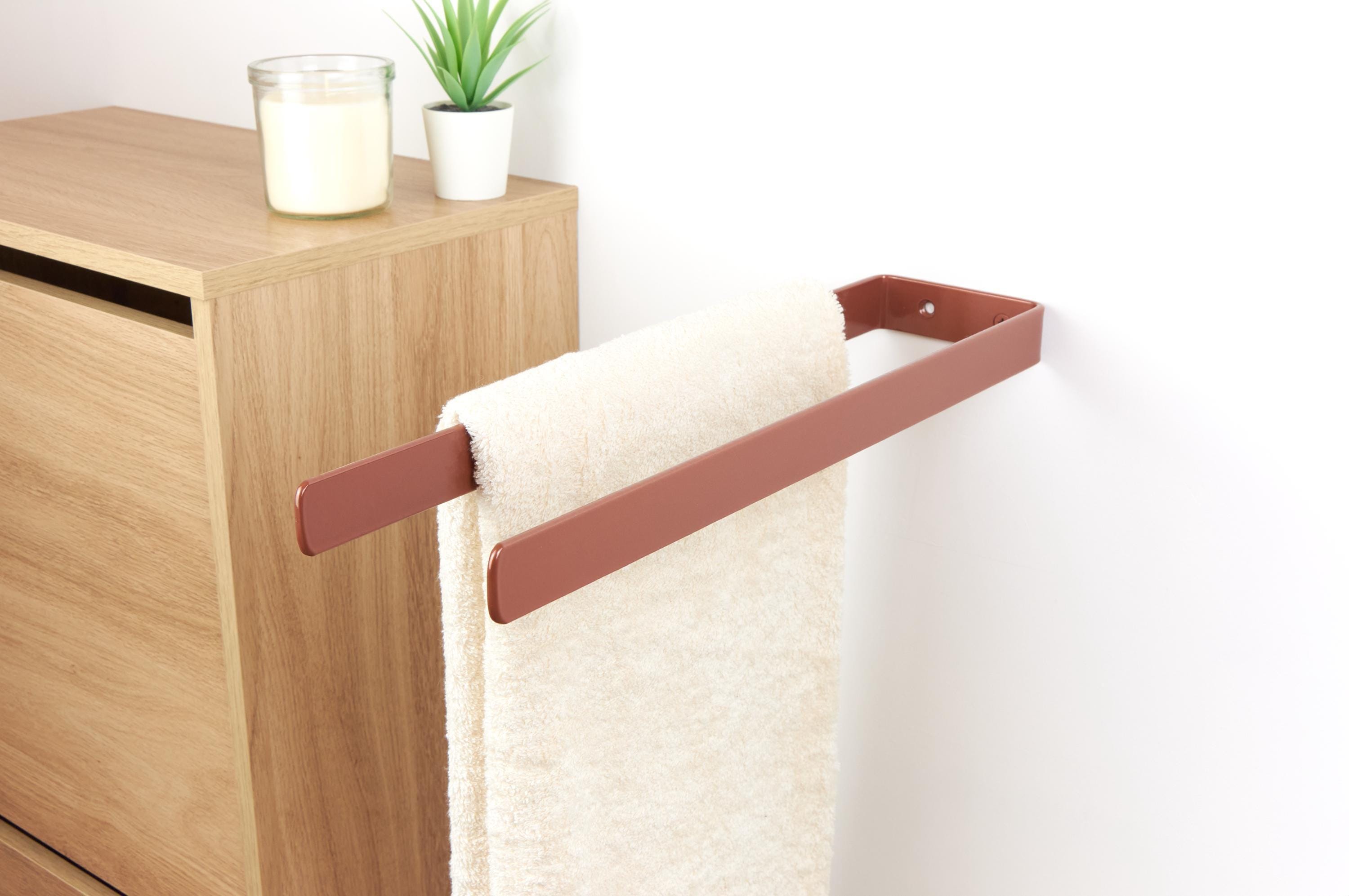 Add style and function to your space with this double towel holder! A sleek wall mounted towel rack, it’s the perfect modern metal towel bar and a practical touch of functional bathroom decor. The color of the product in the pictures is Copper.