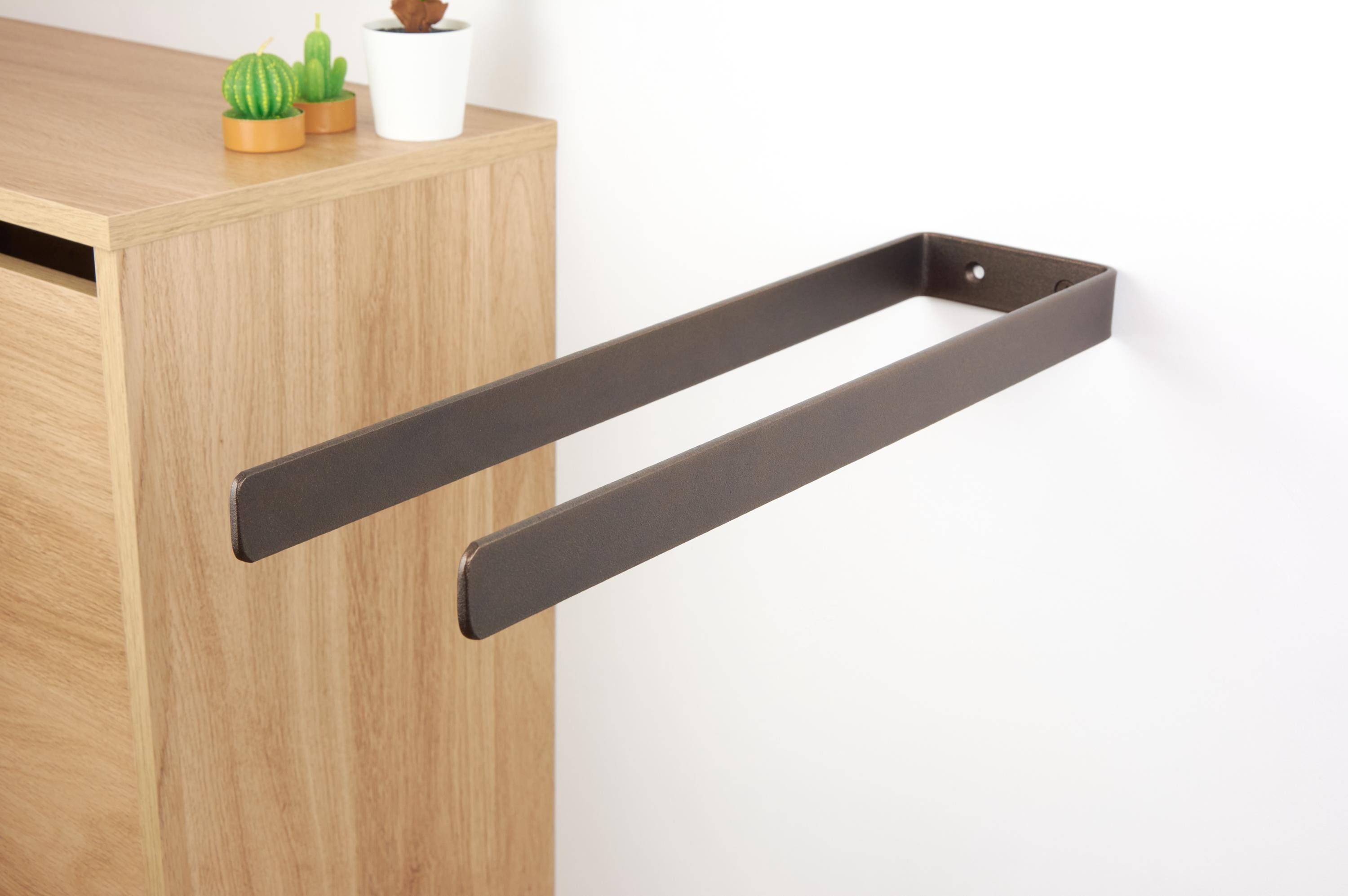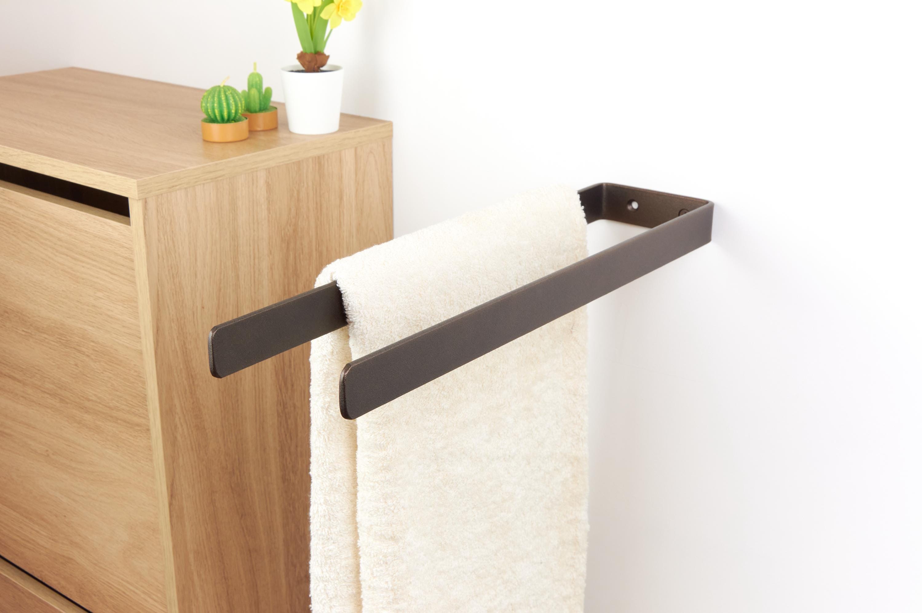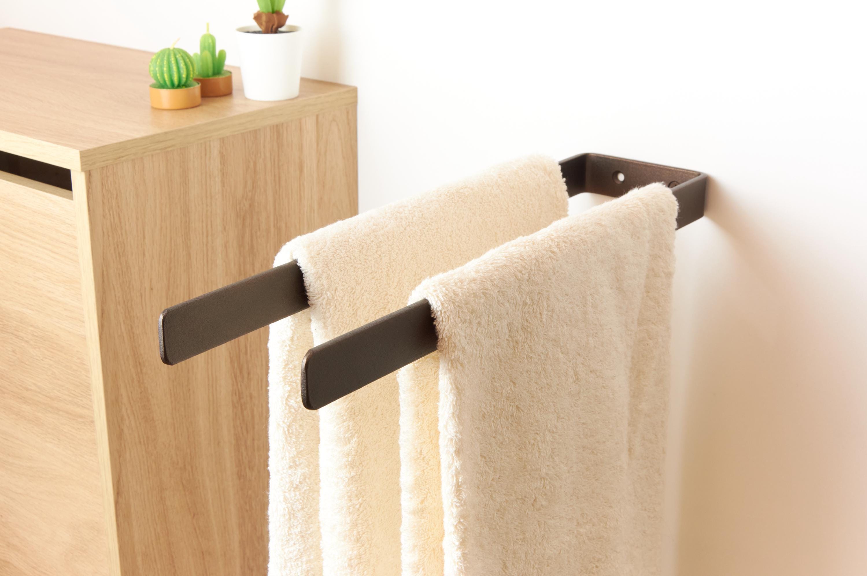 Maximize your space with this double towel bar - a space saving bathroom towel rack designed for both function and style! The color of the product in the pictures is Sand Textured Bronze.