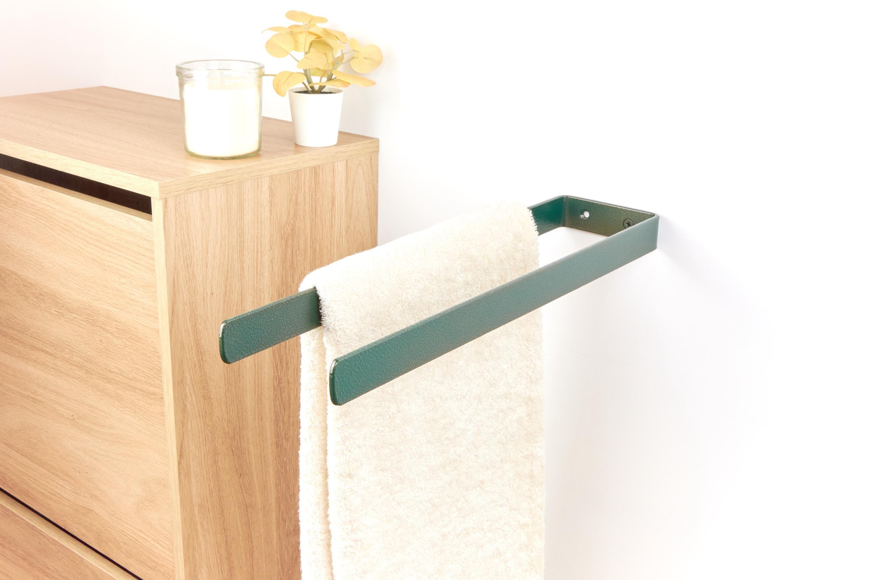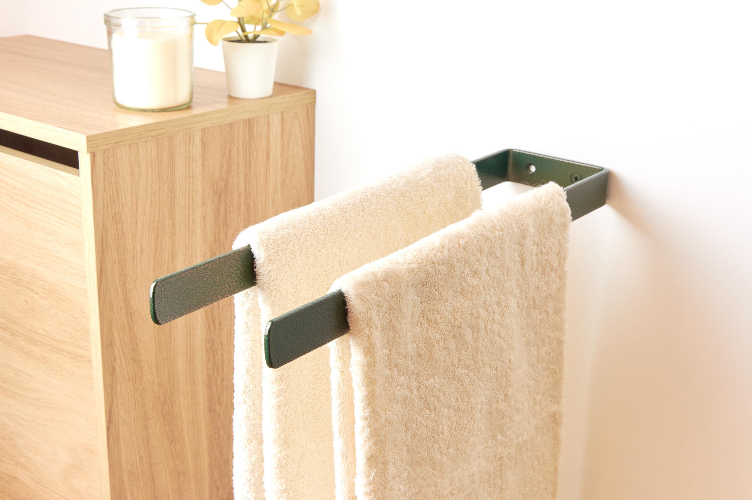 Keep your towels neatly arranged with this double towel rack for bathroom - a sleek wall mounted towel bar that serves as a modern metal towel holder! The color of the product in the pictures is Antique Green Copper.