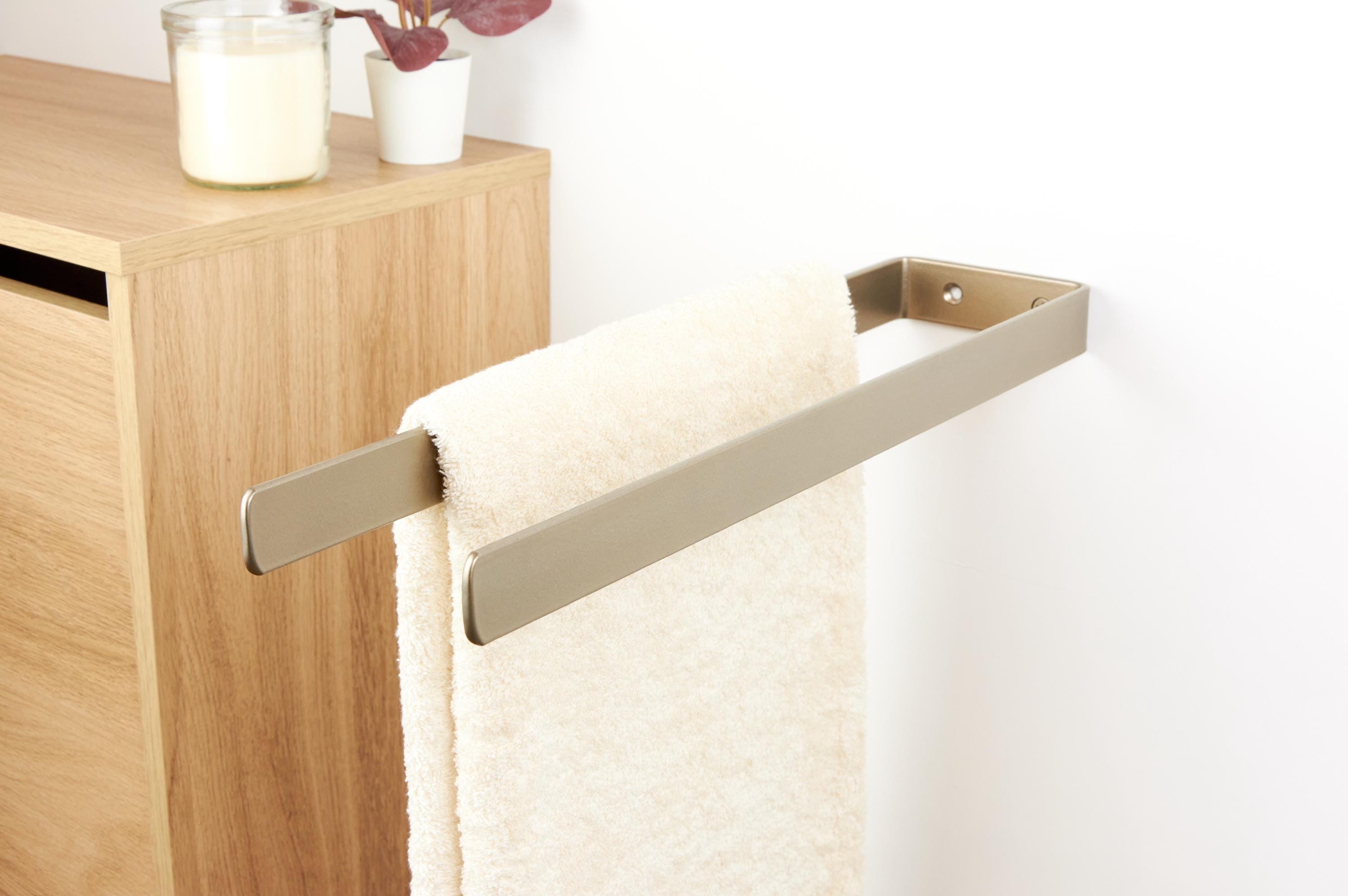 Double Towel Rack - Modern Bathroom Towel Bar, Space-Saving Metal Towel Holder, Stylish Bathroom Hardware, Color Pictured - Platinum
