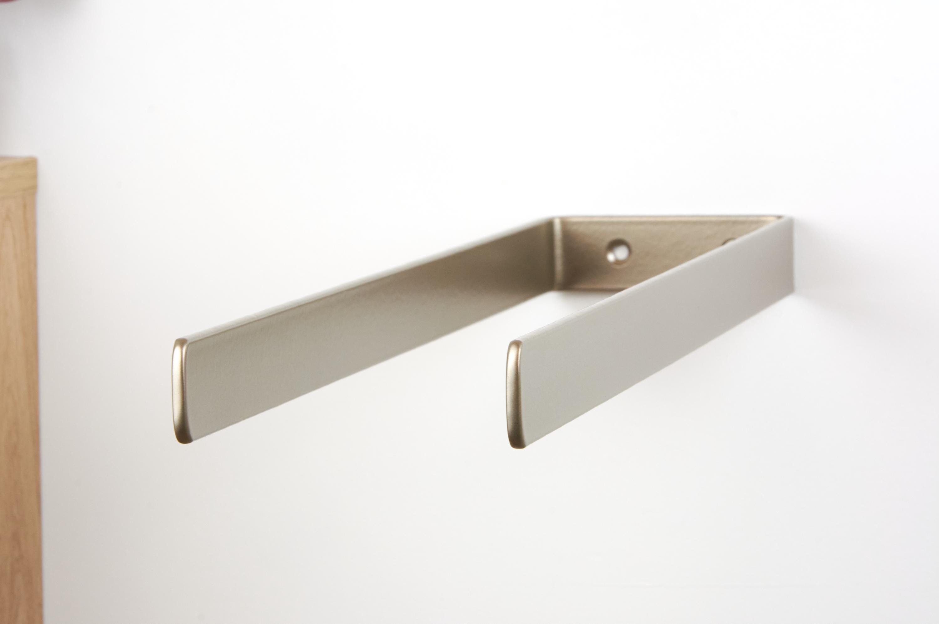 This wall mounted double towel rack is a modern bathroom towel bar and is perfect for you stylish bathroom hardware needs! The color of the product in the pictures is Platinum.