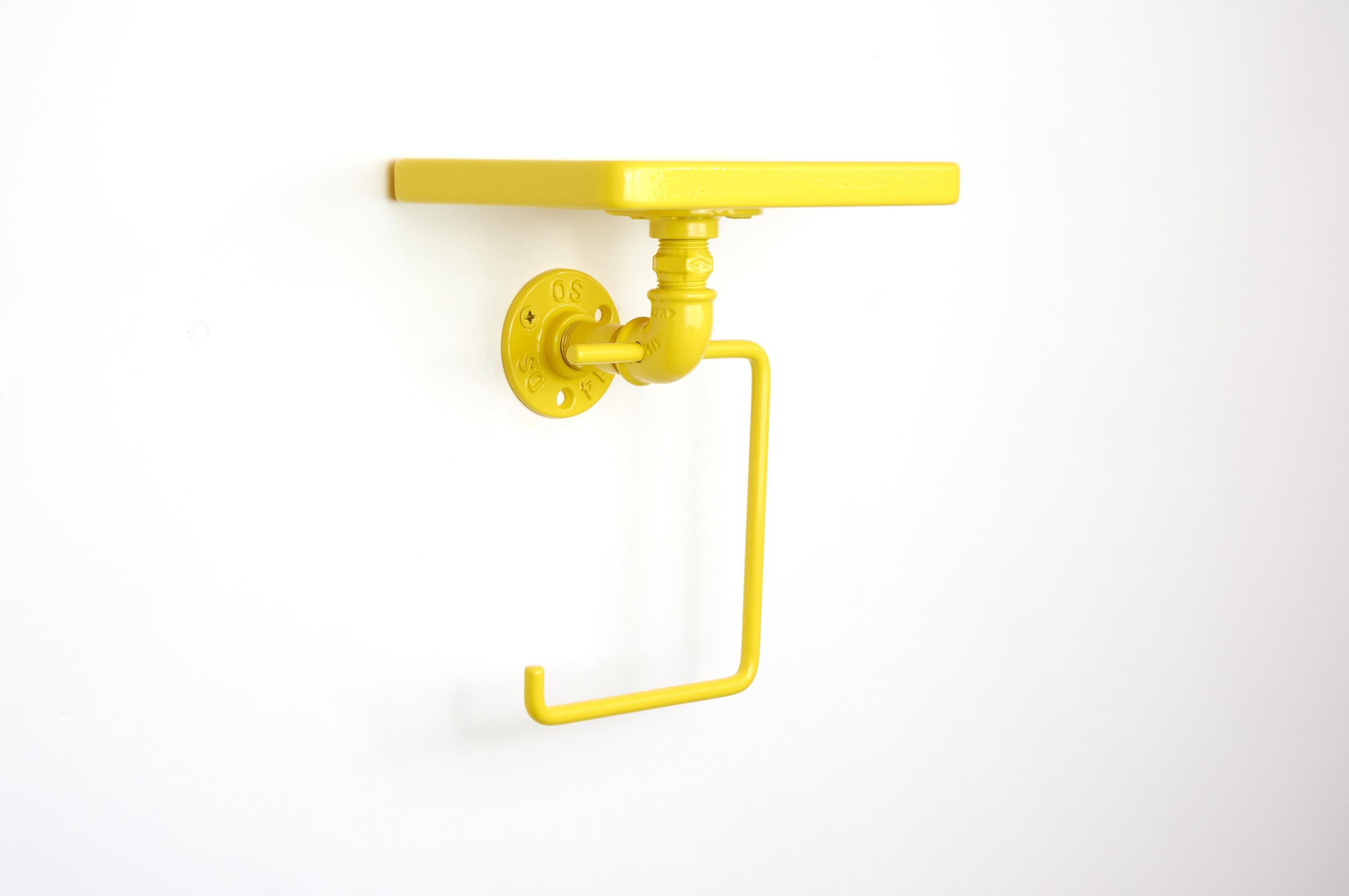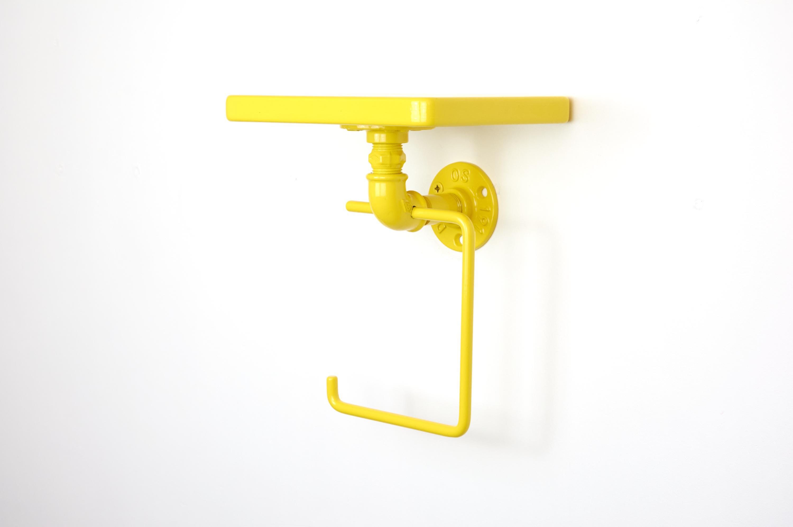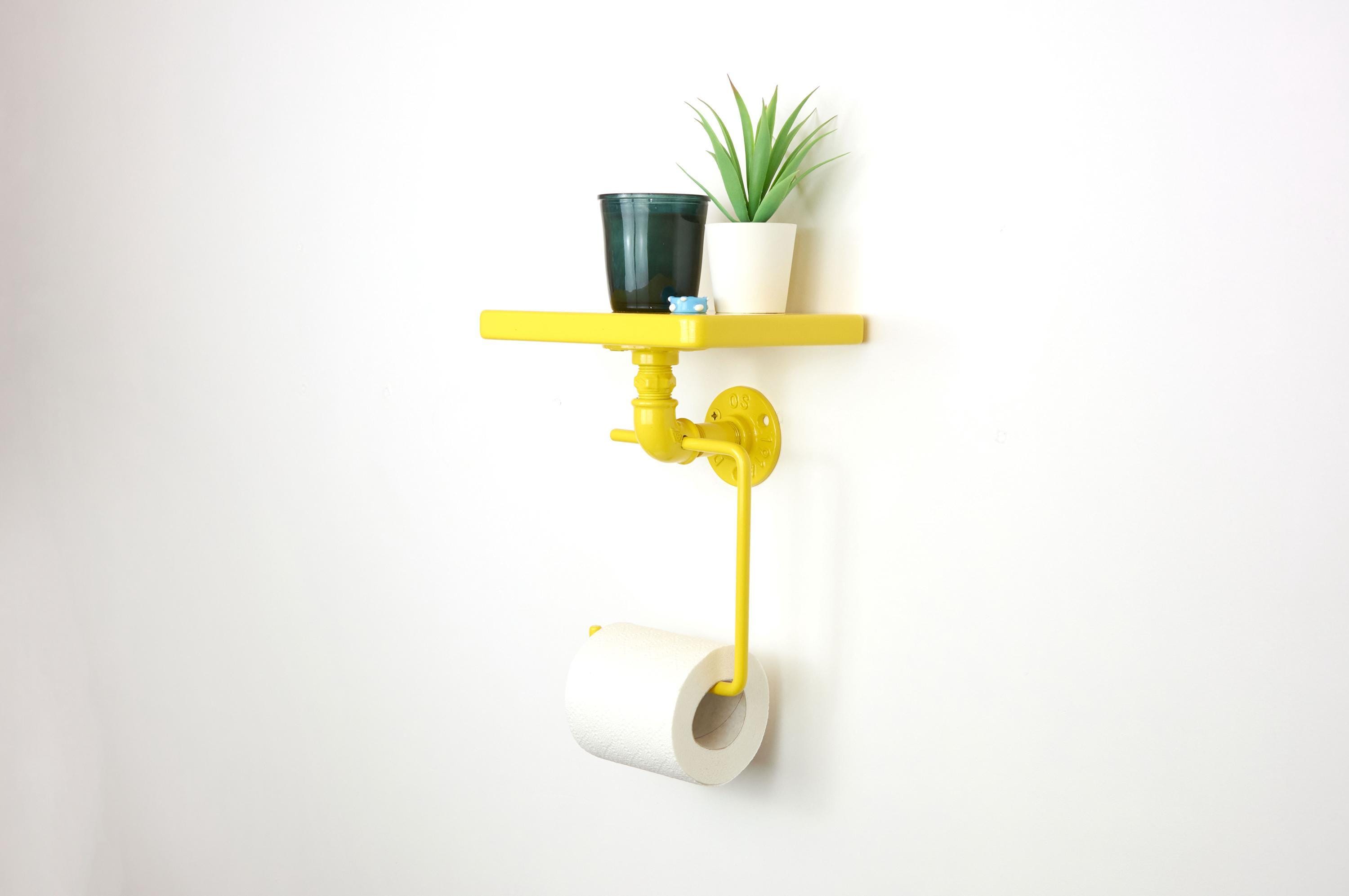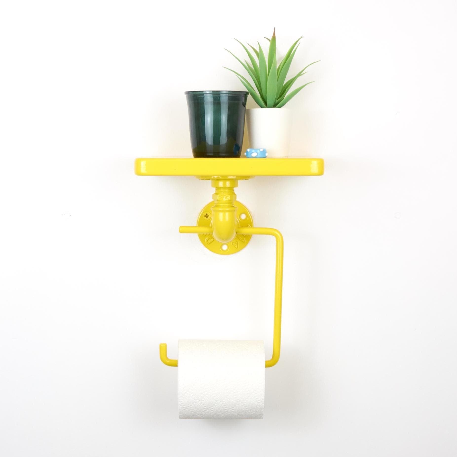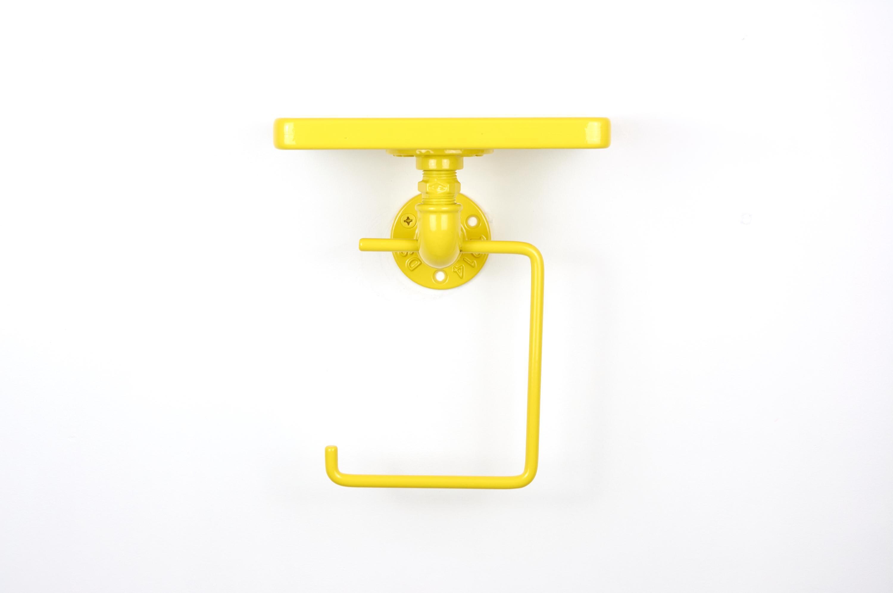 Add a pop of color and personality to your space with this colorful toilet paper holder with shelf! The color of the product in the pictures is Yellow Gloss.