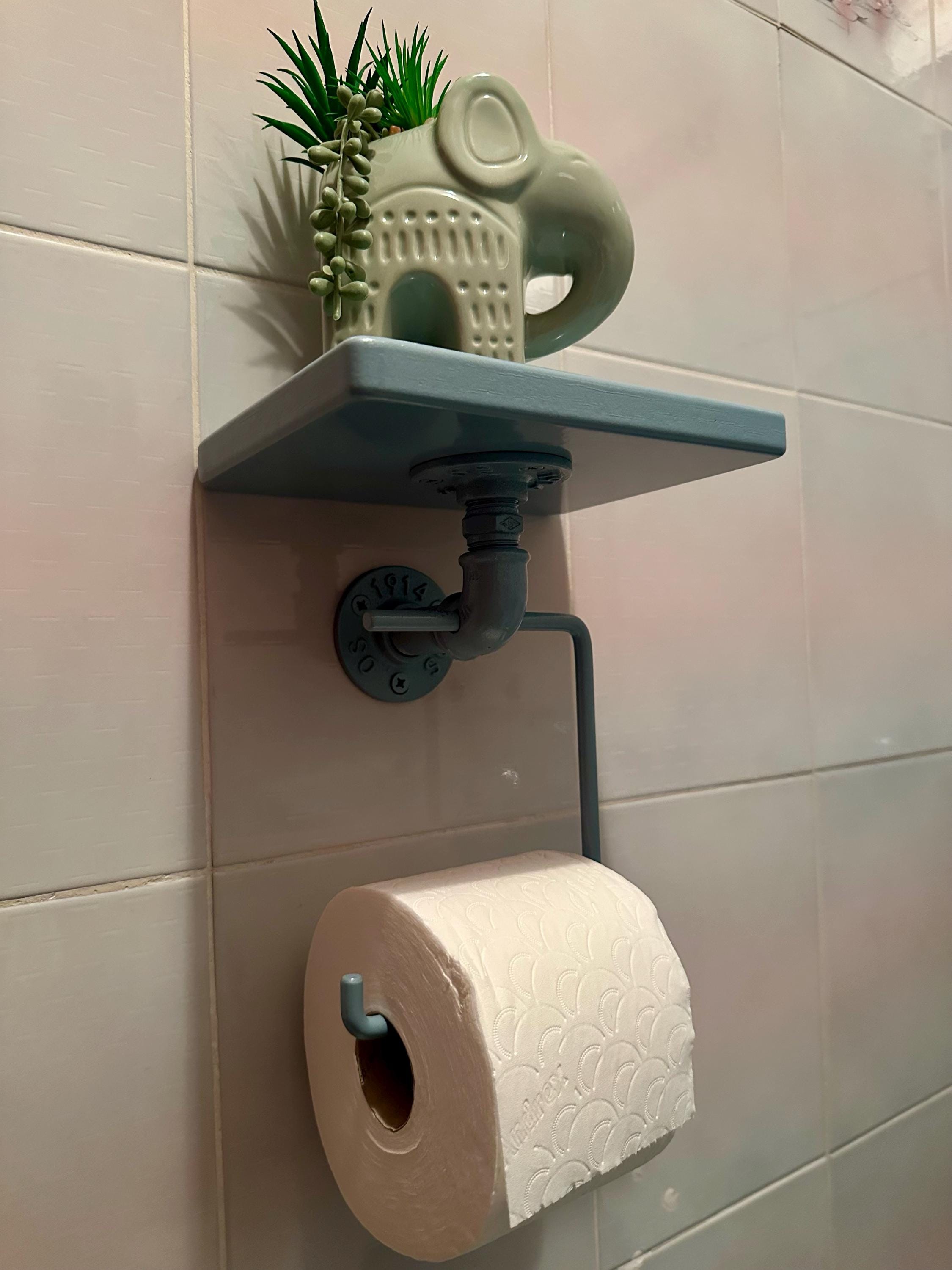 This toilet paper holder with shelf adds charm to your space with its pastel bathroom decor look while serving as a space-saving, functional bathroom organizer! The color of the product in the pictures is Pearl Pastel Blue.