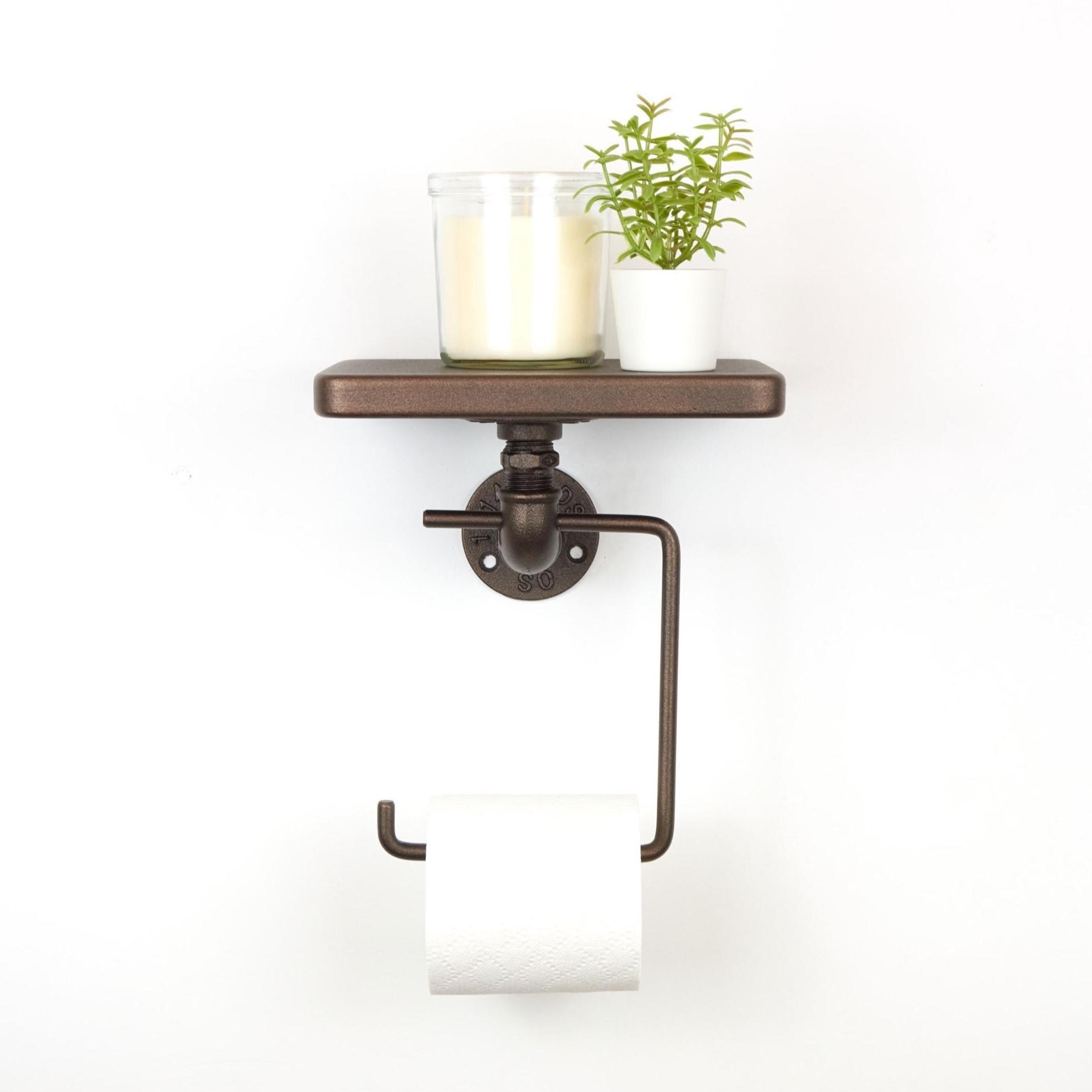 Toilet Paper Roll Holder with Shelf - Rustic Bathroom Storage Organizer, Practical Home Decor Gift, Color Pictured - Sand Textured Bronze