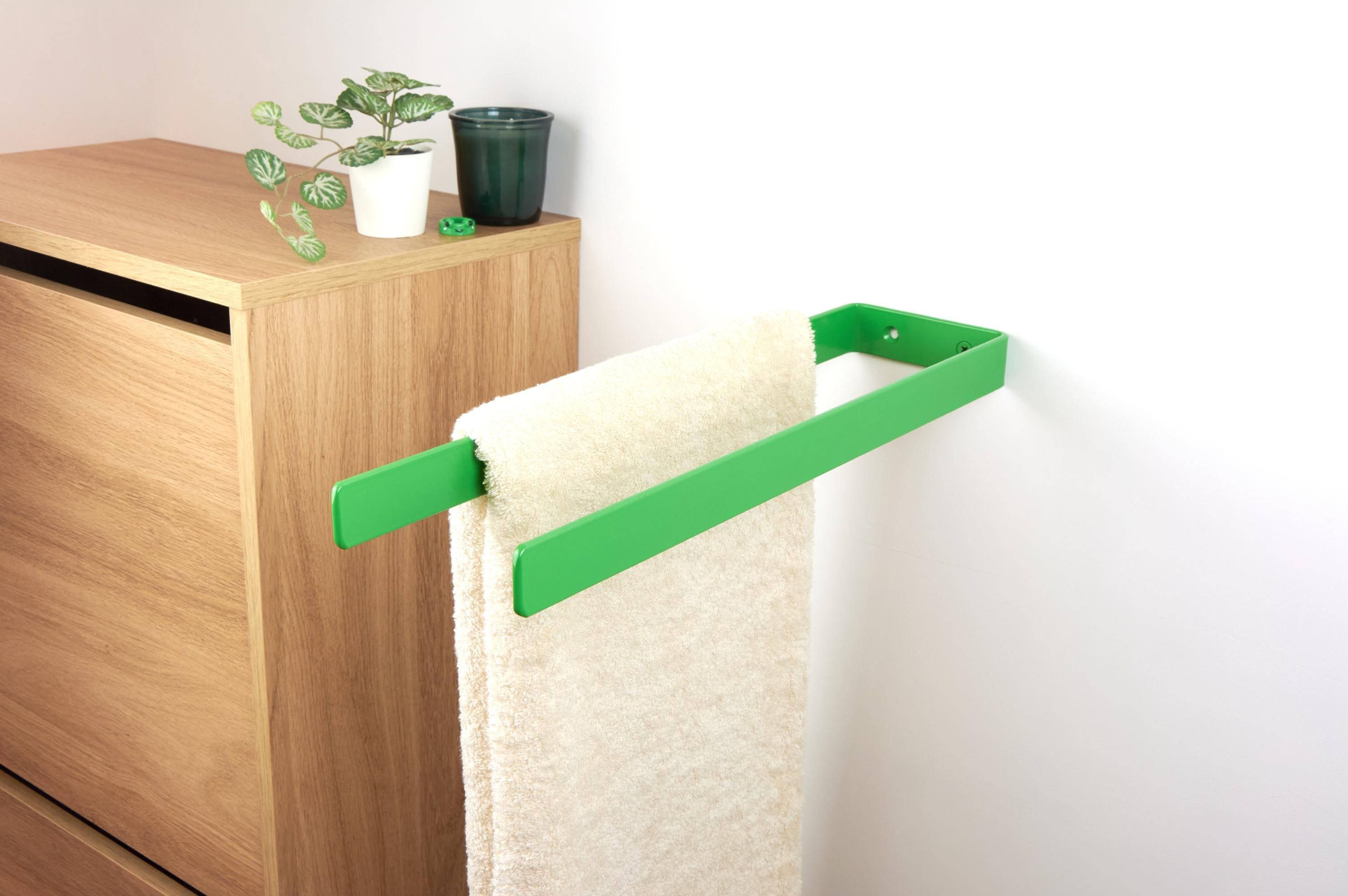 Keep your bathroom neat and organized with this durable double towel hanger! The color of the product in the pictures is Green Gloss.