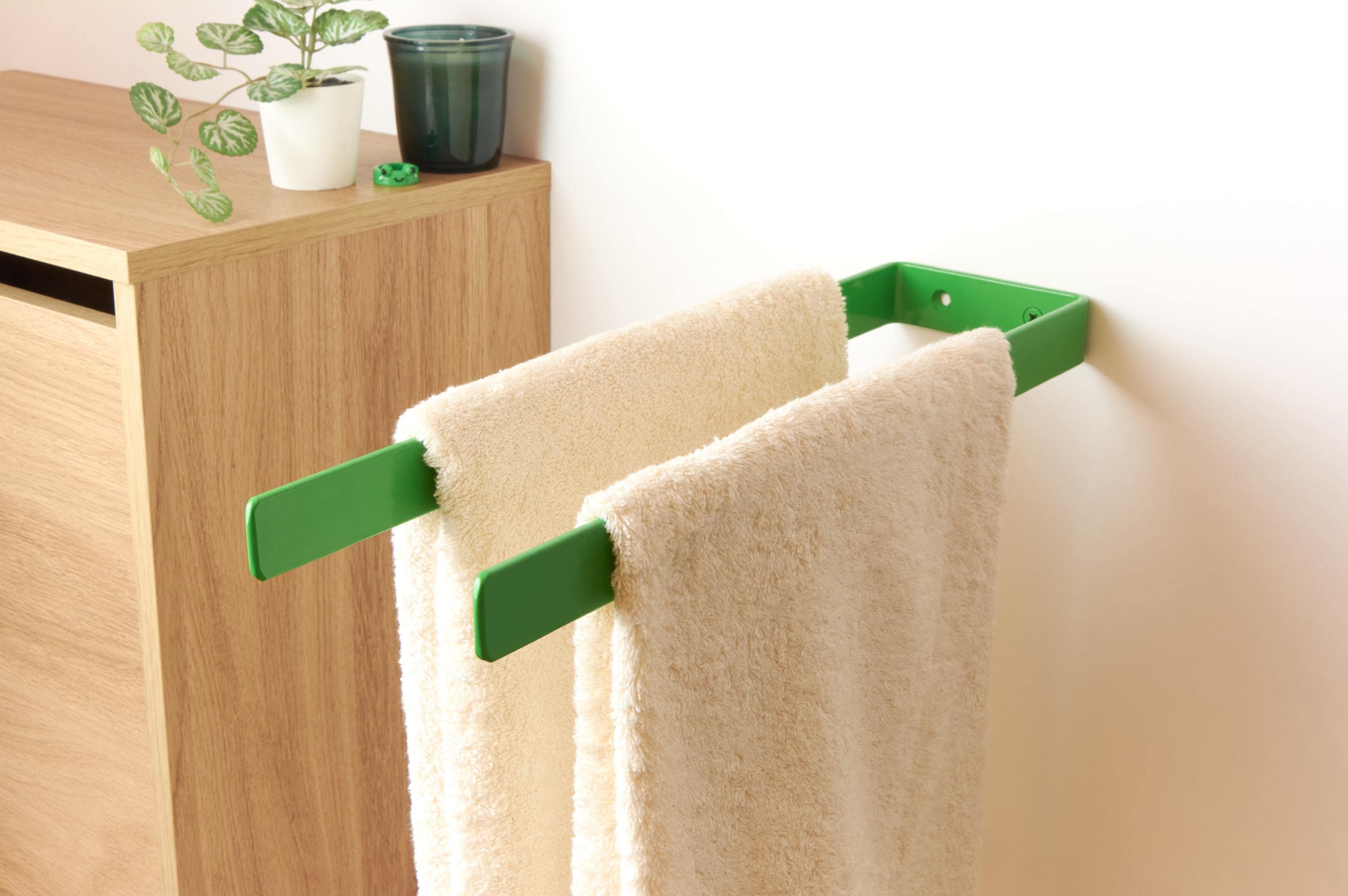 Double Towel Hanger - Durable Wall Mounted Bathroom Organizer, Practical Wall Towel Rack, Color Pictured - Green Gloss