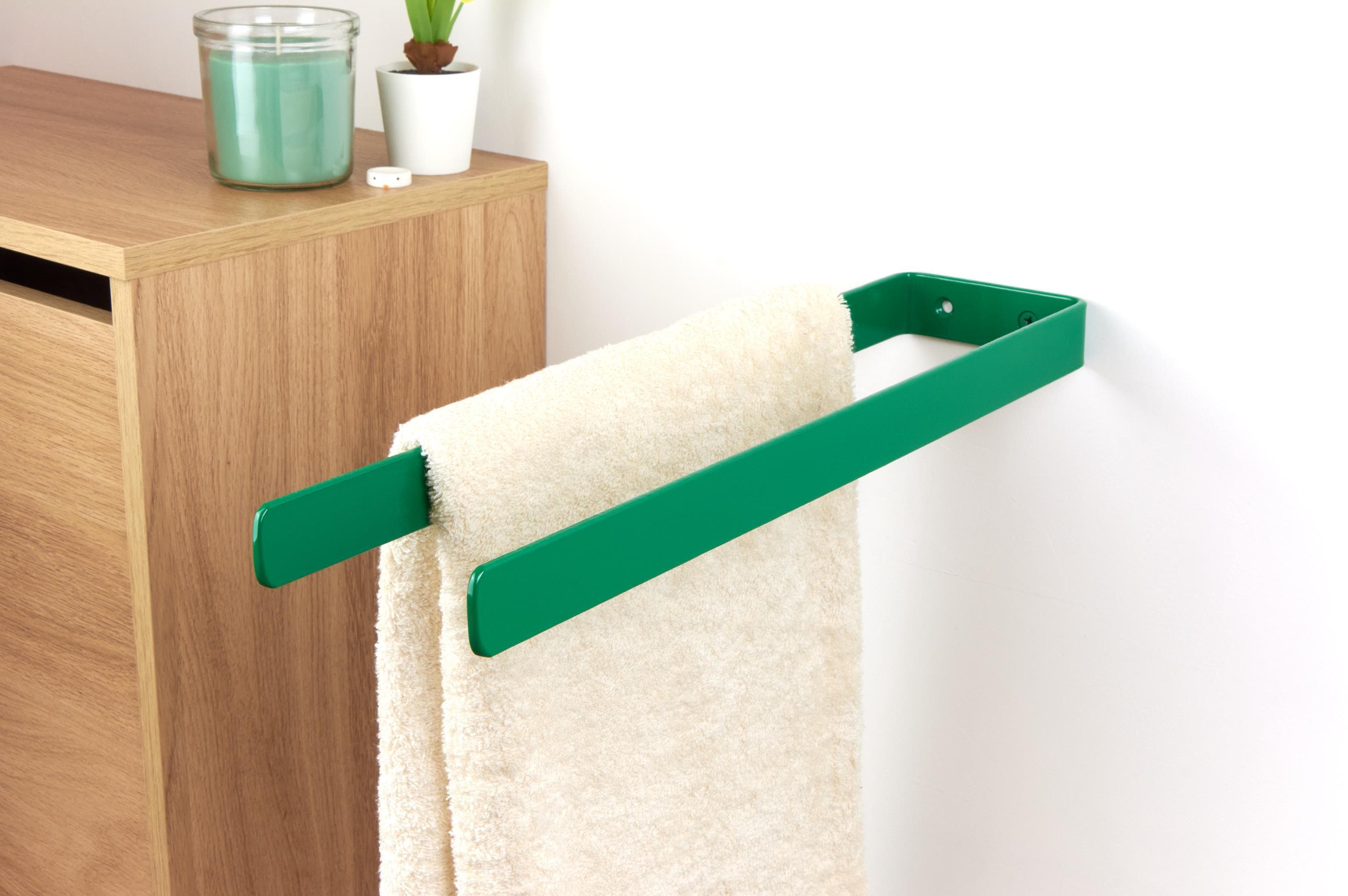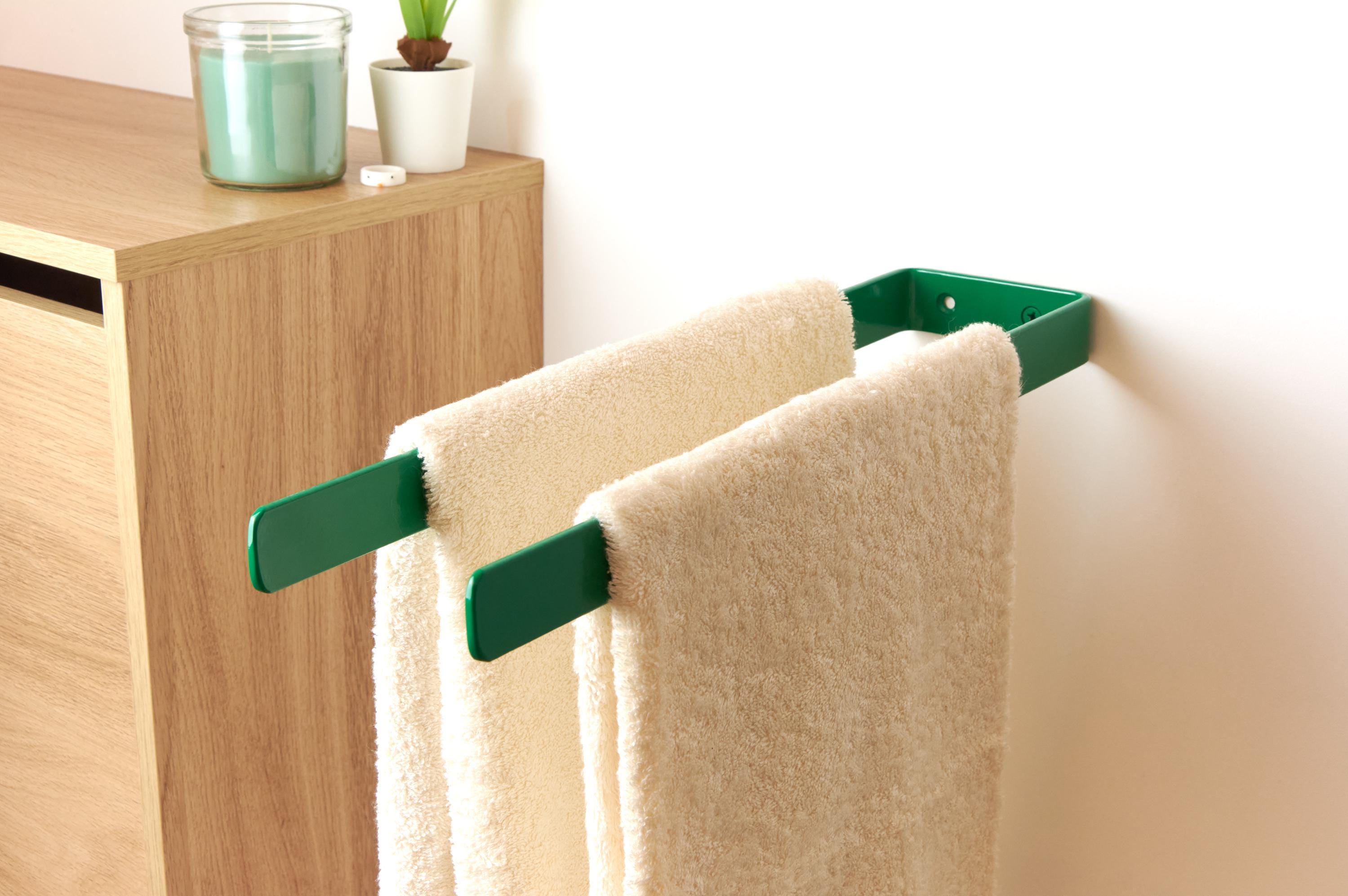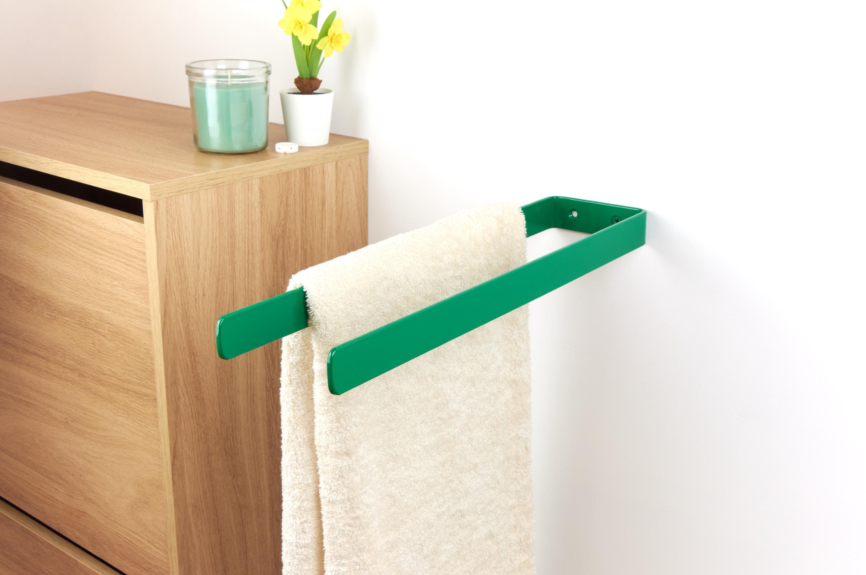 Enhance your bathroom with this sturdy double towel holder, a perfect accessory for easy towel organization and an ideal home decor gift! The color of the product in the pictures is Dark Green Gloss.