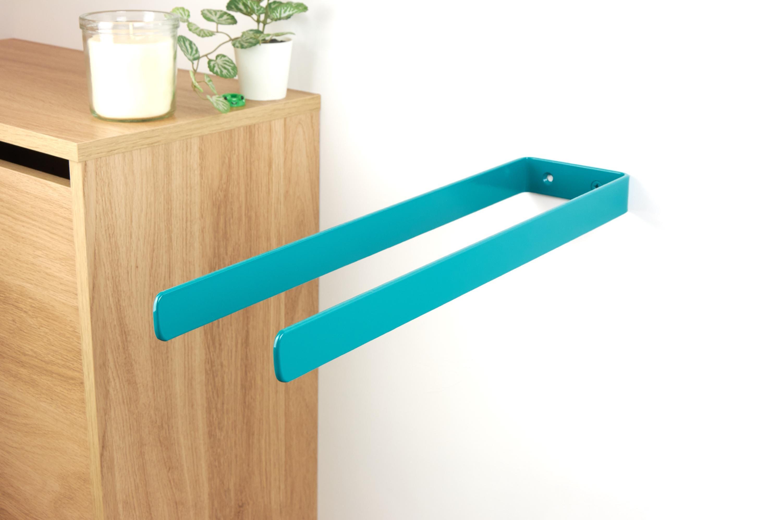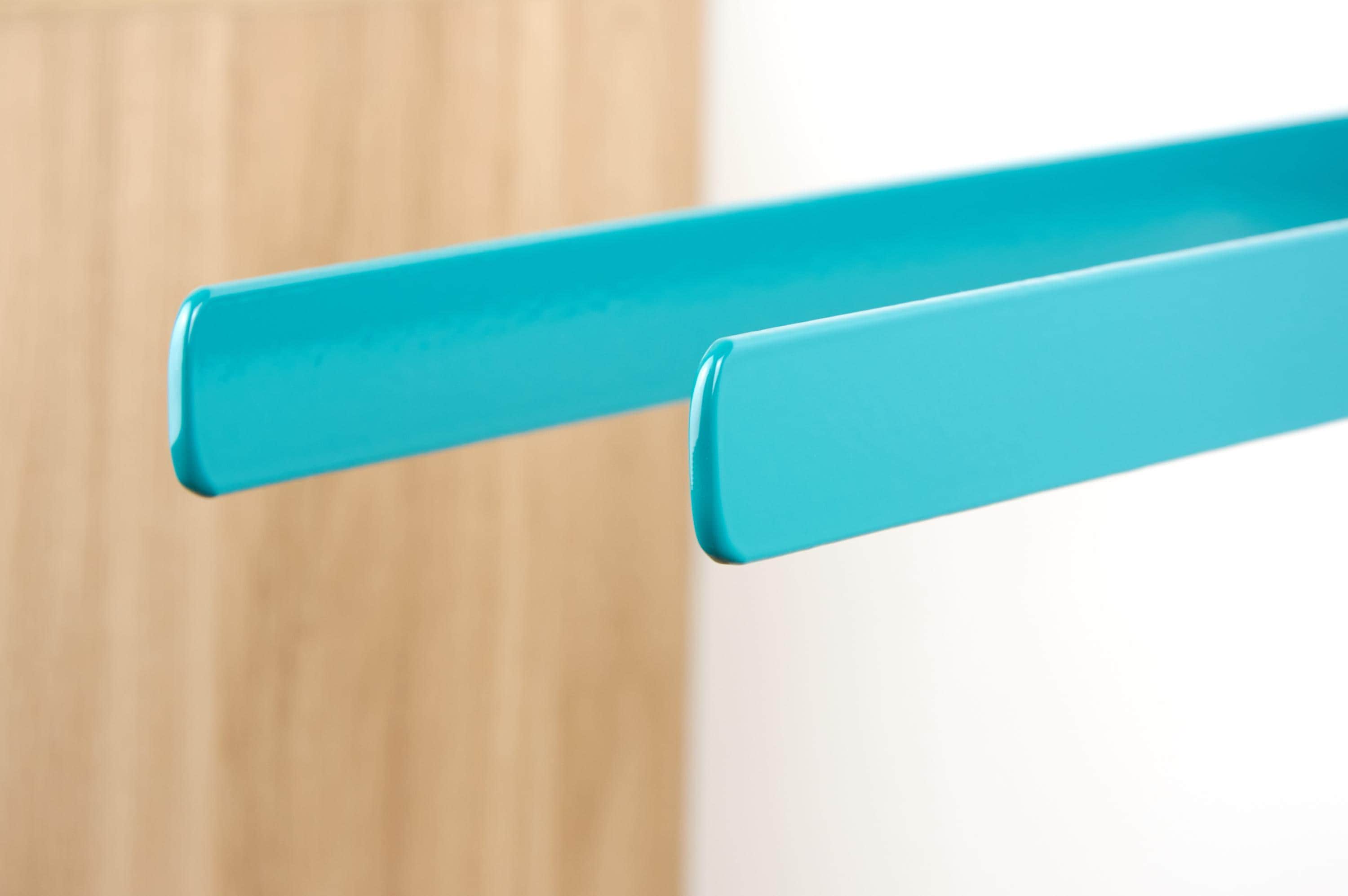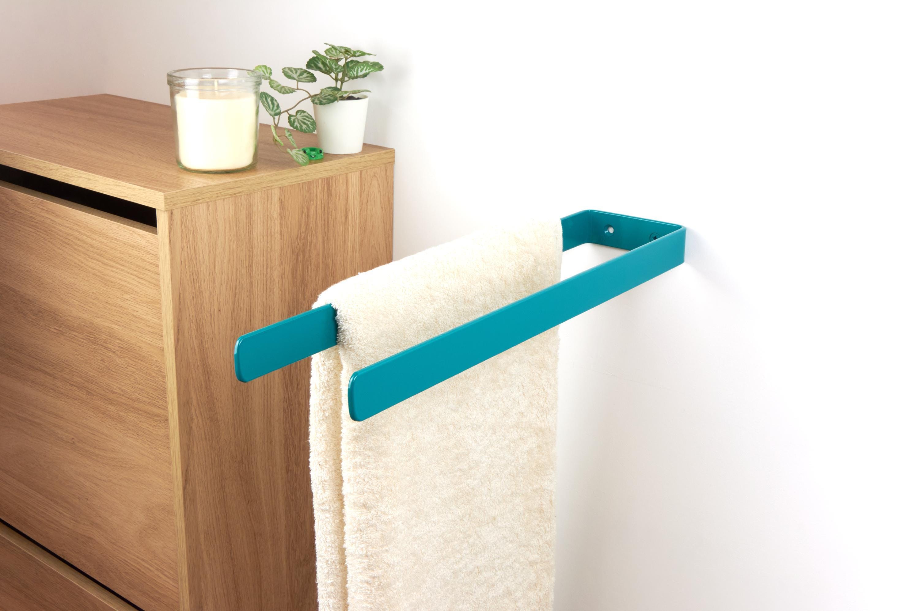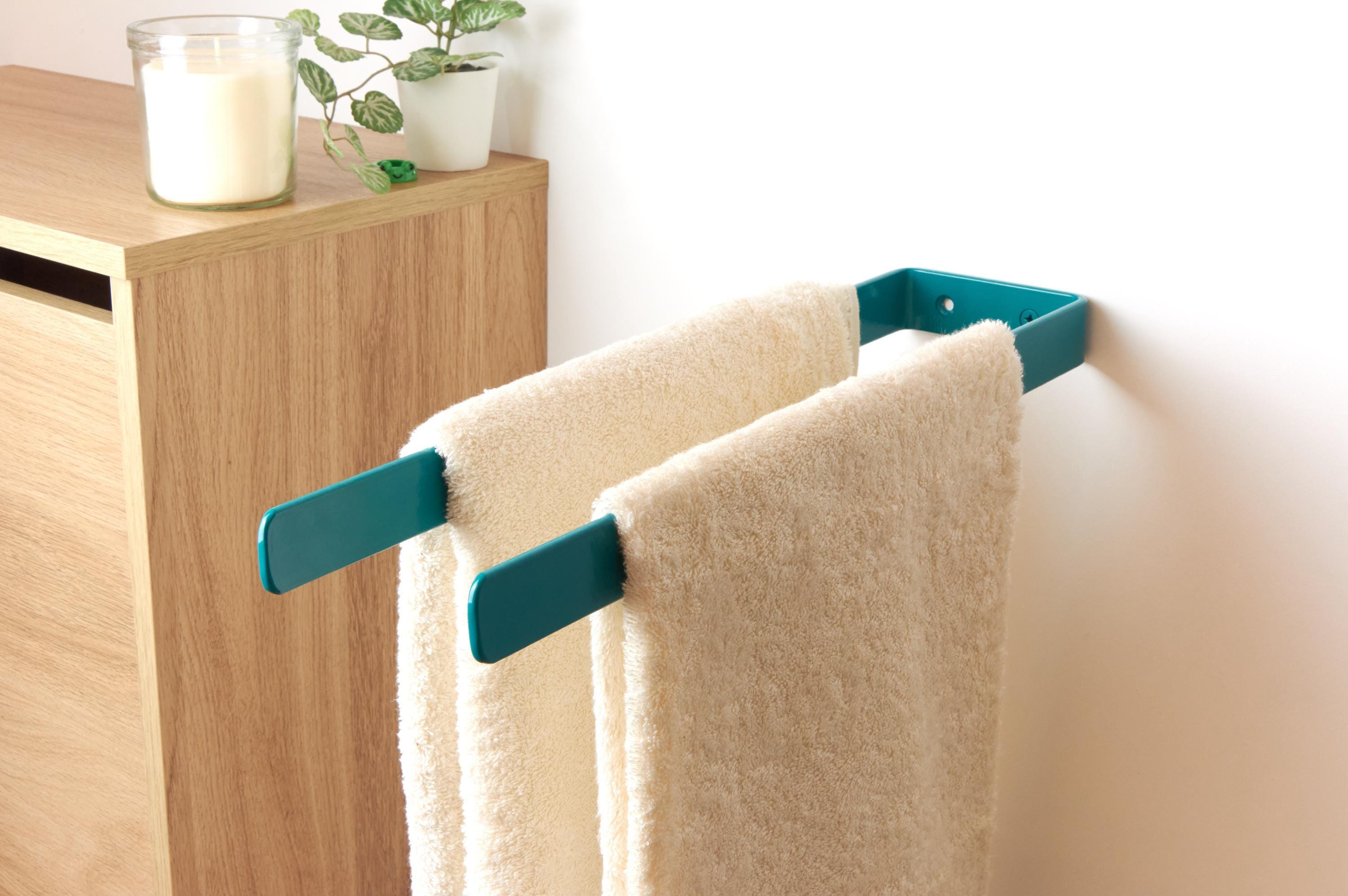 This double towel rack is a practical and space saving bathroom towel holder, perfect as an ideal home decor gift for any household! The color of the product in the pictures is Turquoise.
