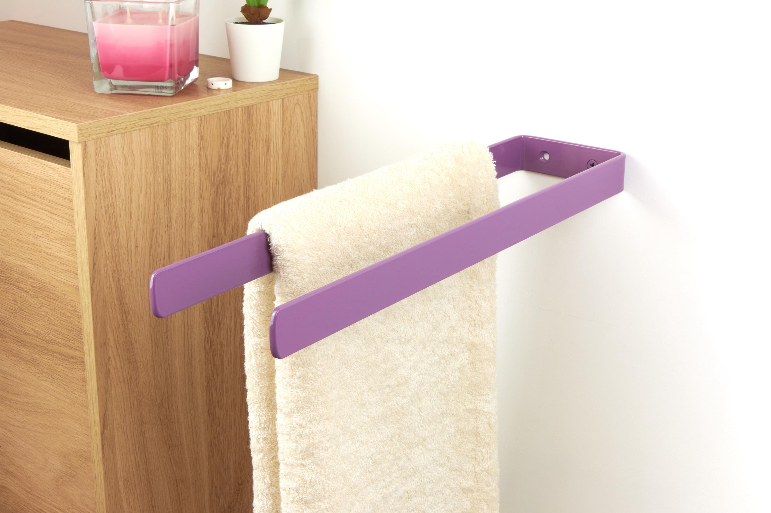 Double Towel Hanger - Vibrant Metal Towel Rack For Bathrooms, Functional Dual Towel Rack, Sleek Minimalist Design, Color Pictured - Violet