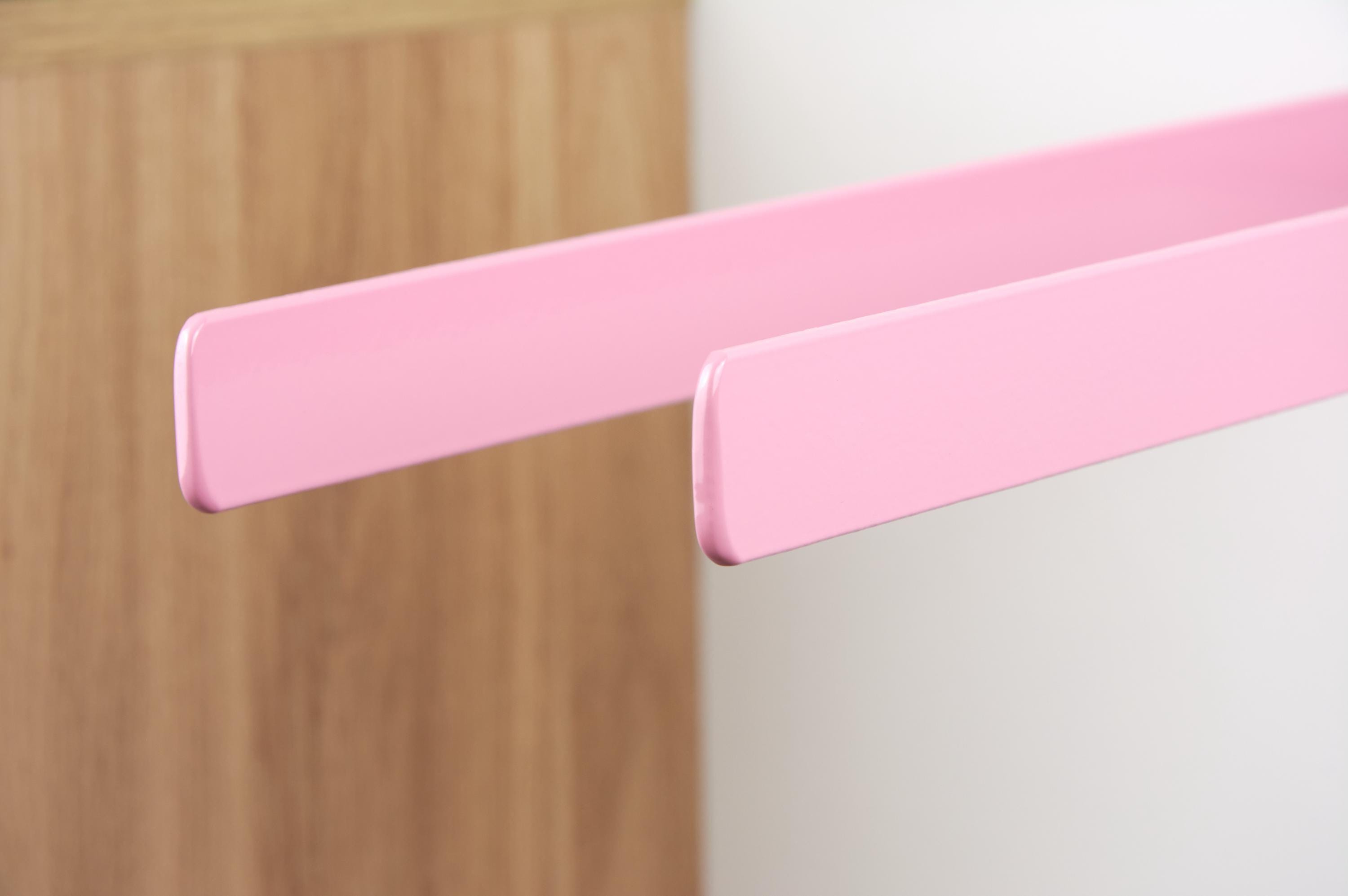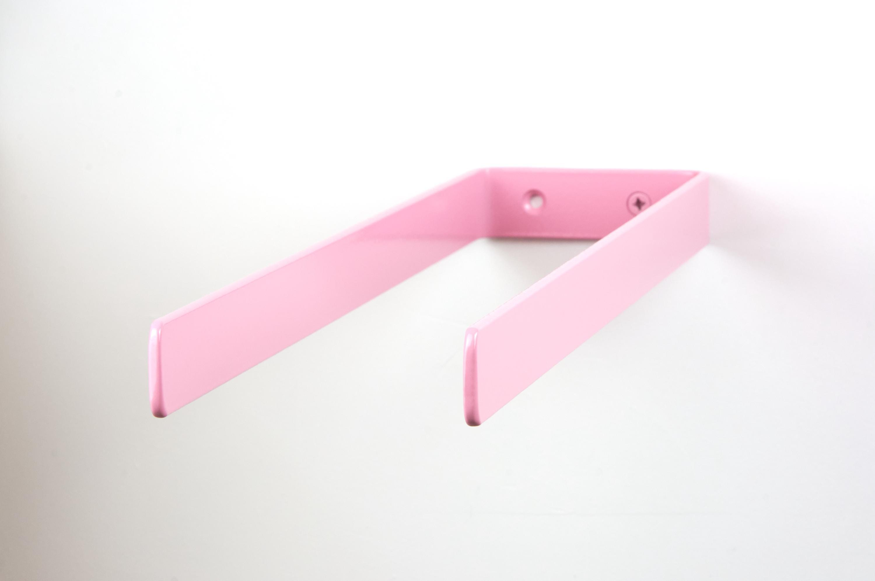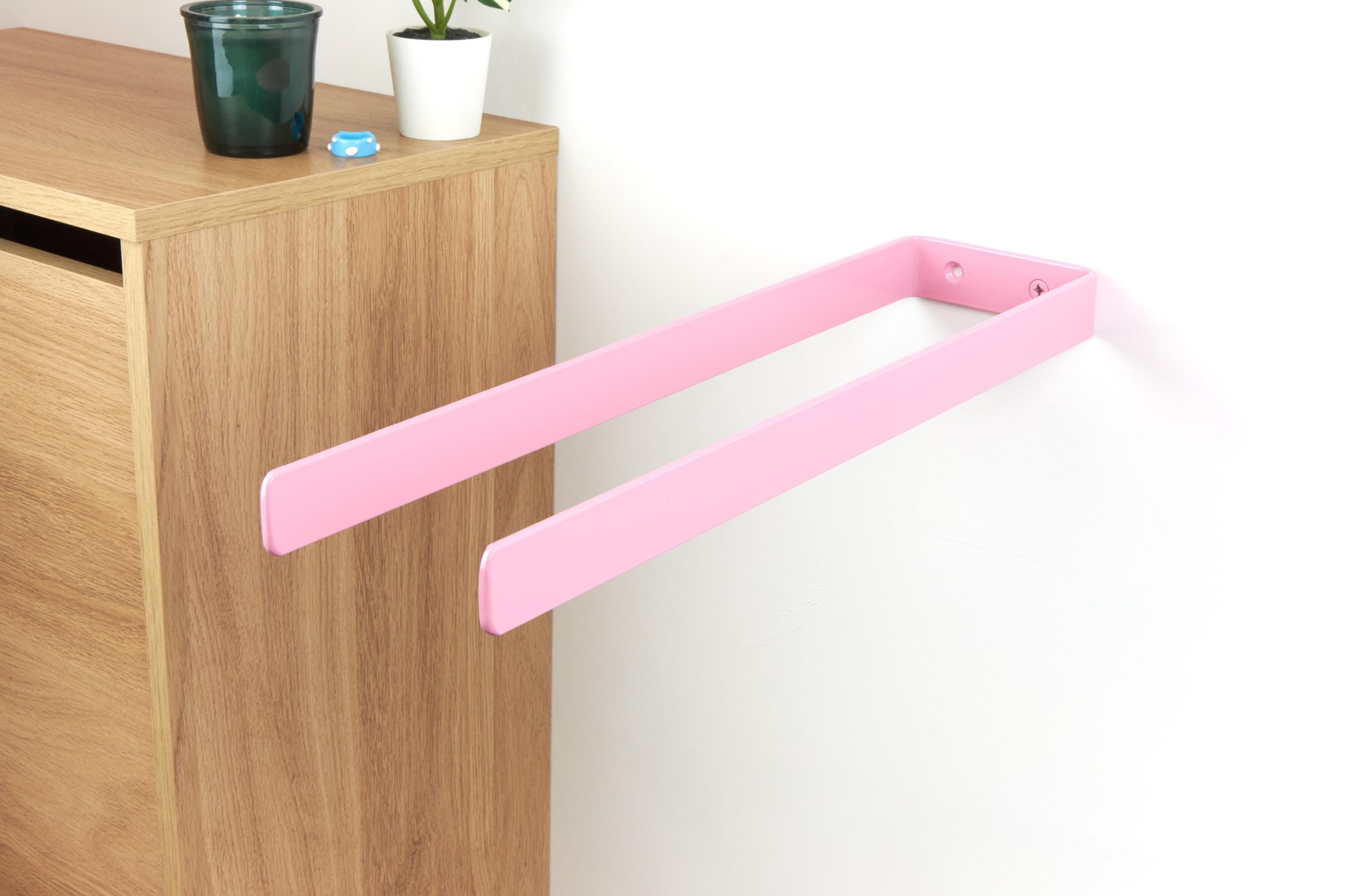 This double towel hanger is a space saving modern metal towel rack, providing a practical and stylish bathroom storage solution! The color of the product in the pictures is Pastel Pink.