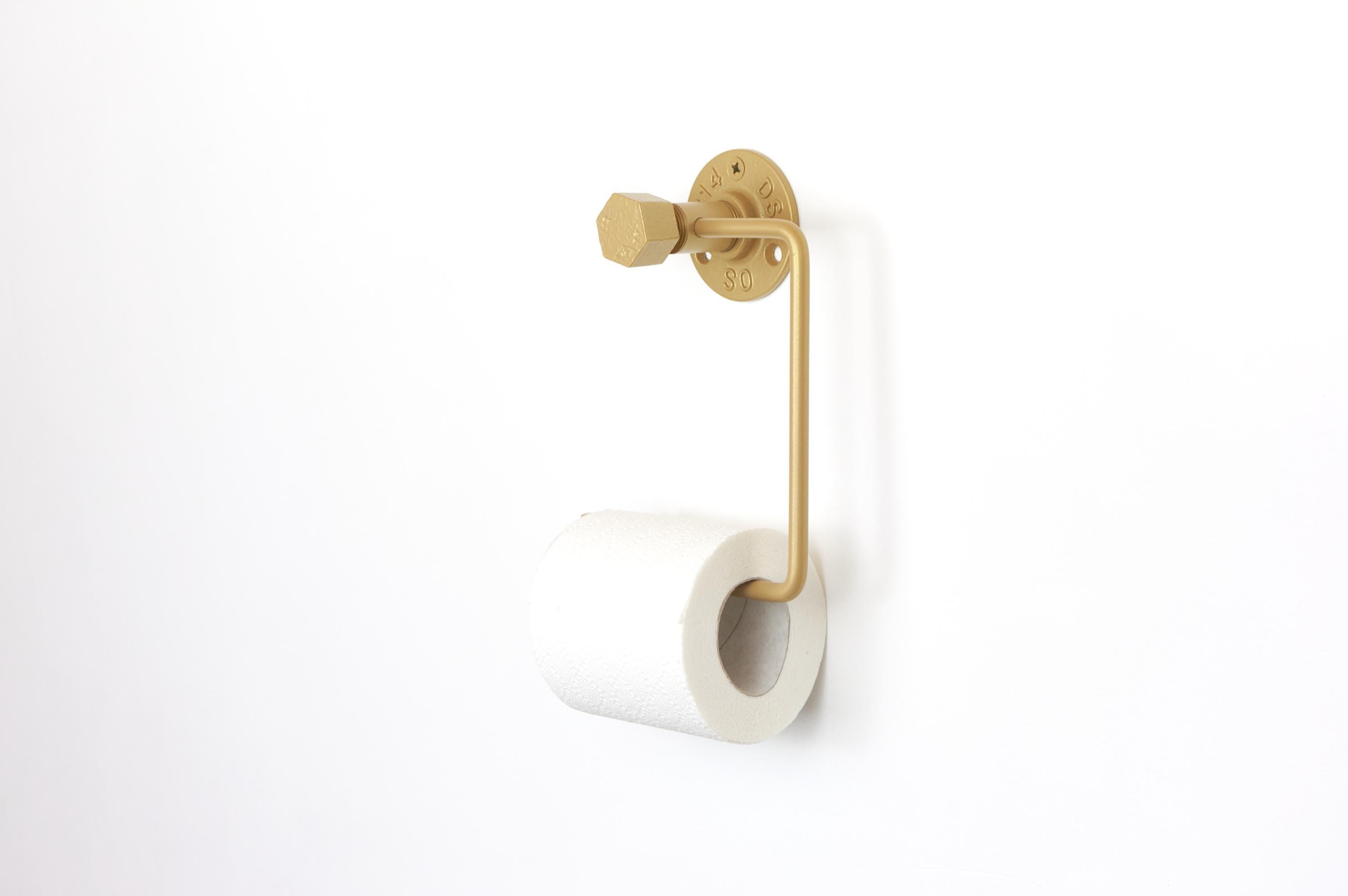 This compact toilet paper holder helps to keep bathrooms tidy and makes a perfect housewarming gift! The color of the product in the pictures is Champagne Gold.