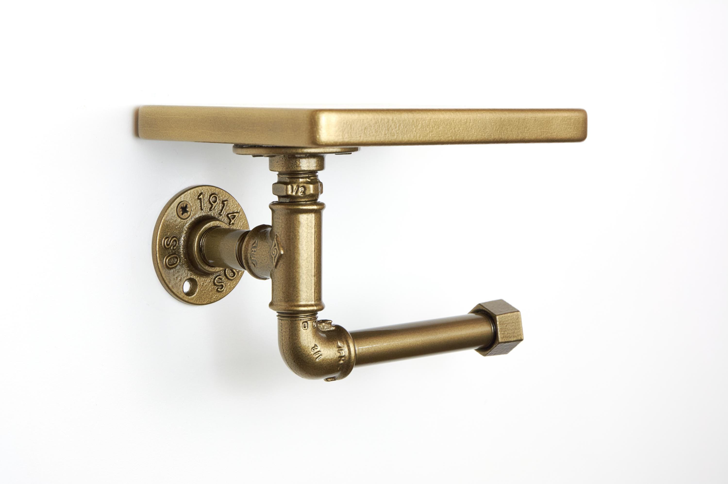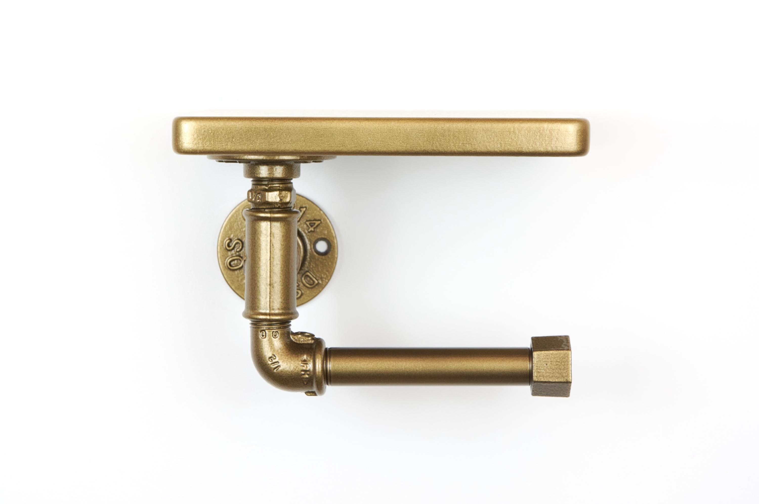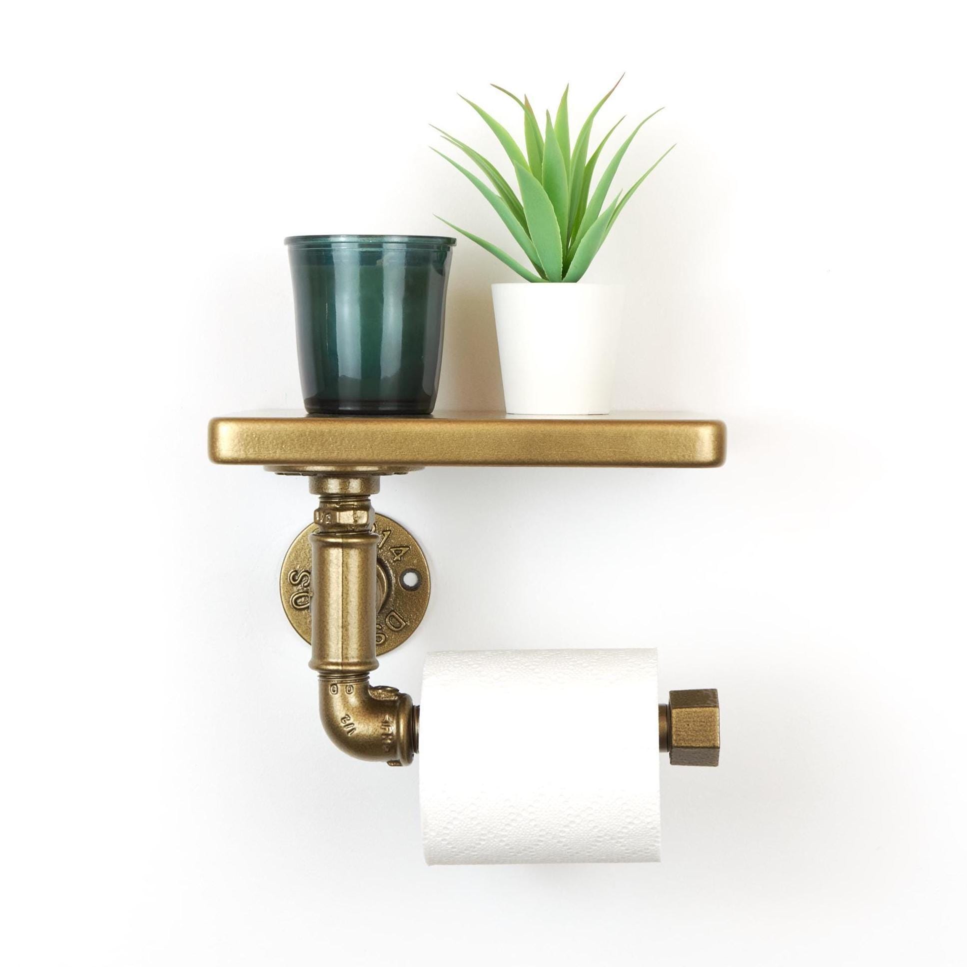 Toilet Paper Roll Holder With Shelf, Bathroom Organizer for Extra Storage, Practical Home Decor Gift, Color Pictured - Aged Brass