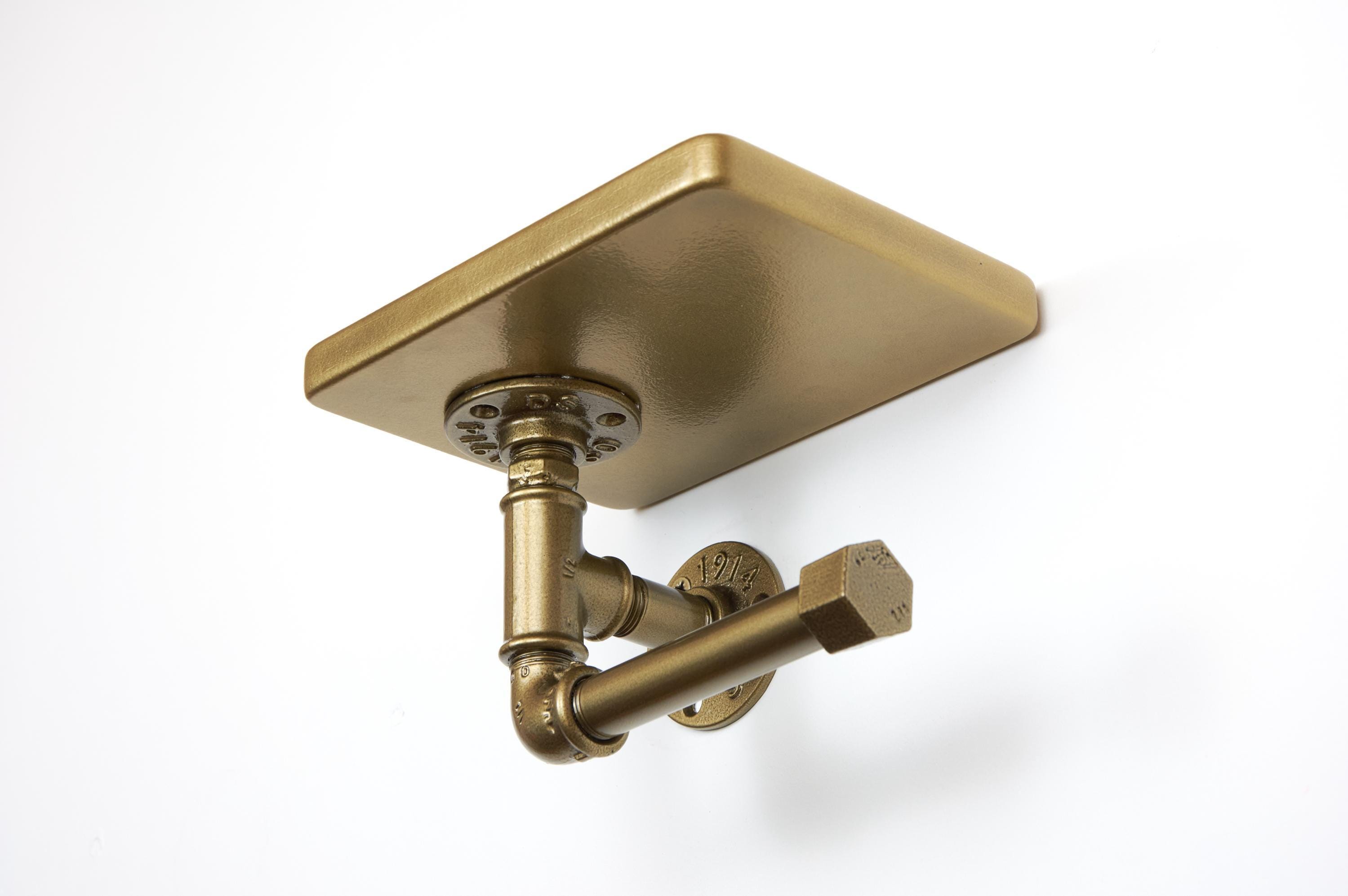 Add function and charm to your space with this toilet paper roll holder with shelf—a bathroom organizer for extra storage anyone will appreciate! The color of the product in the pictures is Aged Brass.