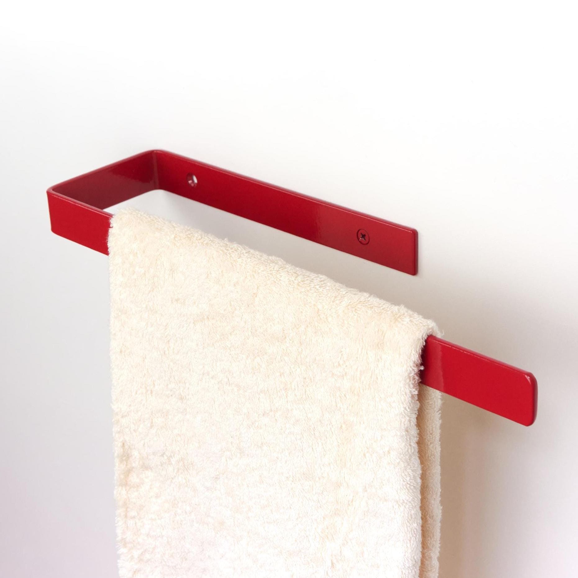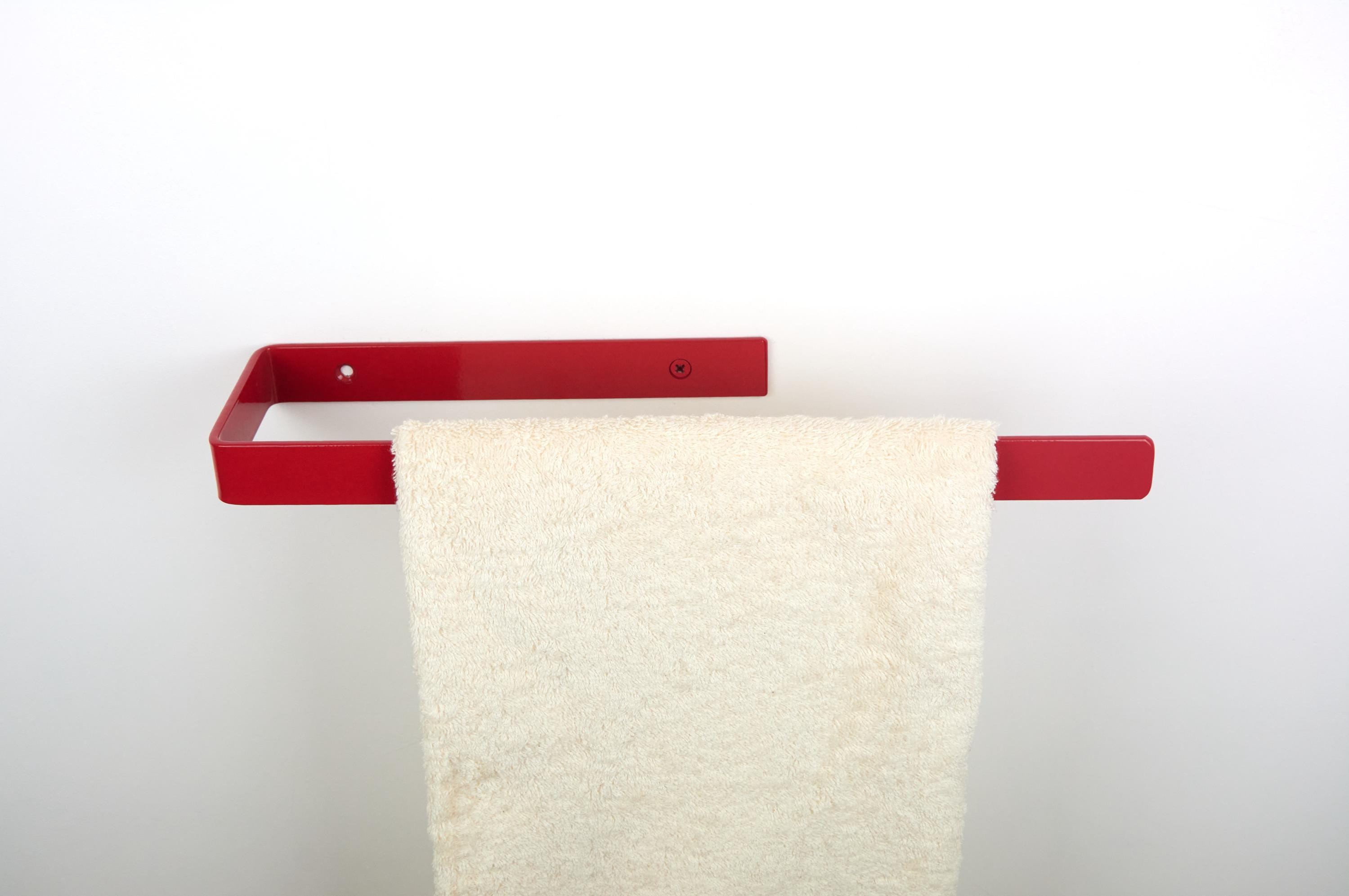 Liven up your space with this vibrant towel holder rack - a stylish wall mount for towel storage that adds a touch of colorful bathroom decor! The color of the product in the pictures is Red Gloss.