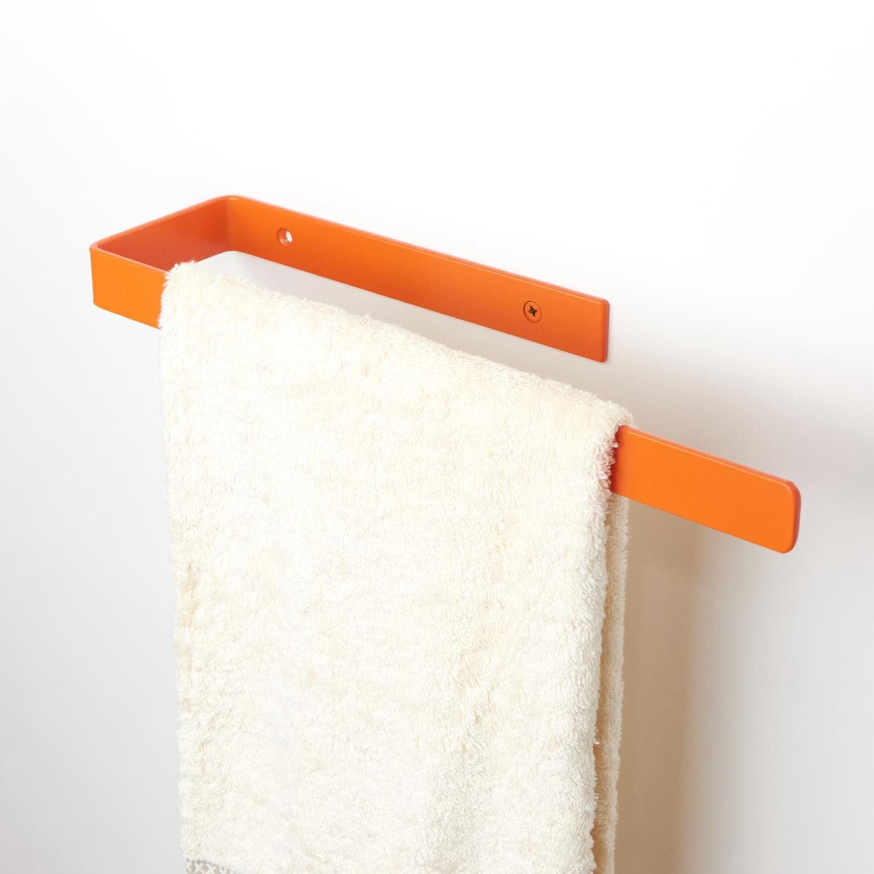 Bring life to your bathroom with this bright colorful towel holder rack - a durable wall mount for bathroom and a thoughtful gift for home decor enthusiasts! The color of the product in the pictures is Orange Matte.