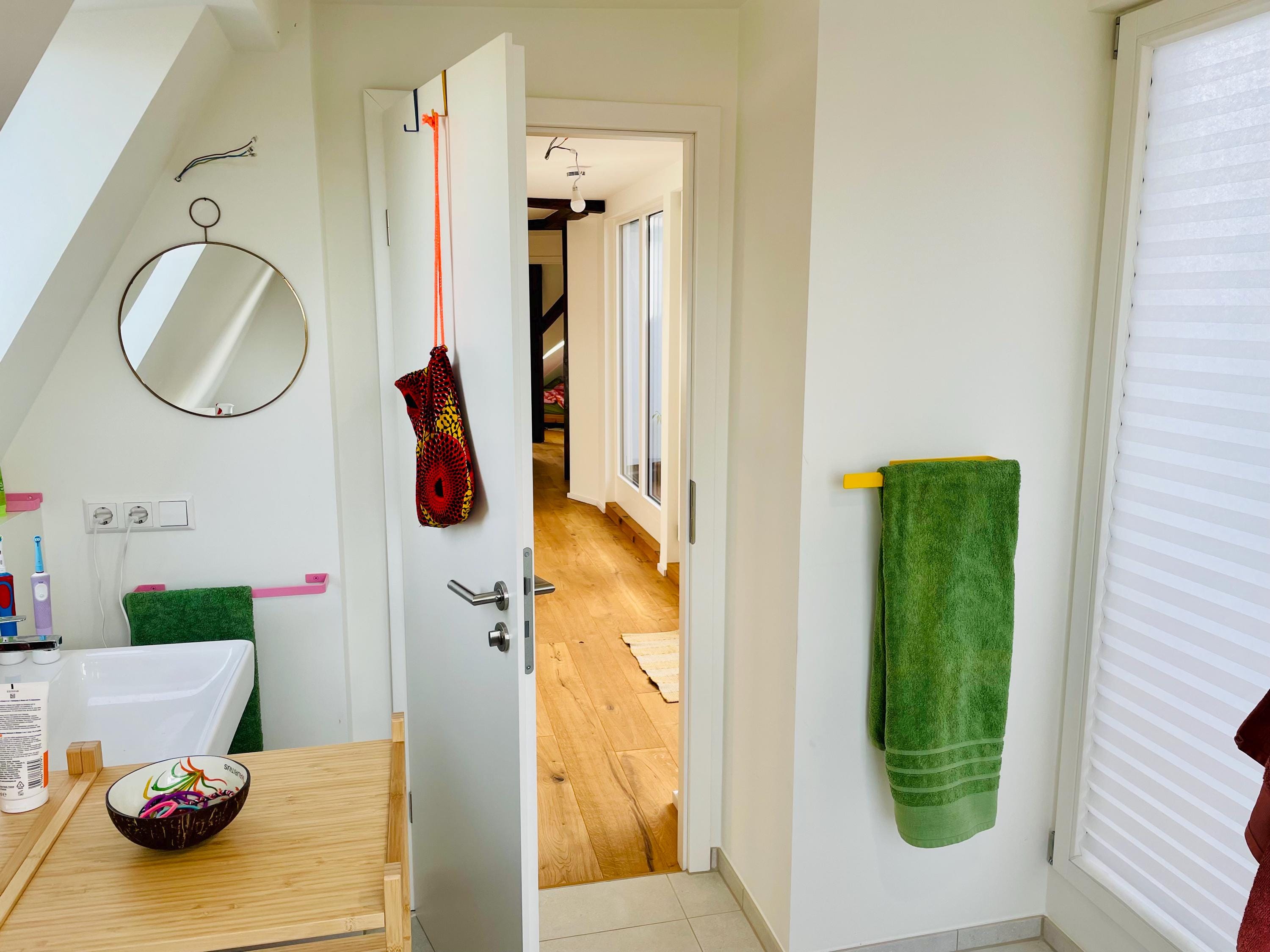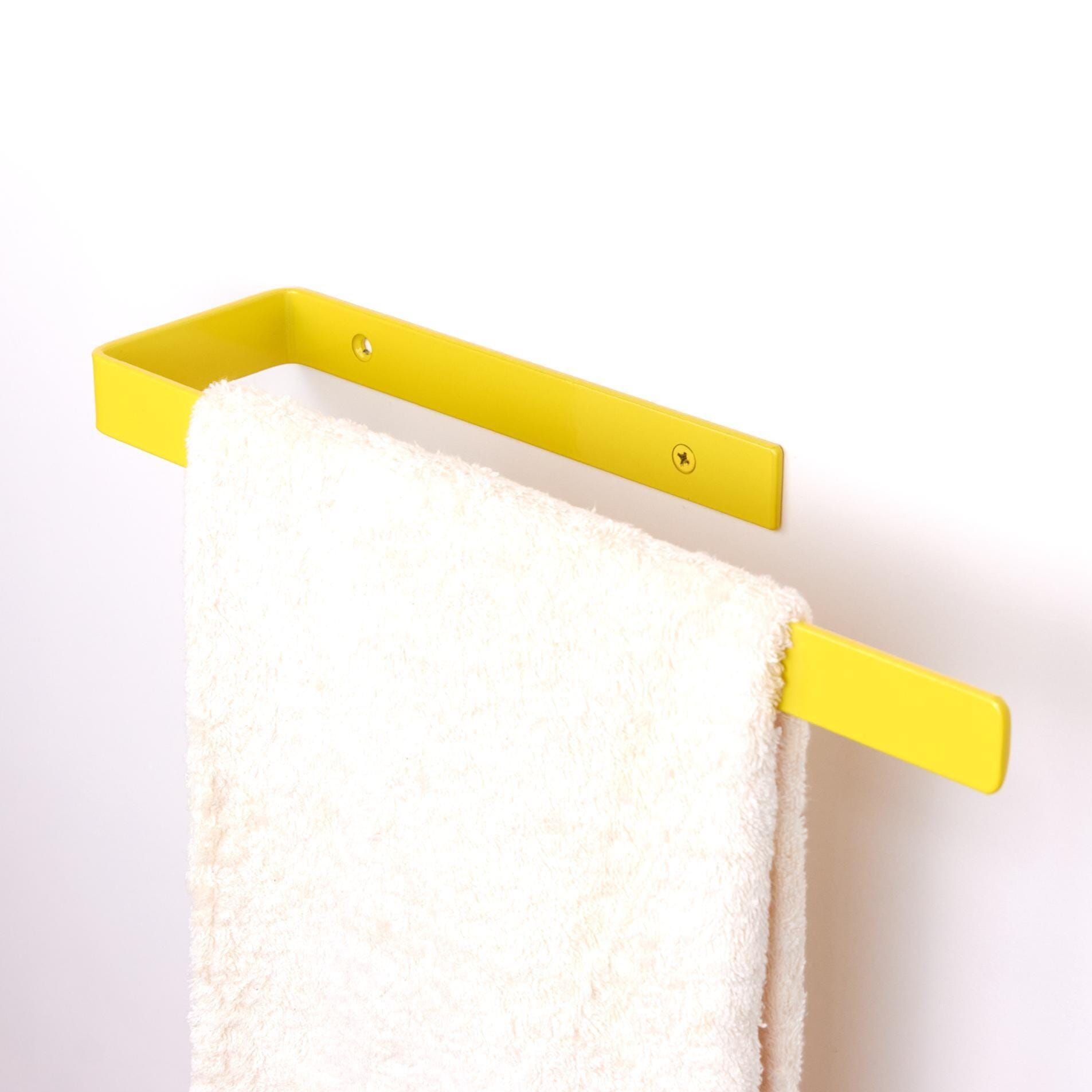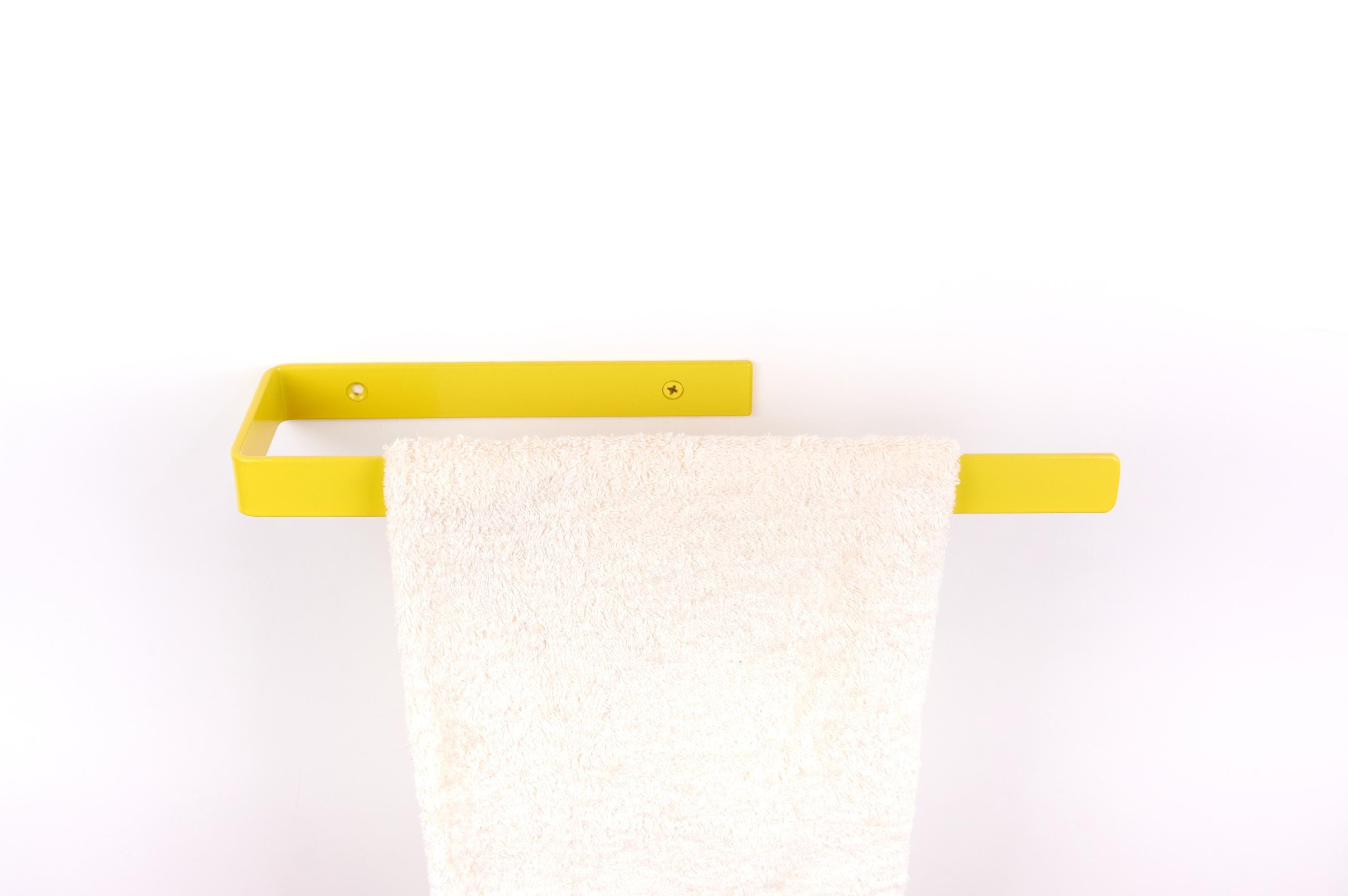 Add a pop of color with this vibrant towel holder rack - a bright wall hanger for towels and a perfect bath accessories piece! The color of the product in the pictures is Yellow Gloss.