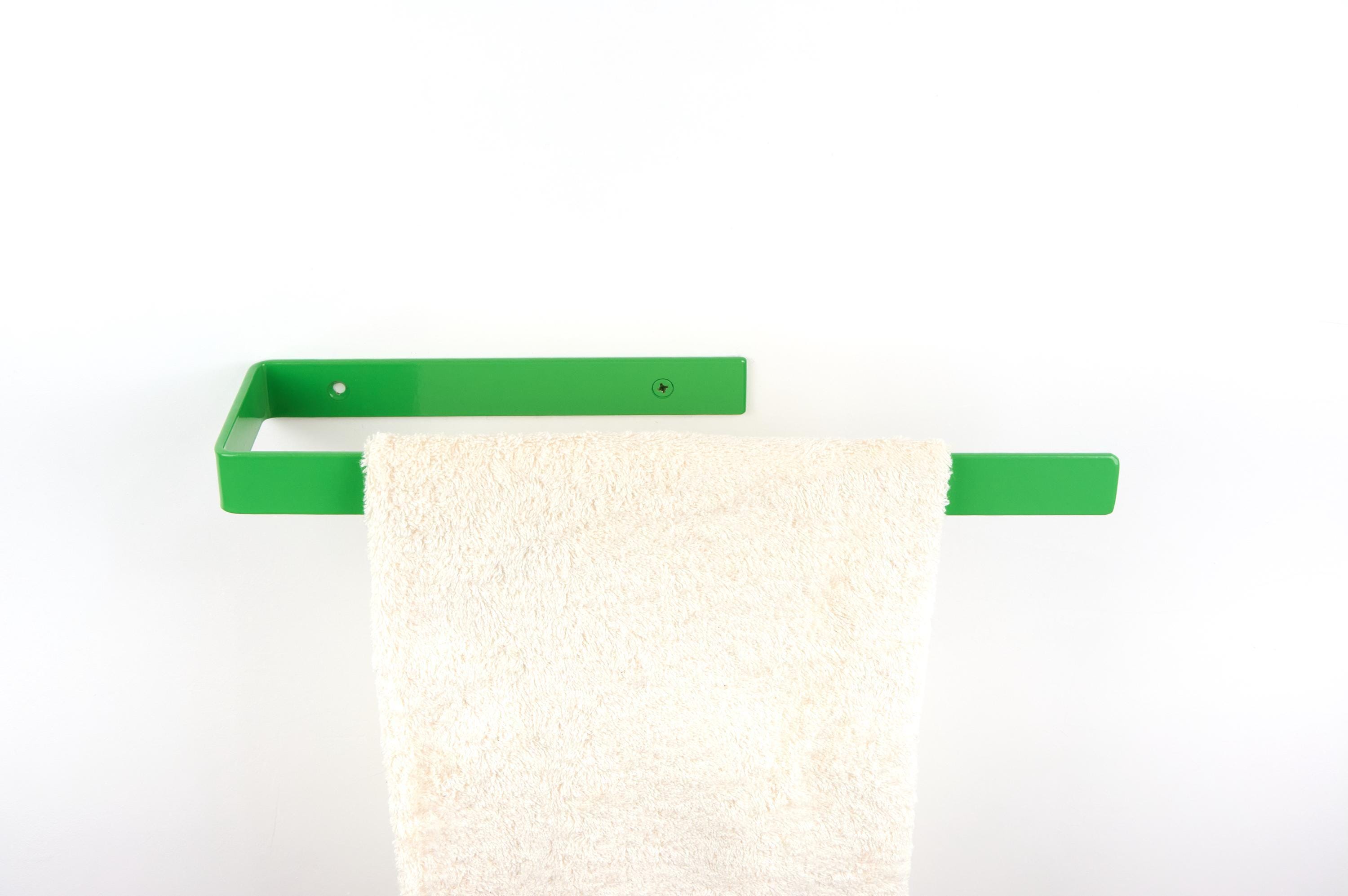 Add cheer to any space with this colorful bright towel holder rack - a vibrant wall mount for bathroom and a perfect housewarming gift! The color of the product in the pictures is Green Gloss.