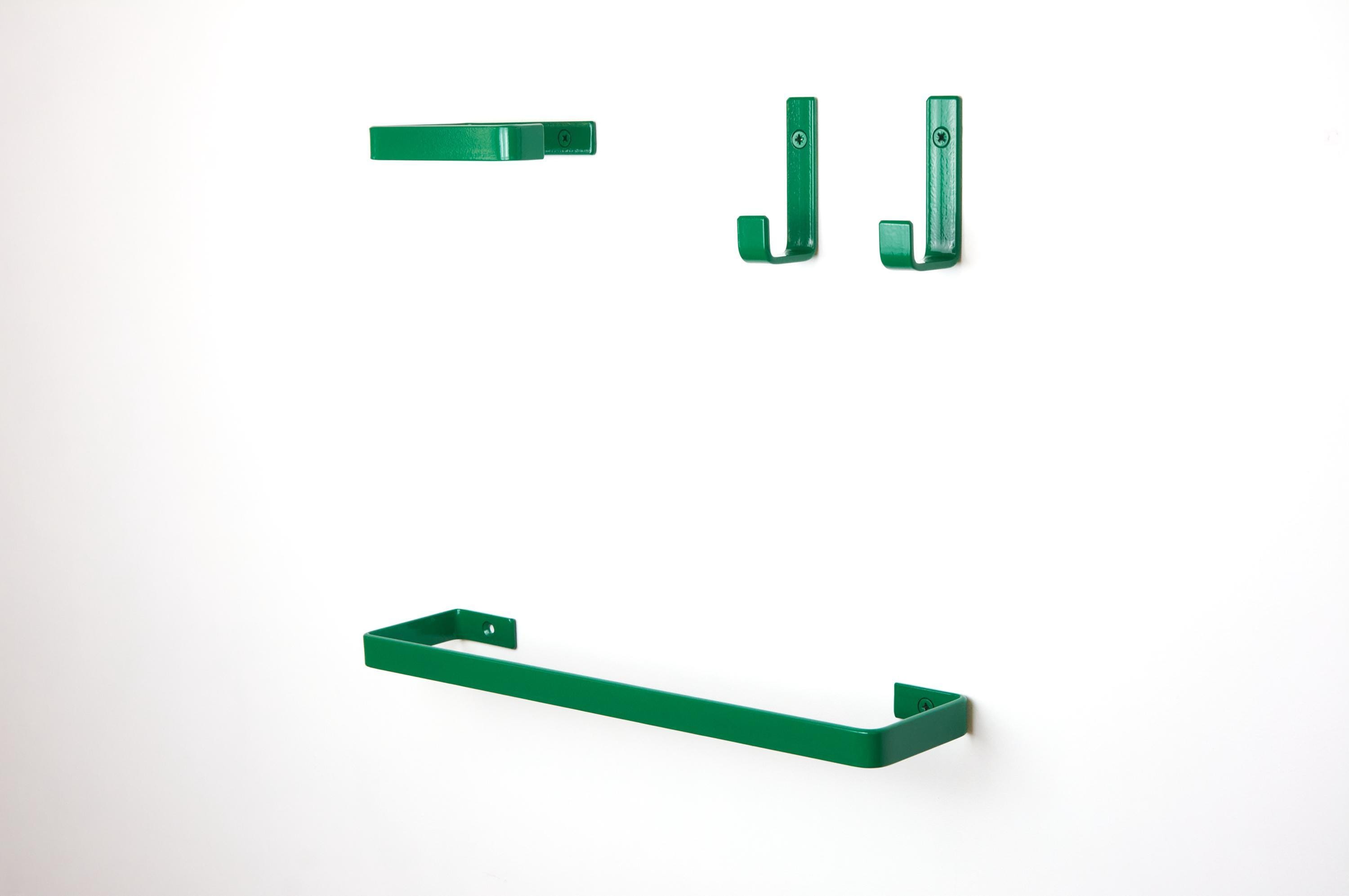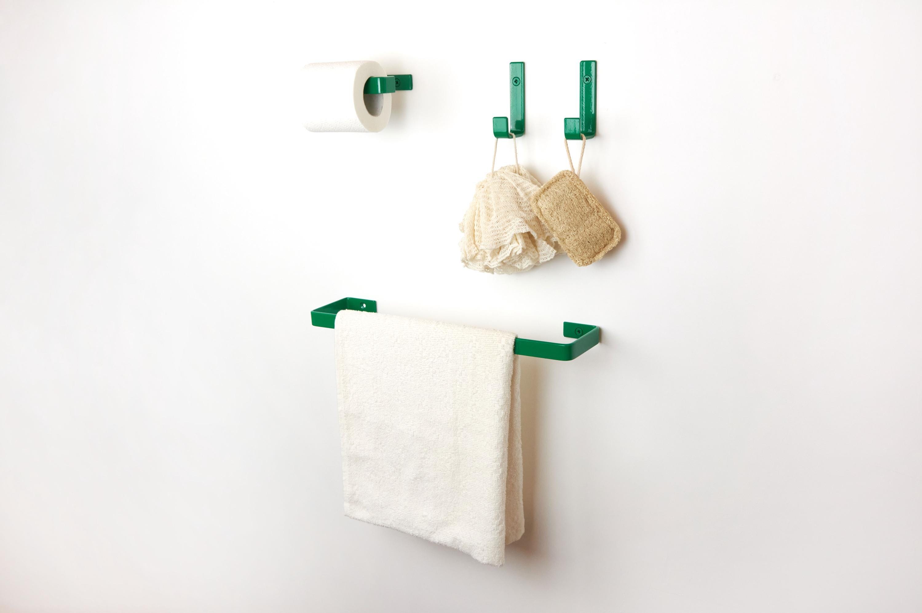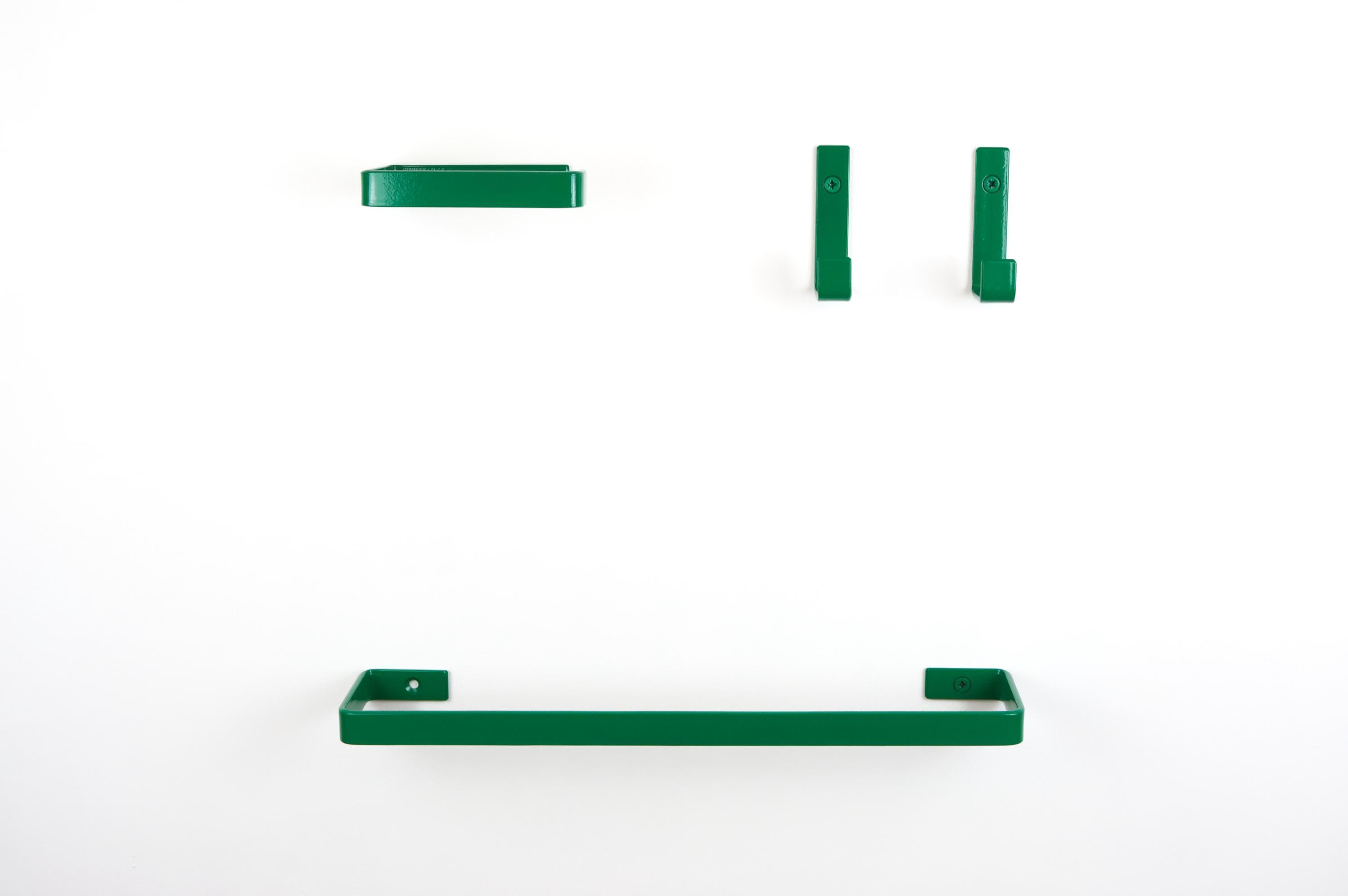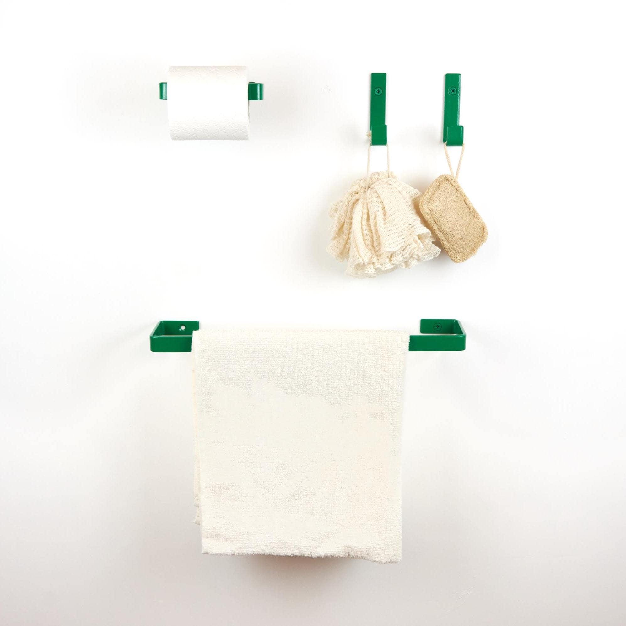 Refresh your space with this bathroom accessories set - a modern toilet paper holder, towel holder, and hooks designed for smart bathroom storage and decor! Color of the set pictured - Dark Green Gloss.