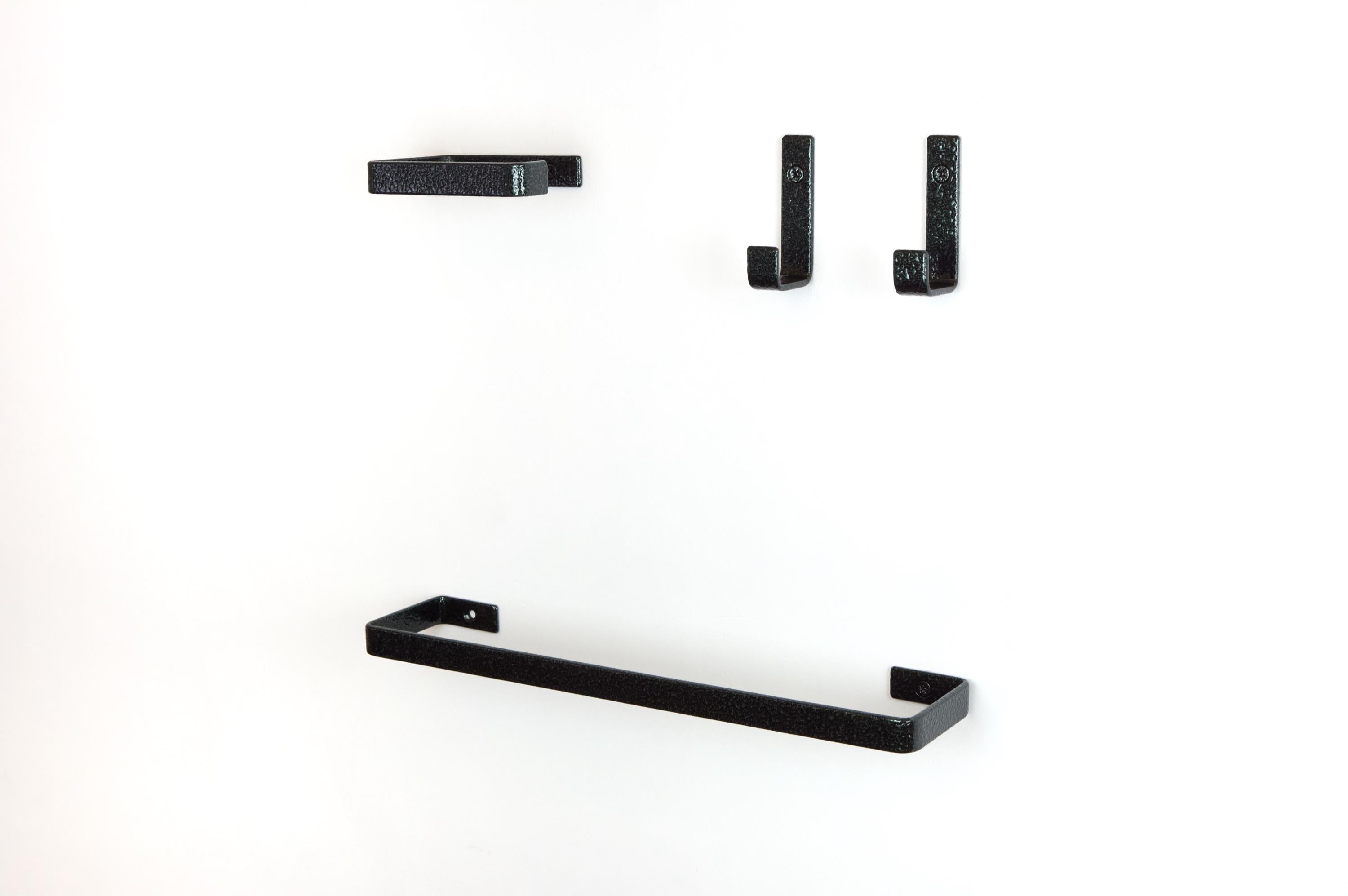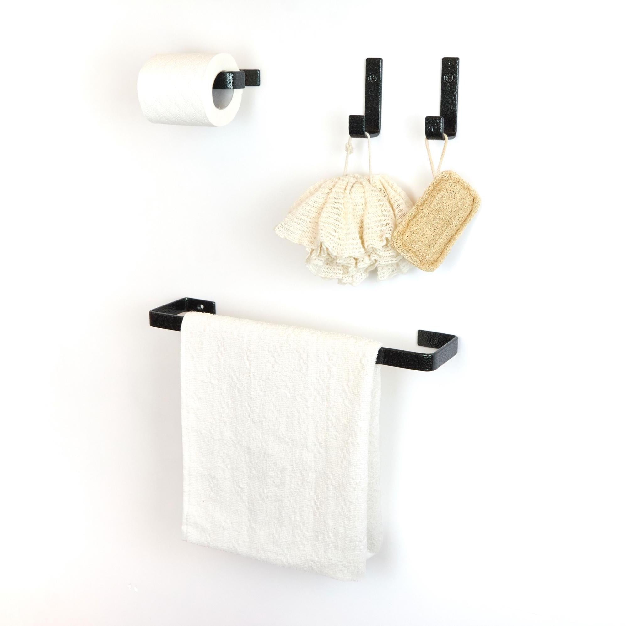 Complete your space with this bathroom accessories set - featuring a toilet paper holder, towel holder, and hooks for the perfect bathroom decor! Color of the set pictured - Antique Green.