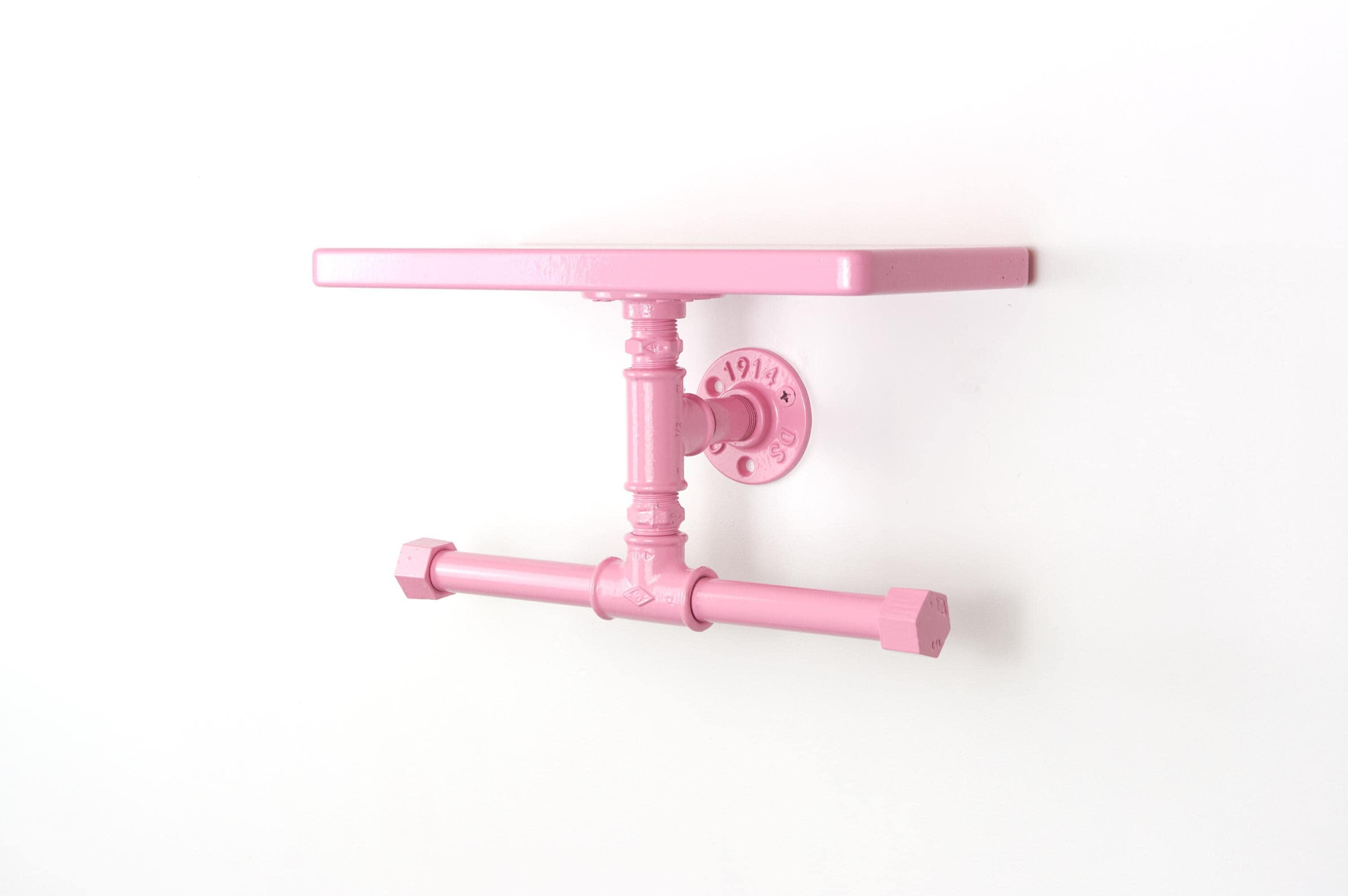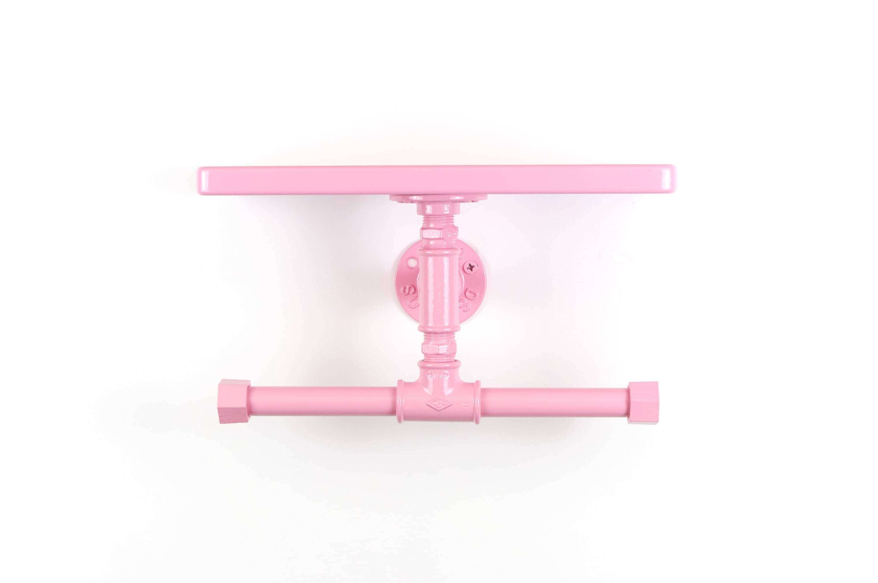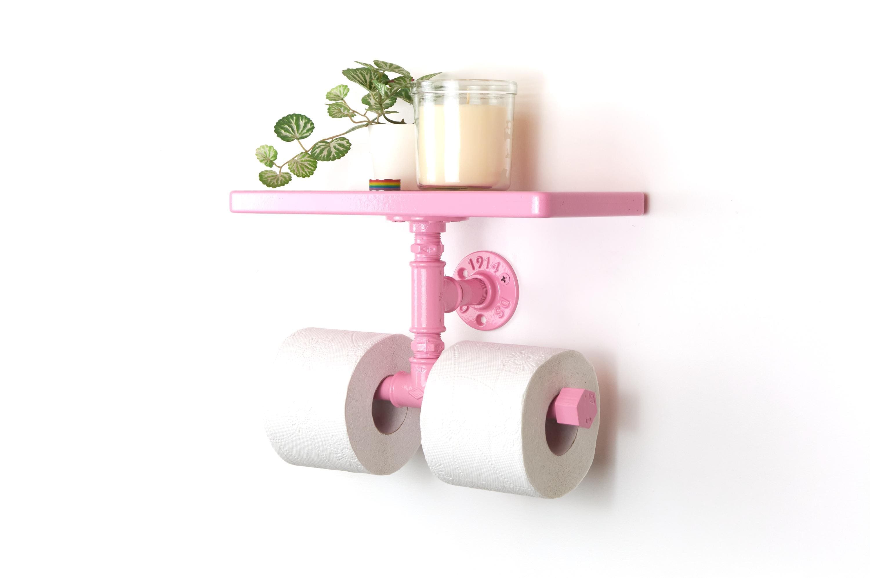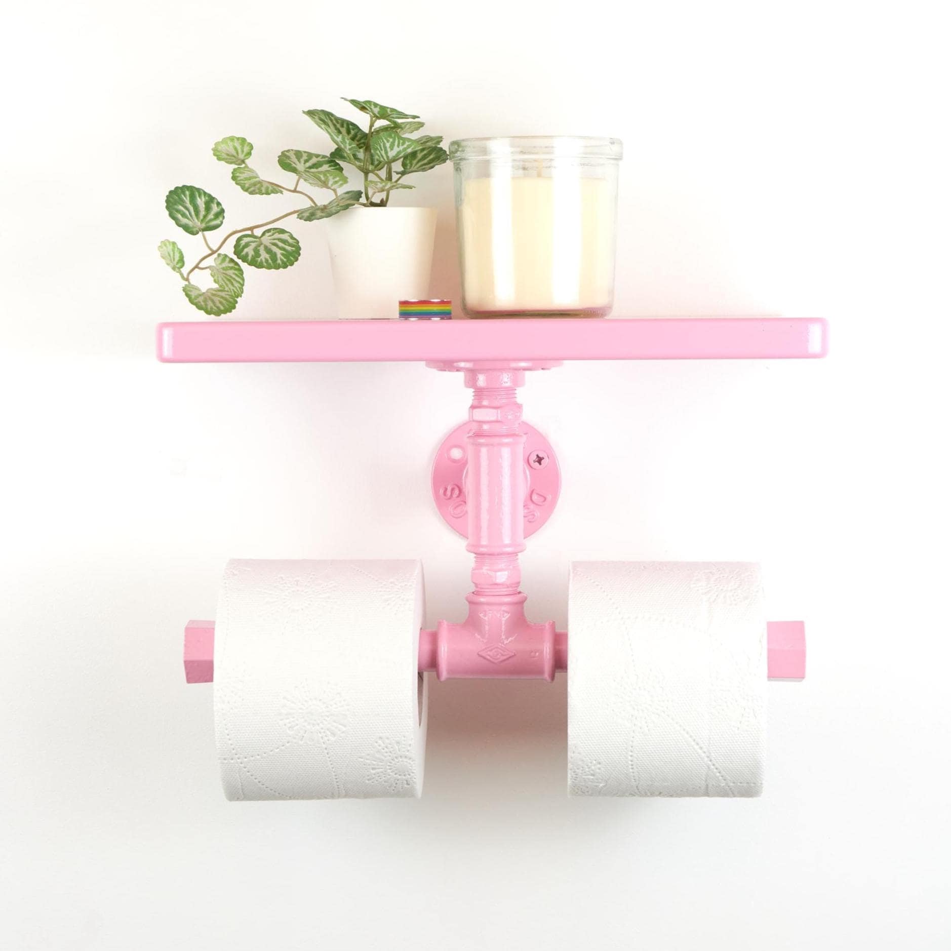 Add charm and function with this double toilet paper holder with shelf - a stylish bathroom organizer for easy access, shown here in Pastel Pink!