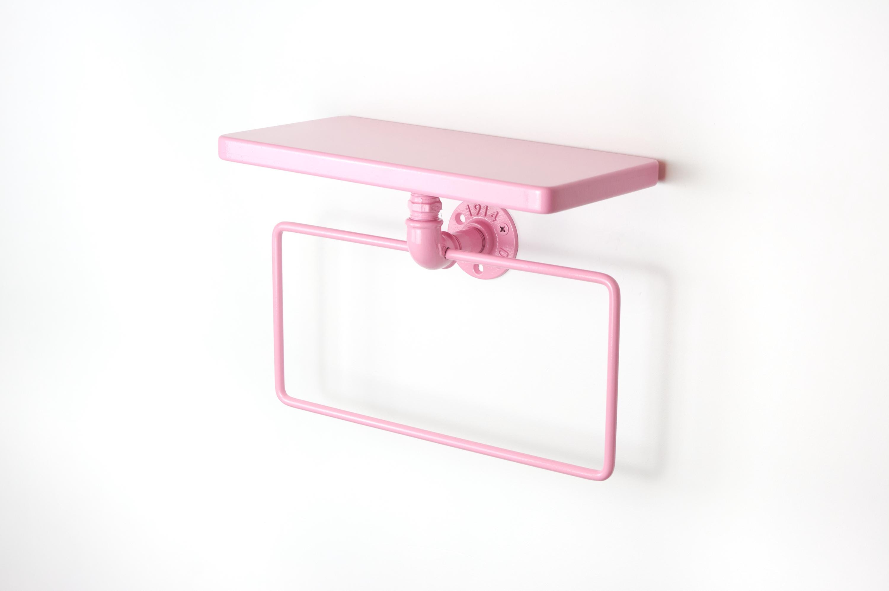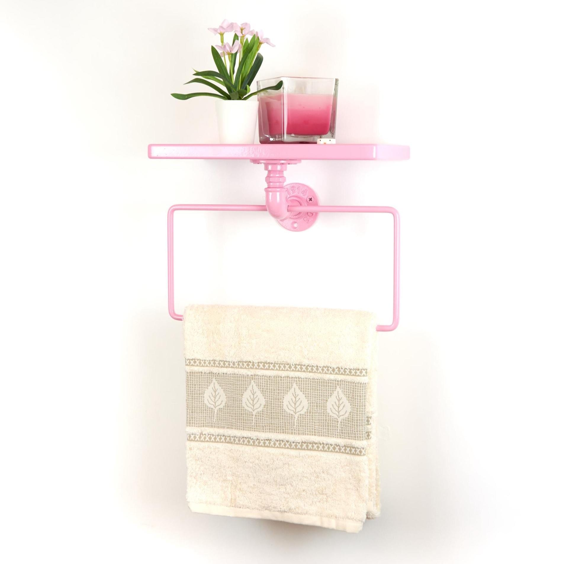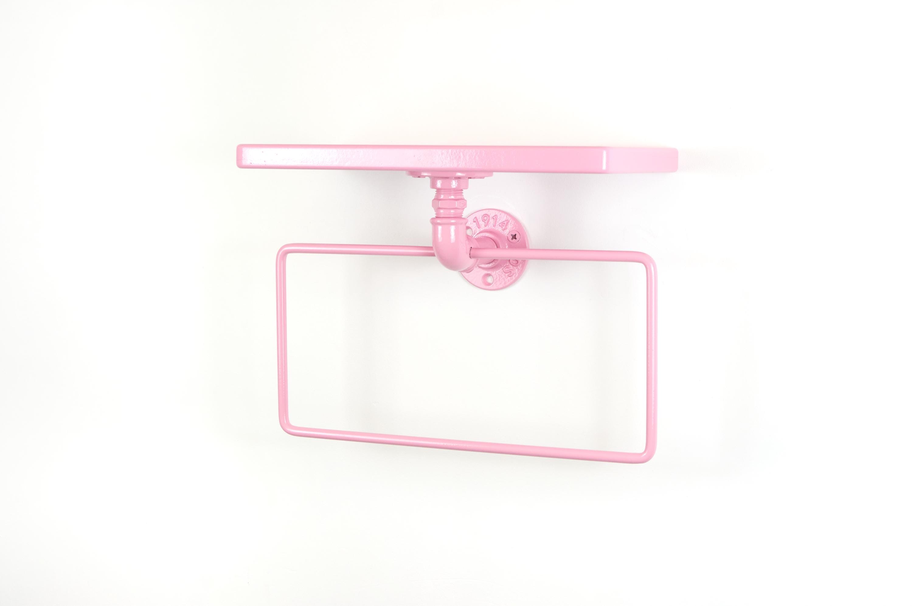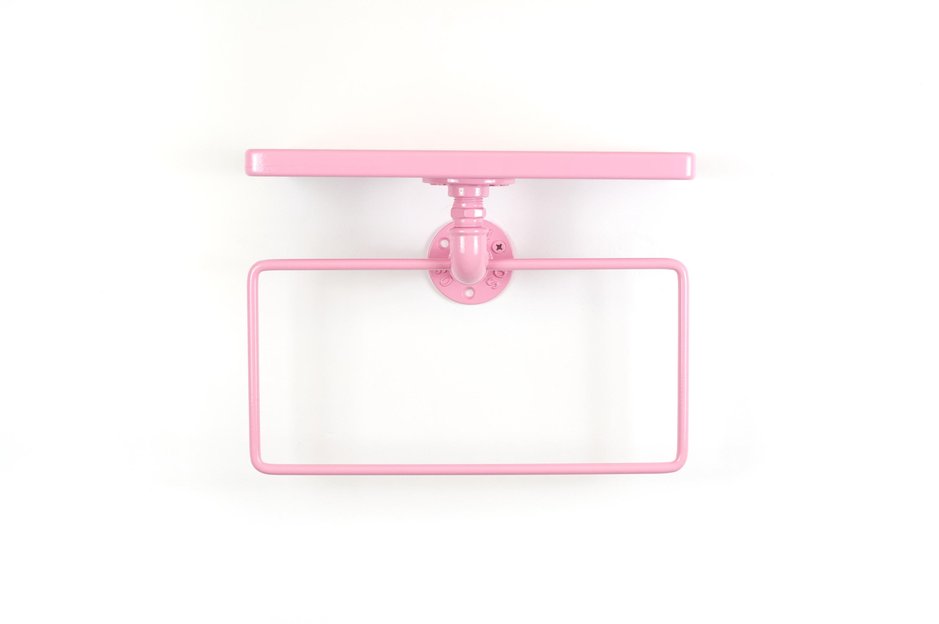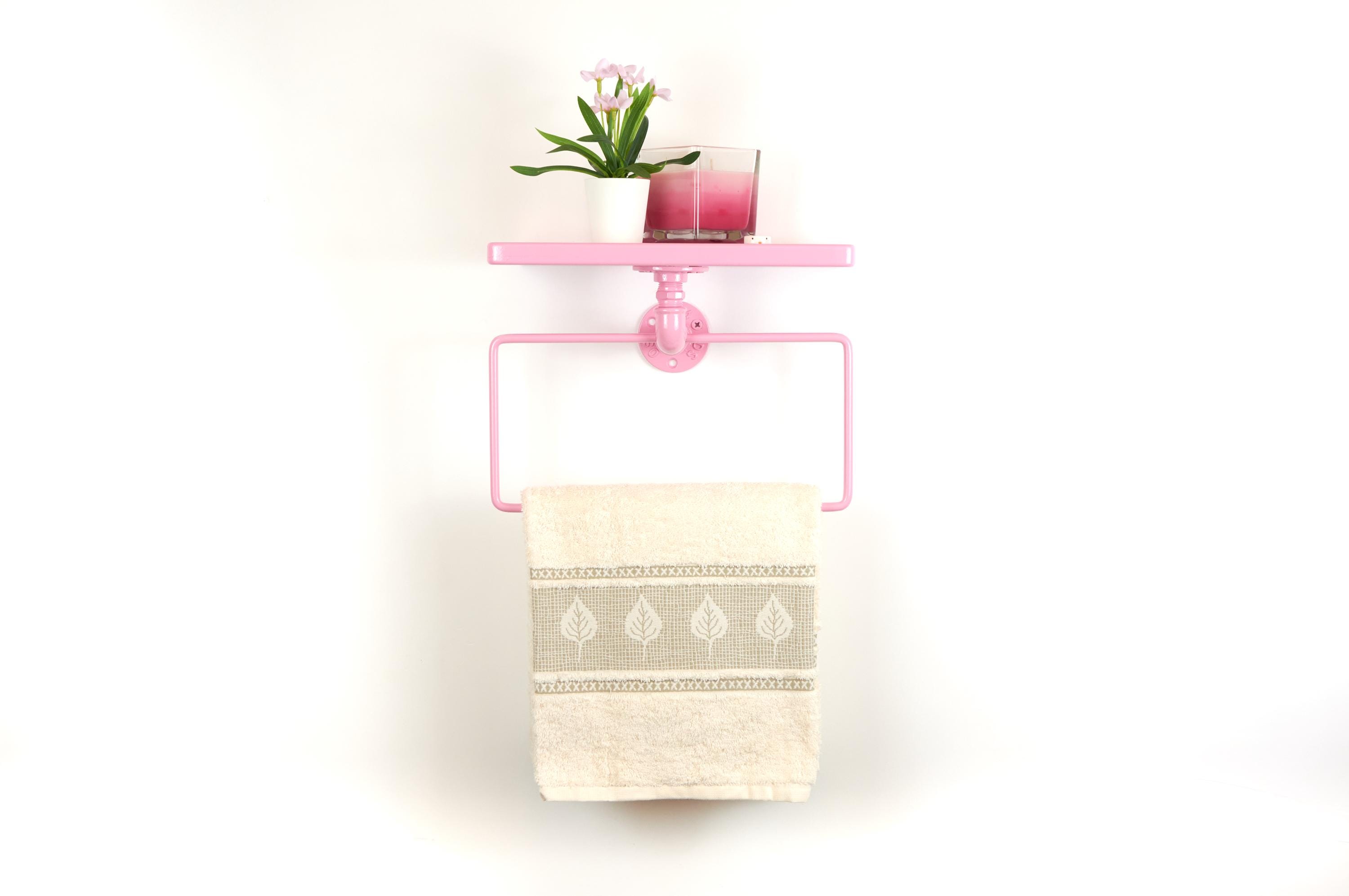 Add charm and function to your space with this towel holder with shelf, a stylish bathroom storage solution or a thoughtful gift for a new home, shown here in Pastel Pink!