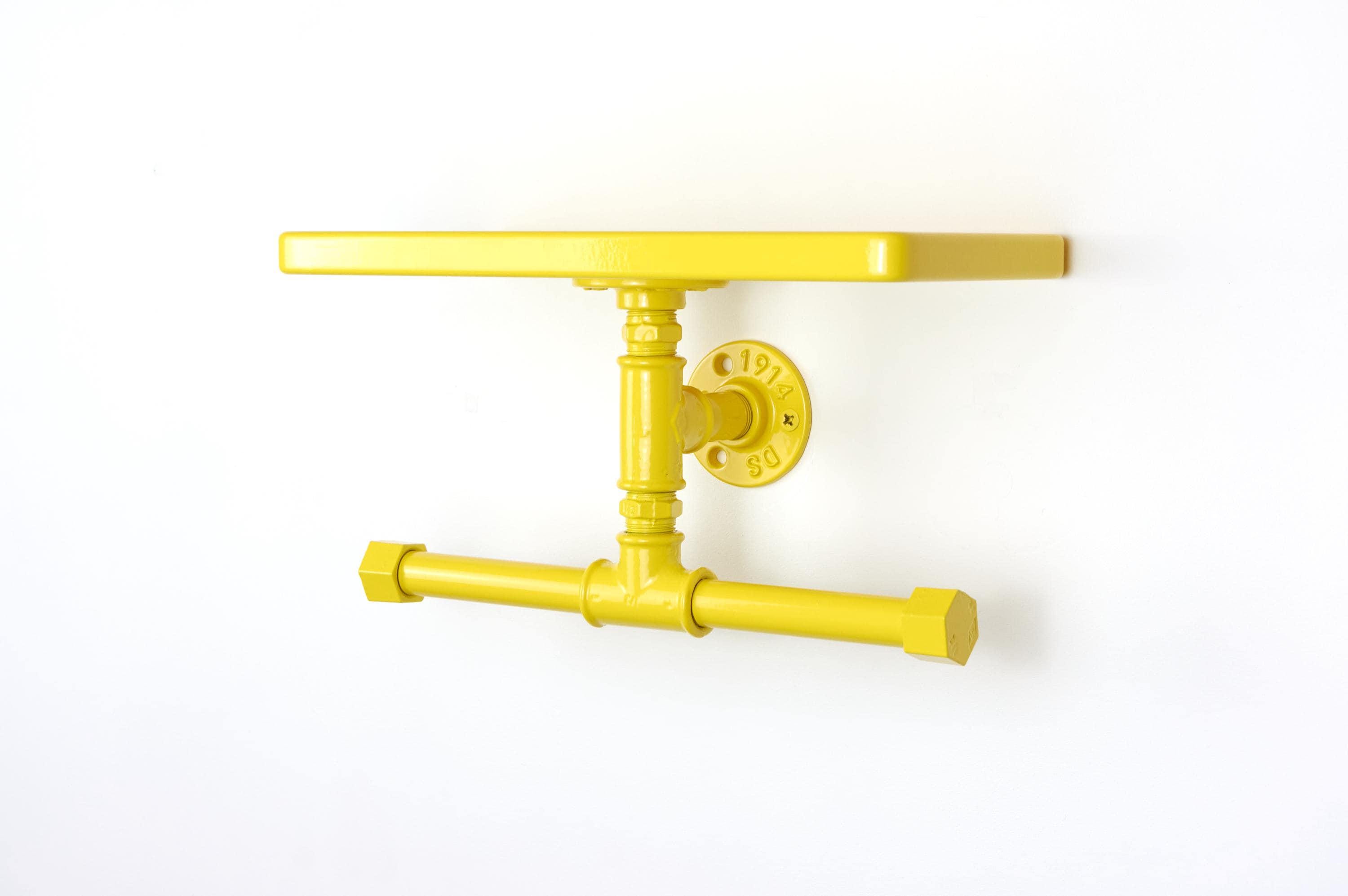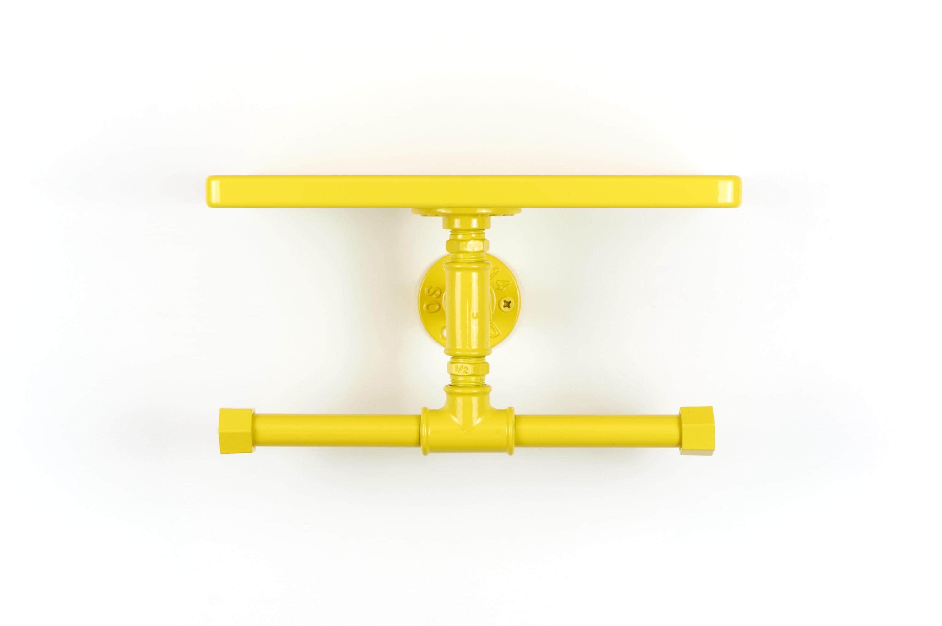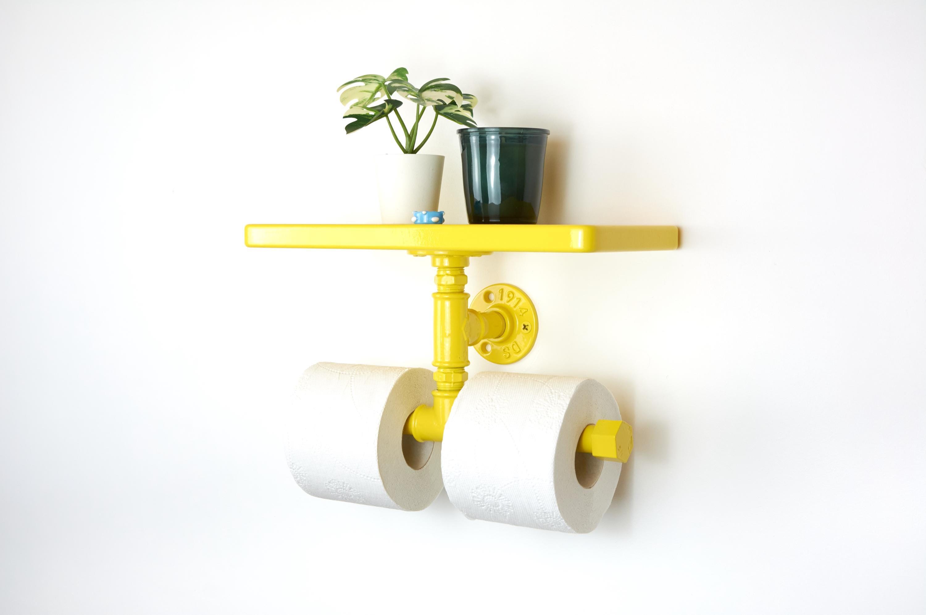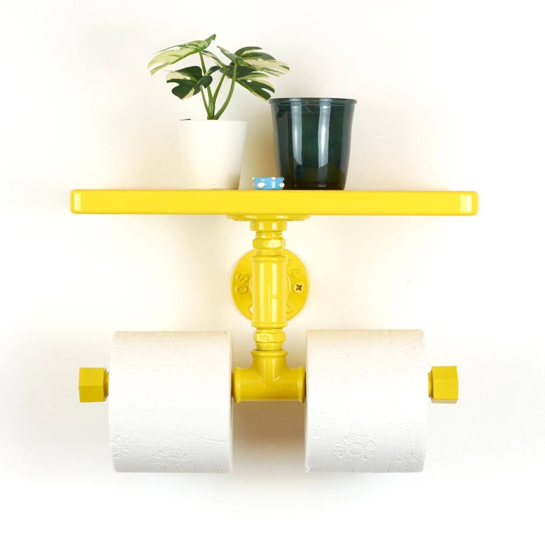 This double toilet paper holder with shelf is a modern wall mounted organizer that combines functional storage with stylish bathroom decor! Color shown in pictures - Yellow Gloss.