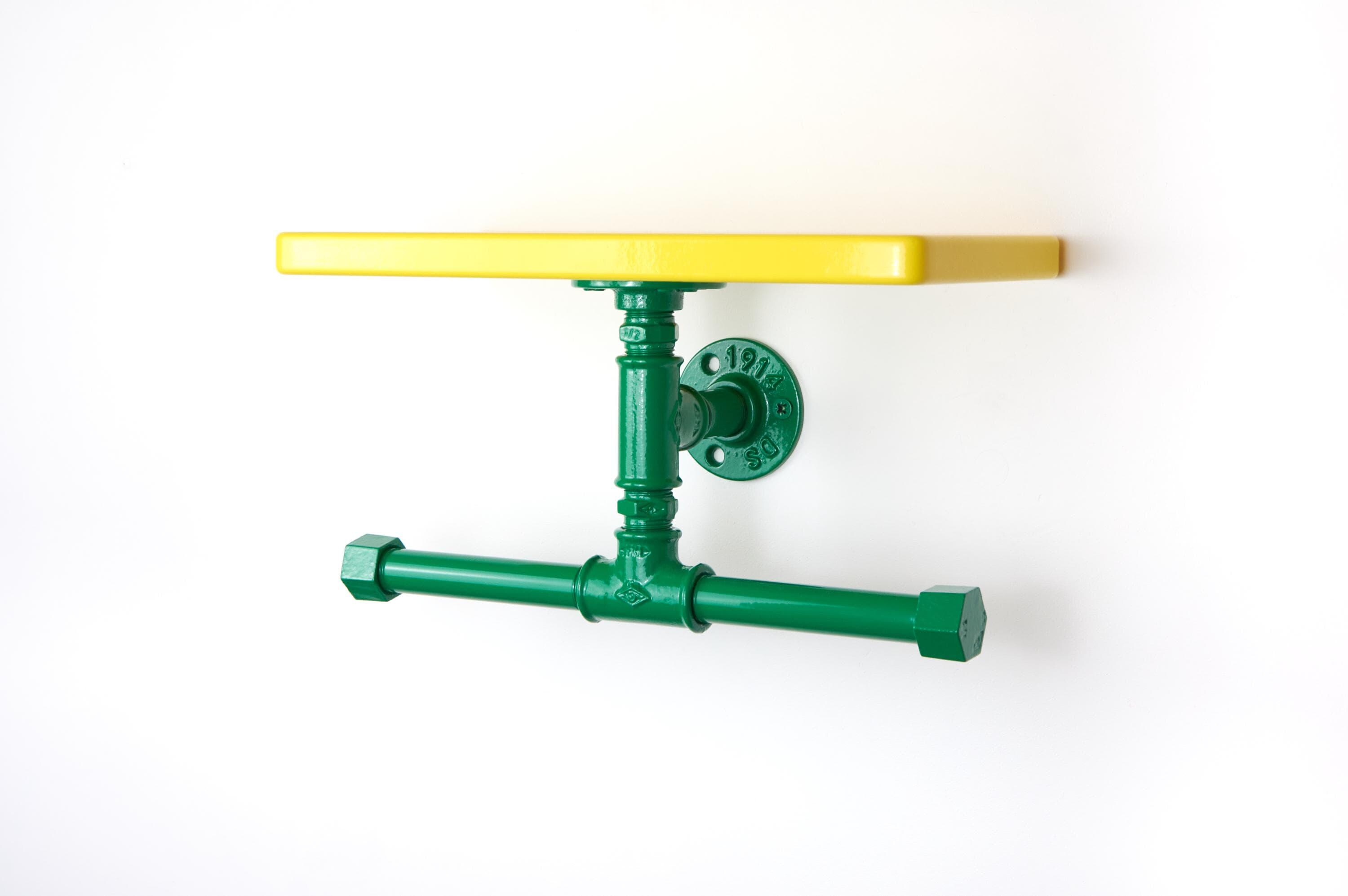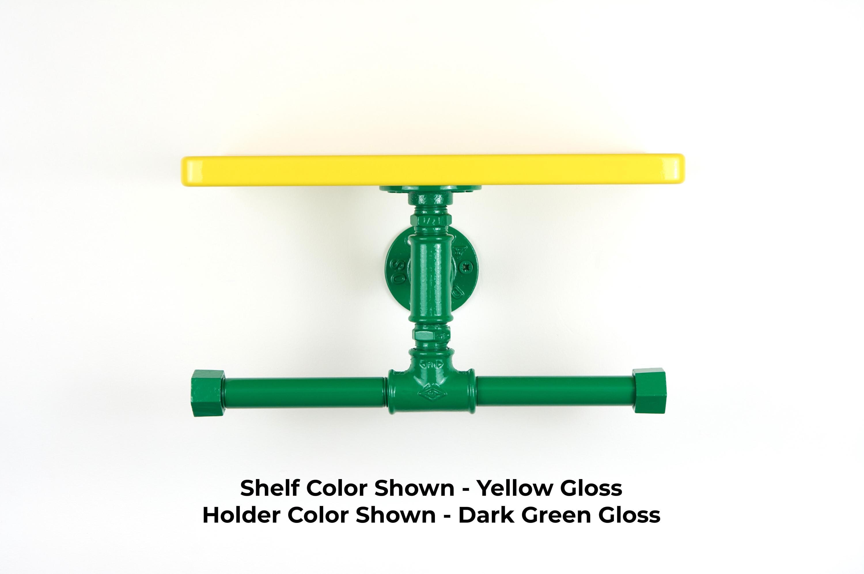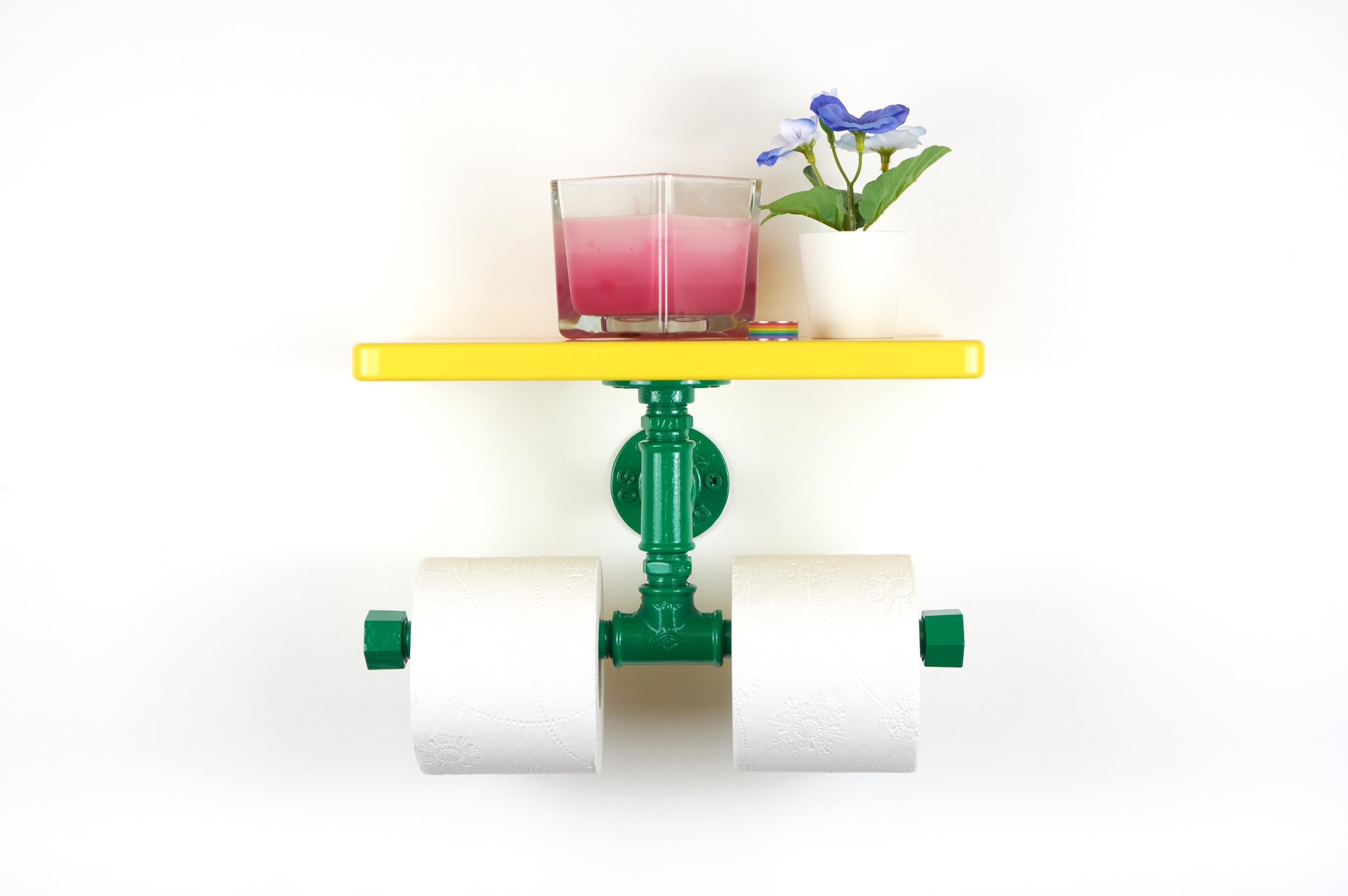 Brighten any space with this colorful double toilet paper holder with shelf - a vibrant bathroom organizer for convenience, available in more than 80 color variations!