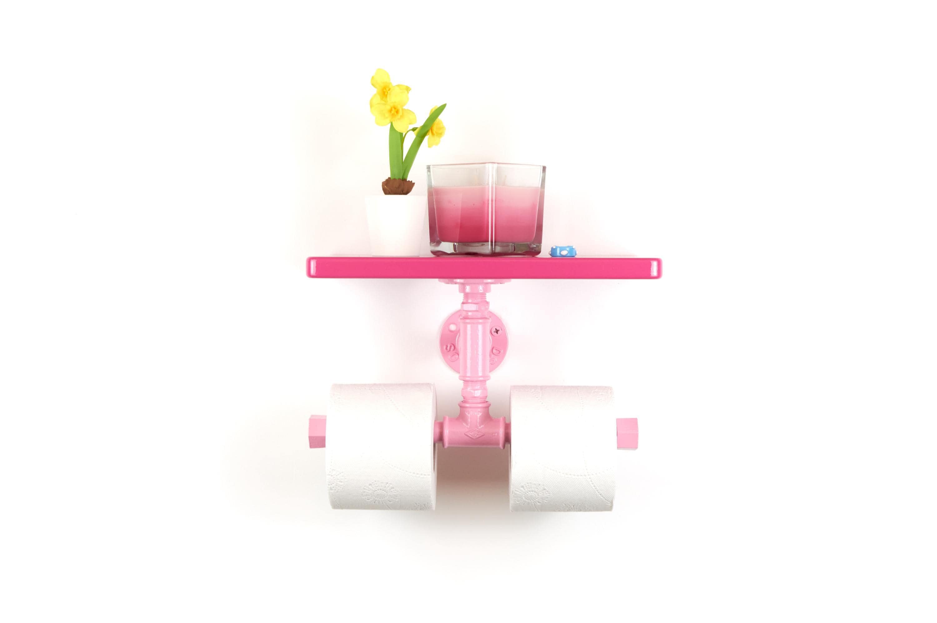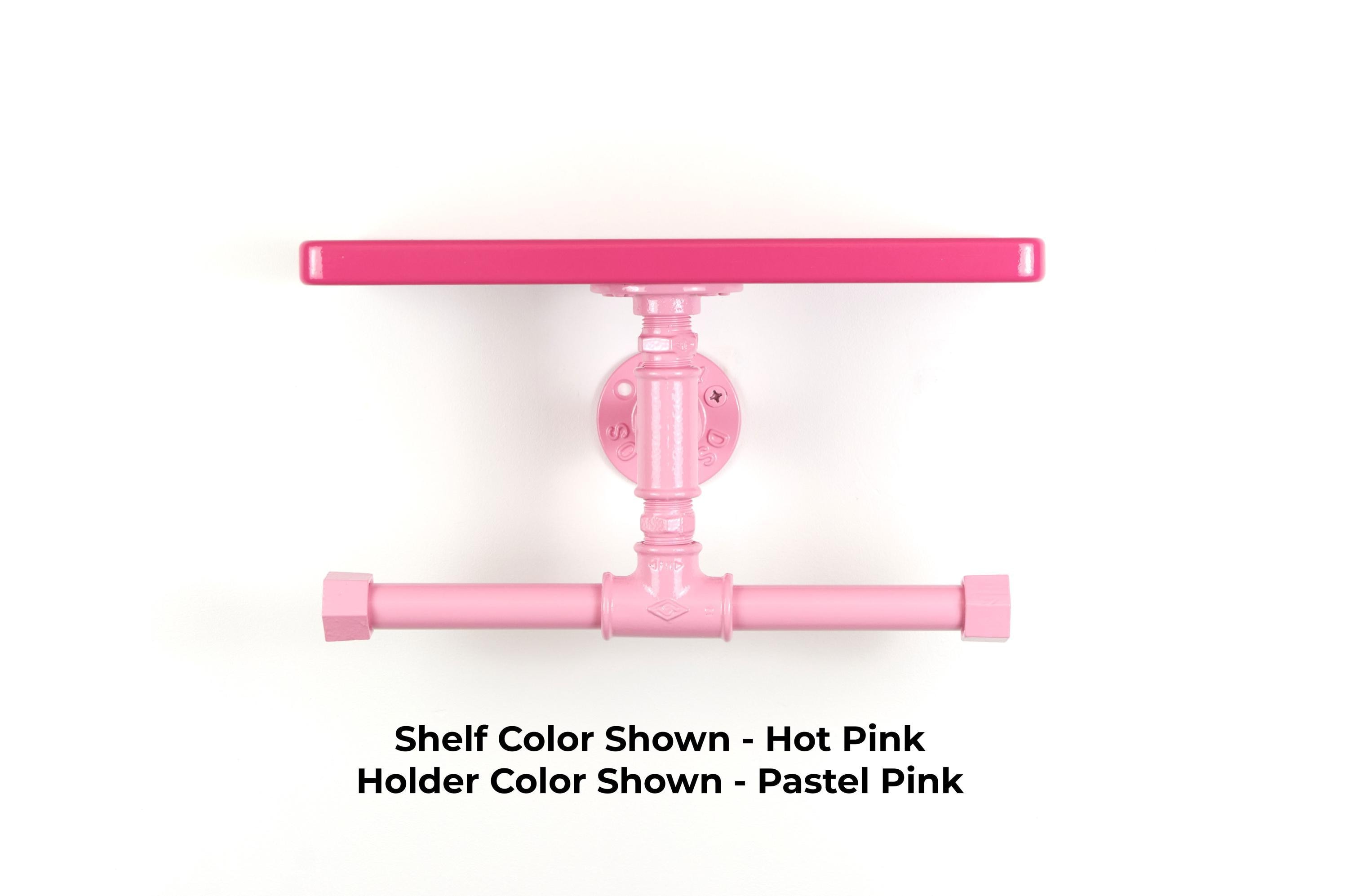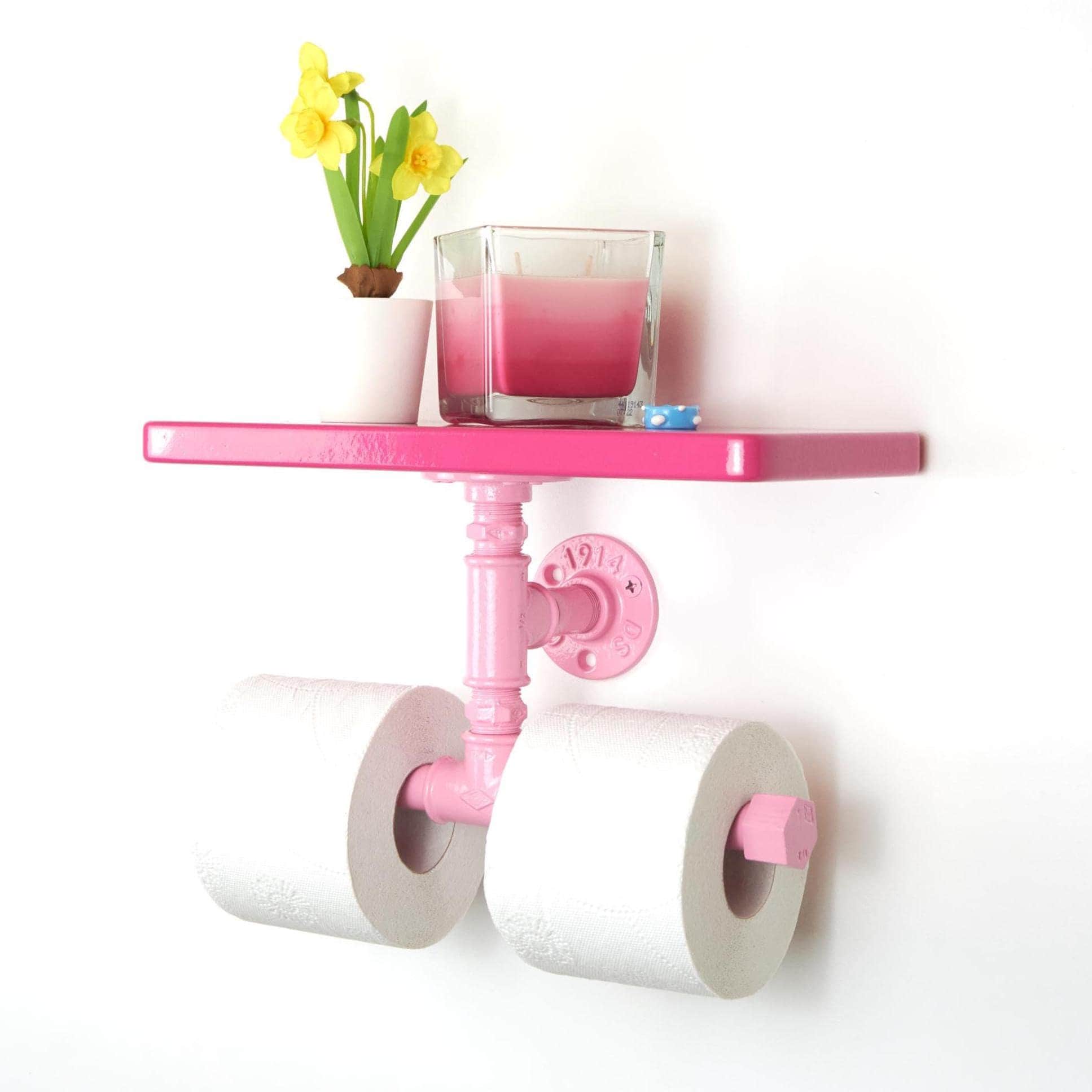 Add a pop of color and convenience to your bathroom with this colorful double toilet paper holder with shelf, designed for both style and function! Available in more than 80 color variations!