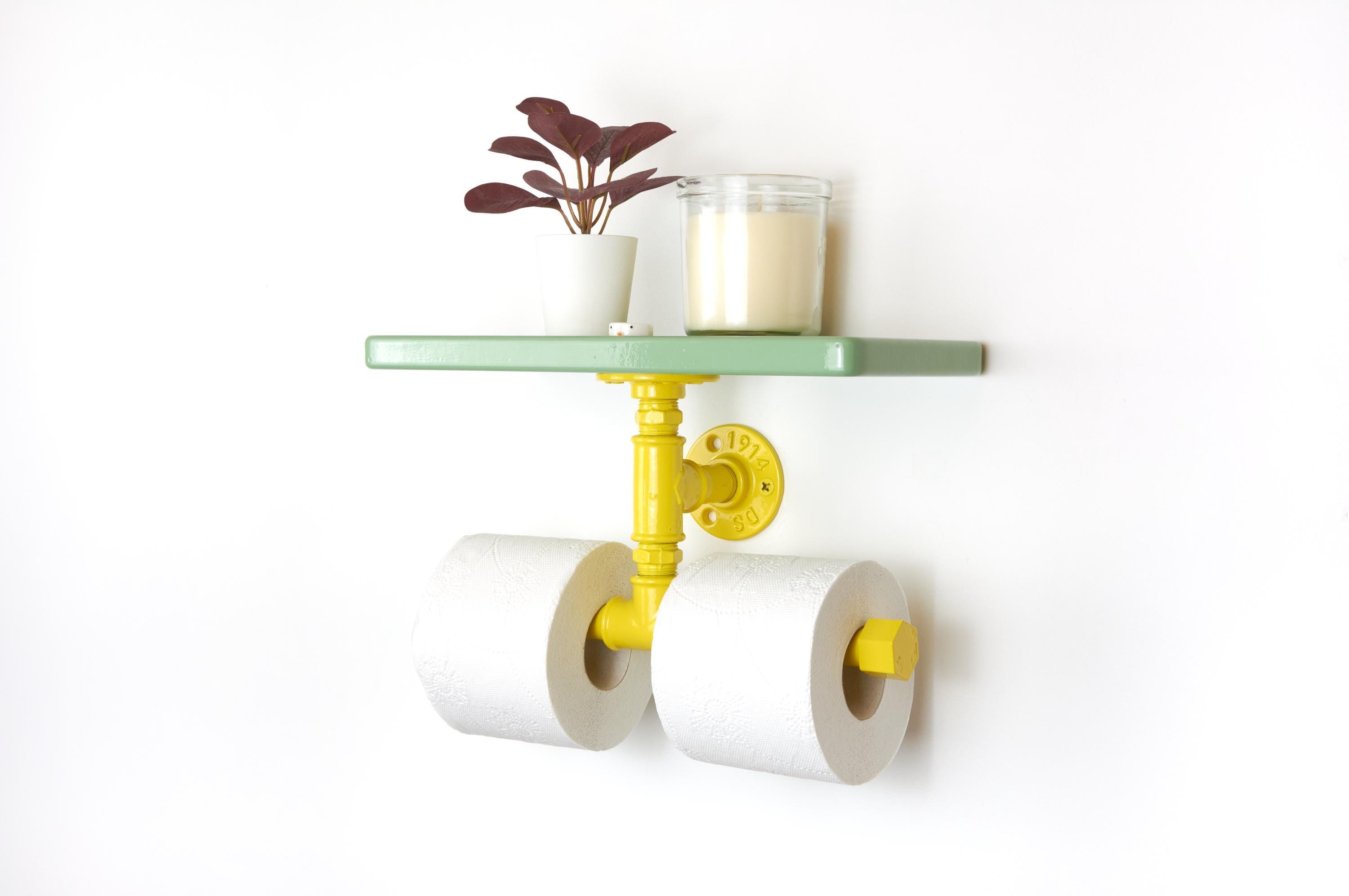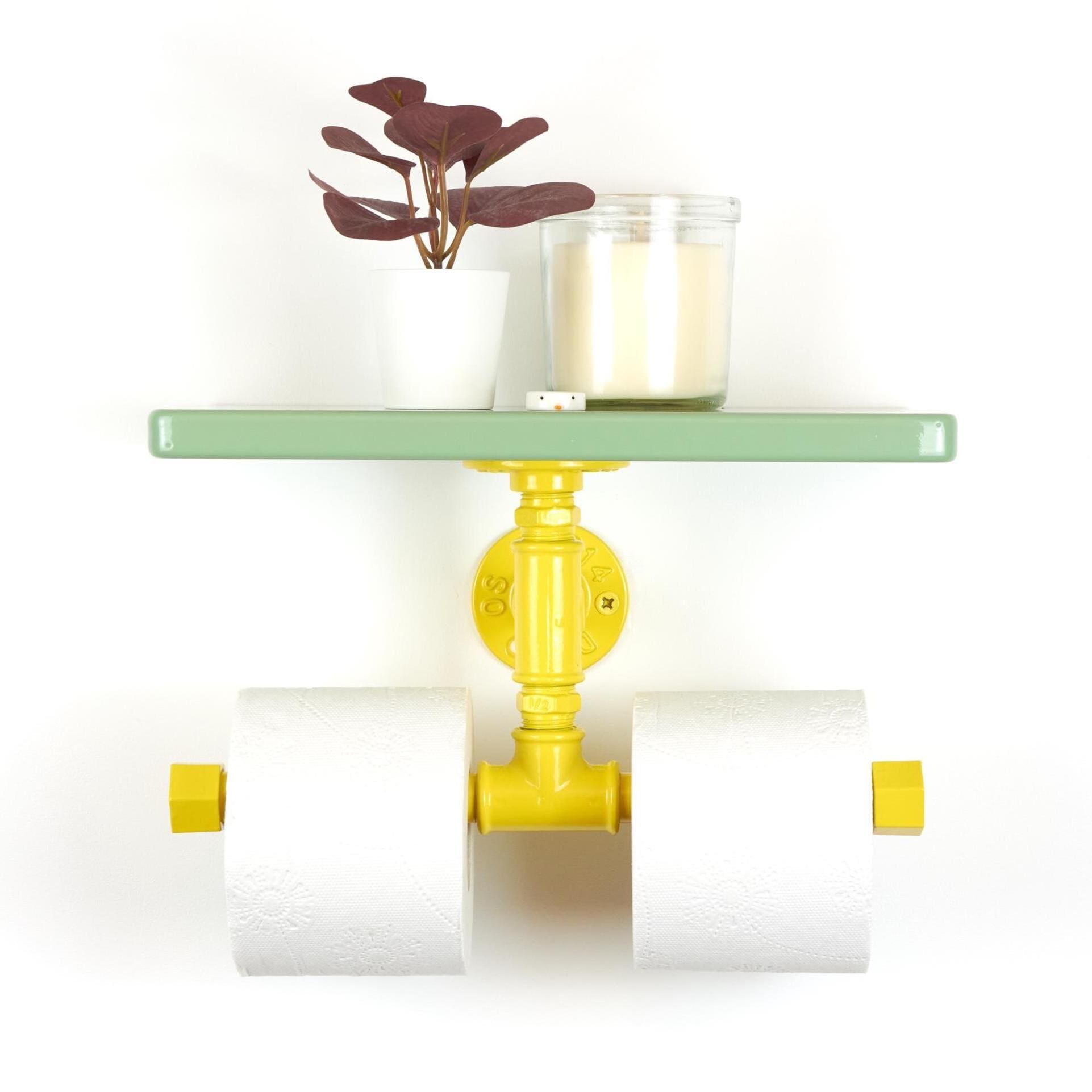 Bring style and function together with this double toilet paper holder with shelf, a colorful bathroom organizer that keeps essentials tidy while adding a cheerful touch to your home!