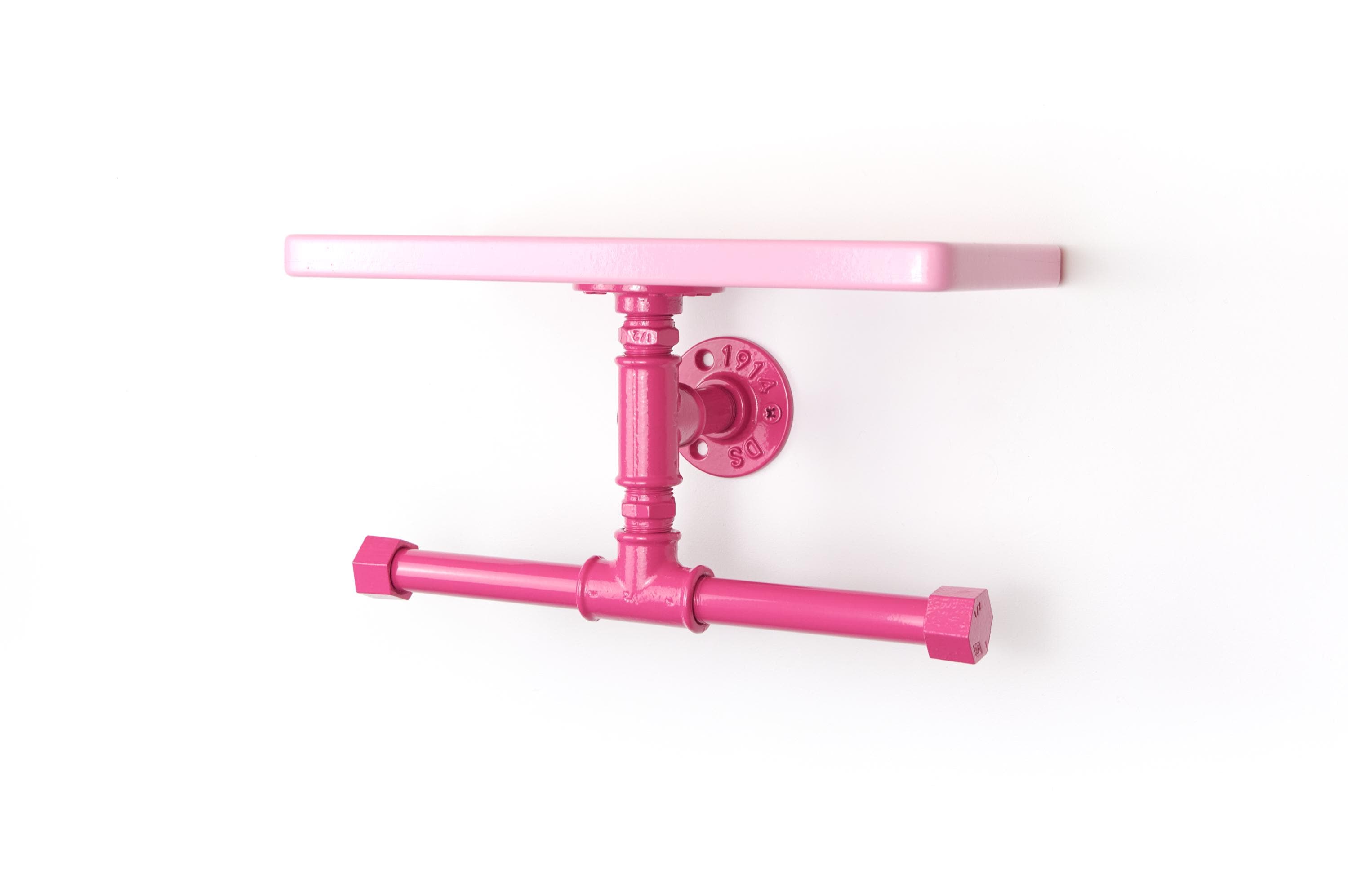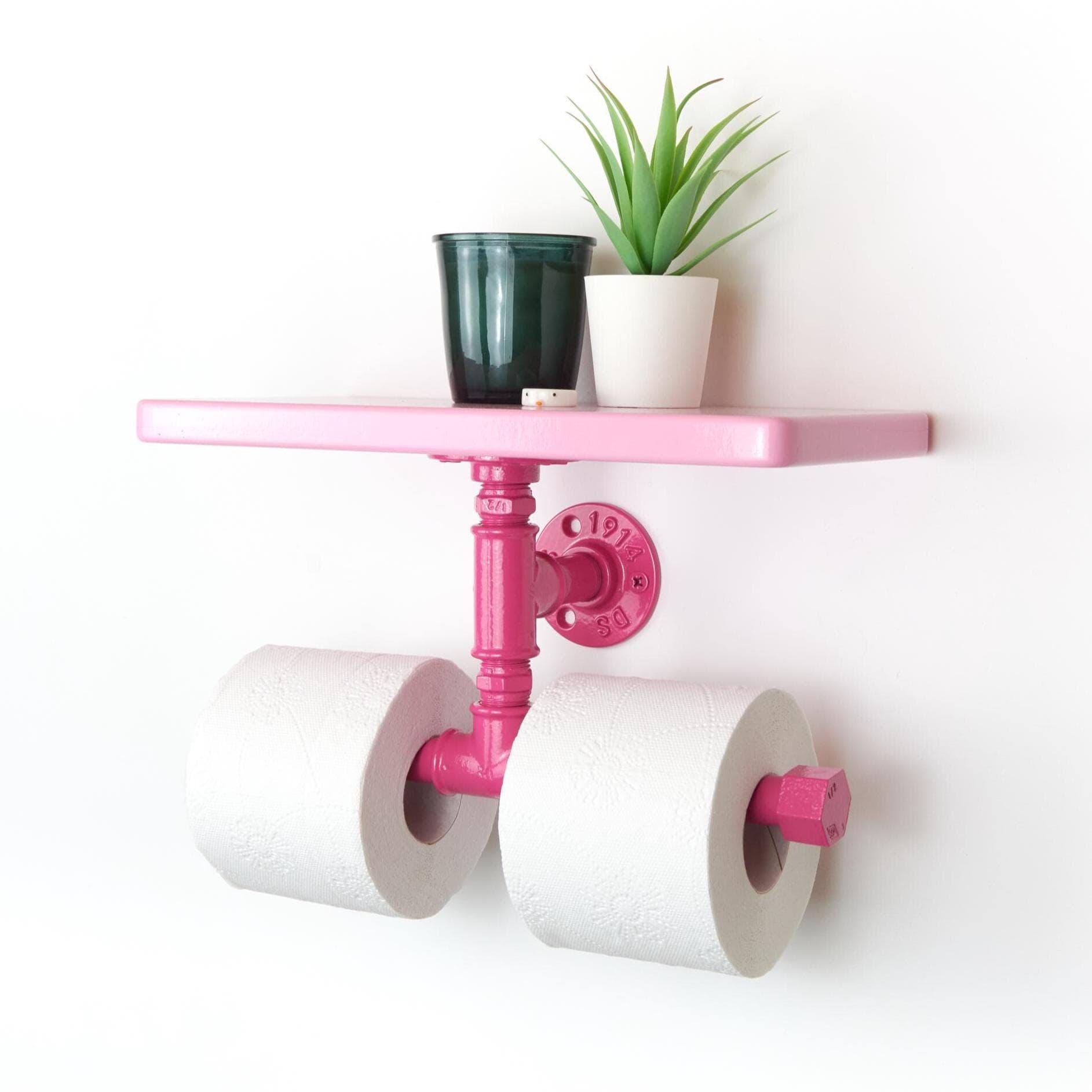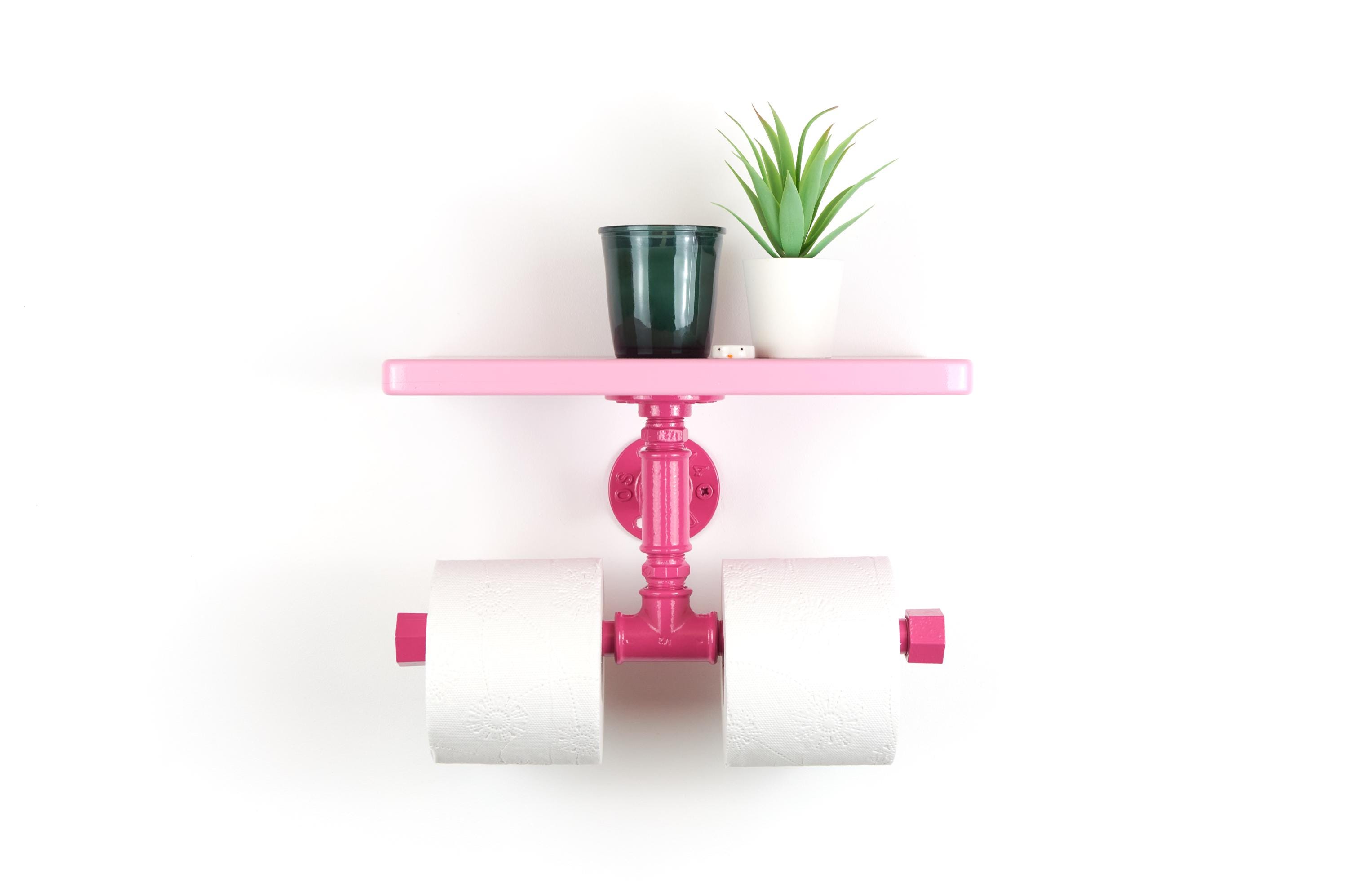 Brighten up your bathroom with this colorful double toilet paper holder with shelf, a modern storage solution that also makes a thoughtful home decor gift for housewarmings!