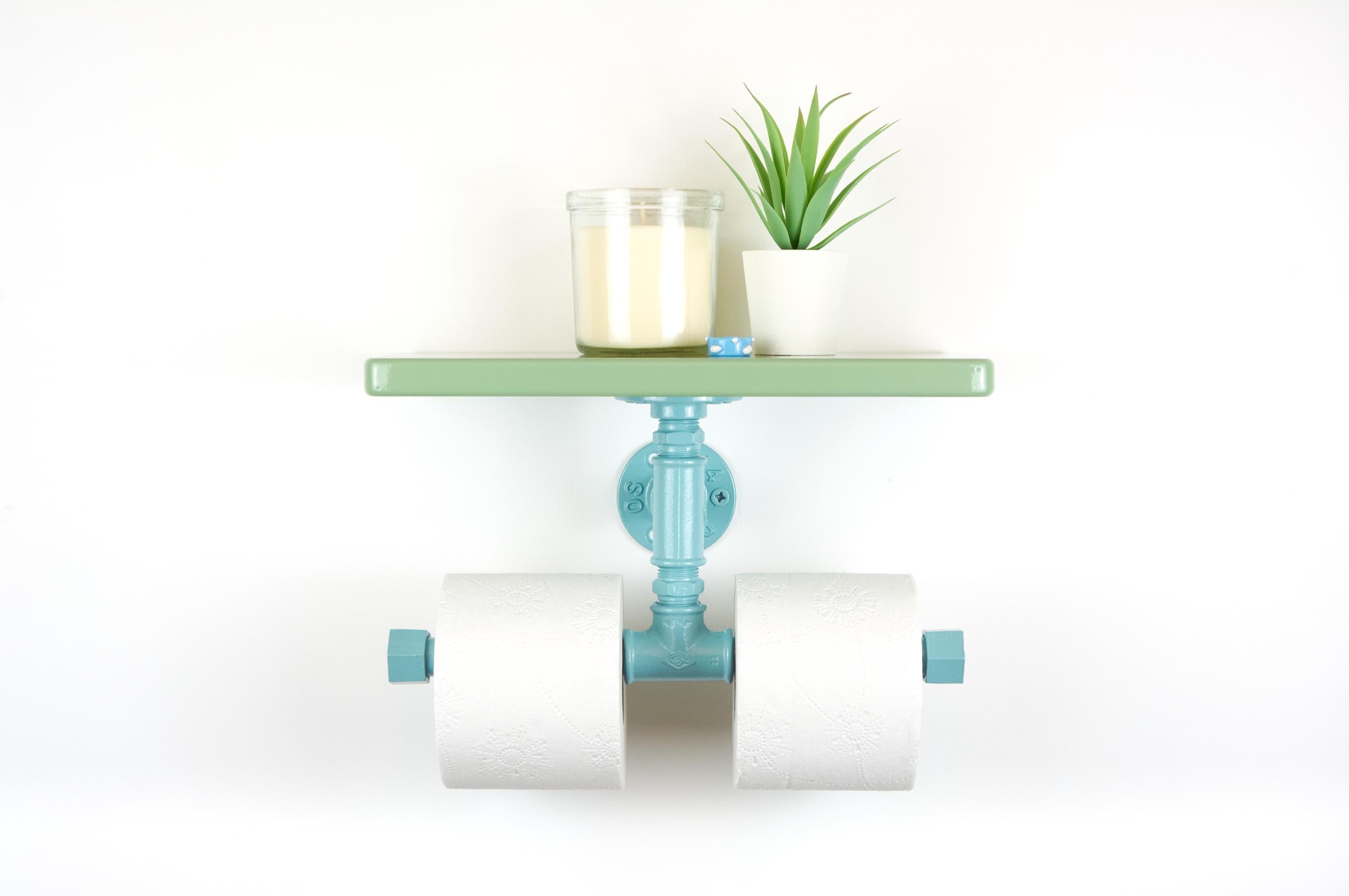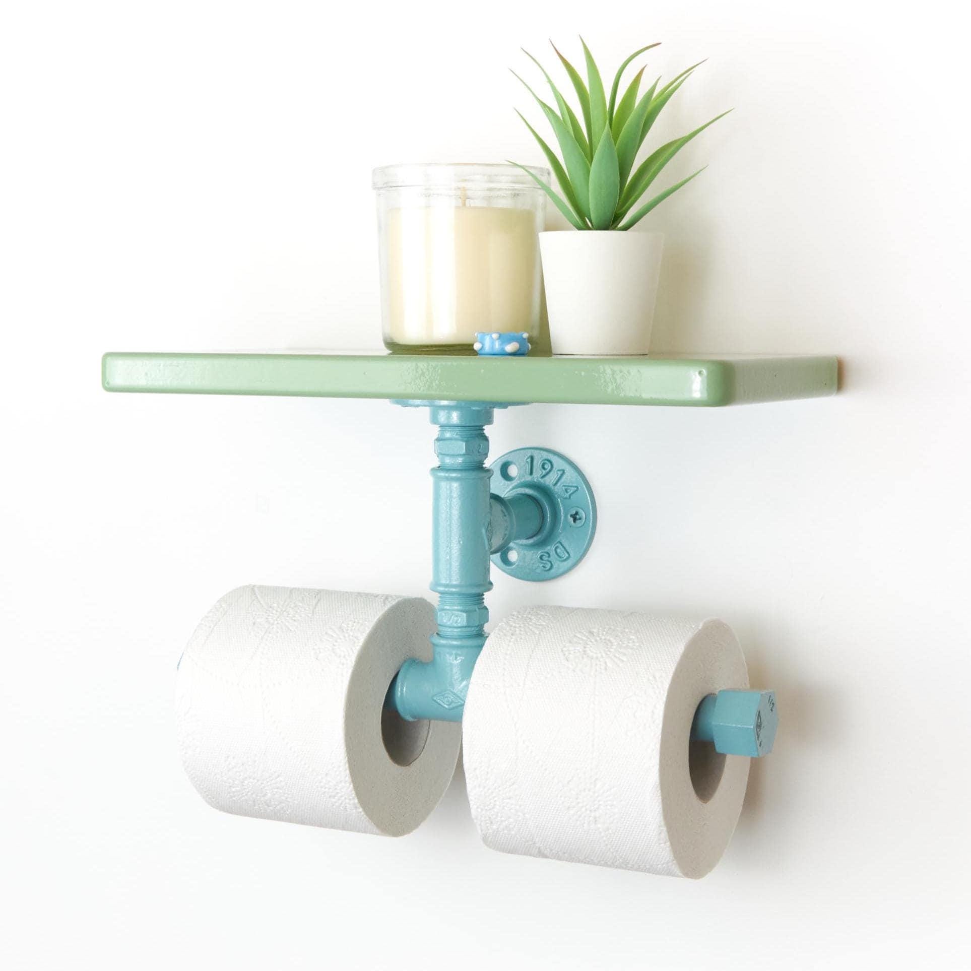 Brighten up your bathroom with this colorful double toilet paper holder with shelf, a stylish and convenient storage solution that makes a great gift for homeowners!