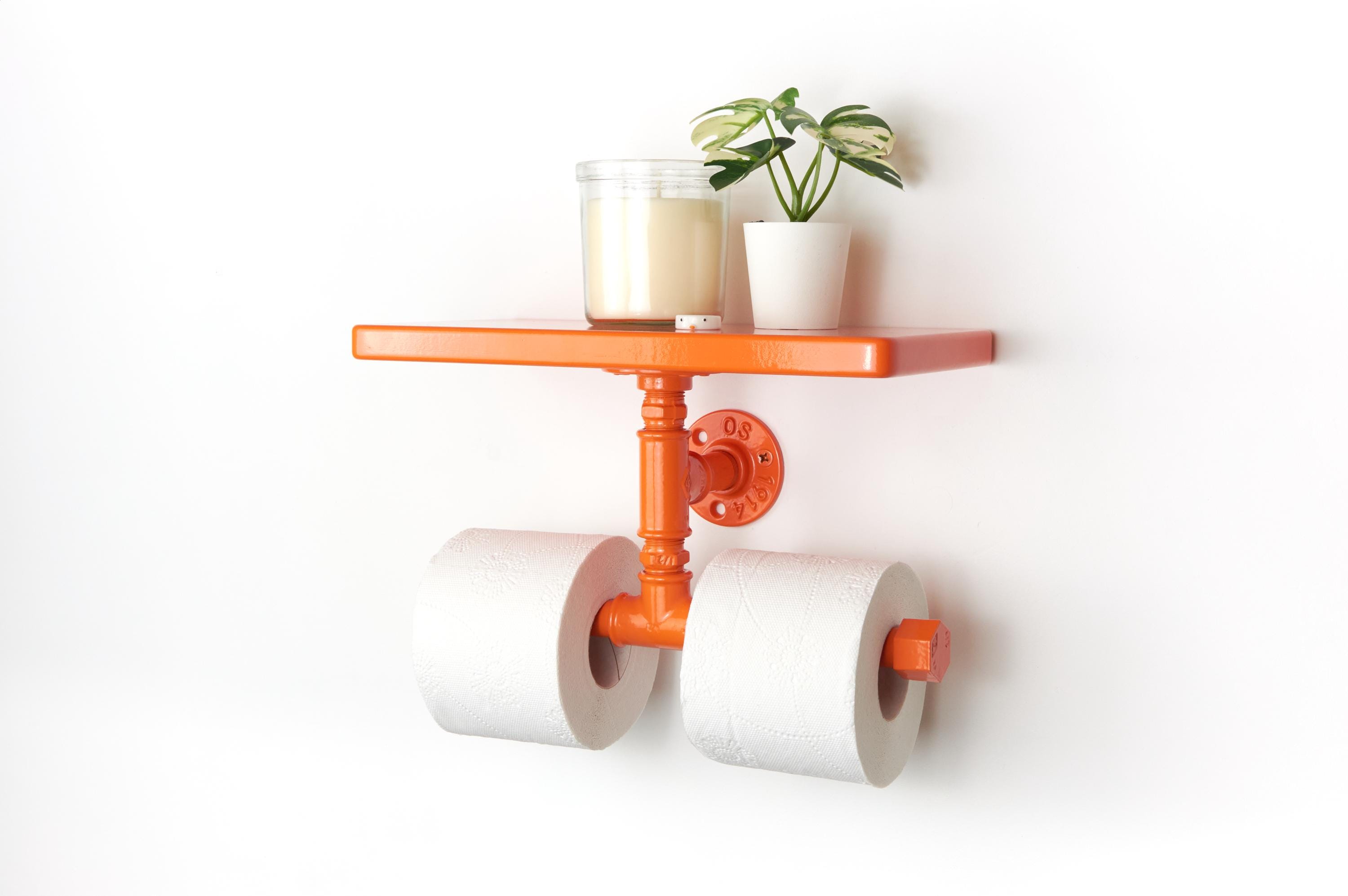 Double Toilet Paper Holder with Shelf - Colorful Bathroom Accessory for Convenient Storage, Color Pictured – Orange Gloss