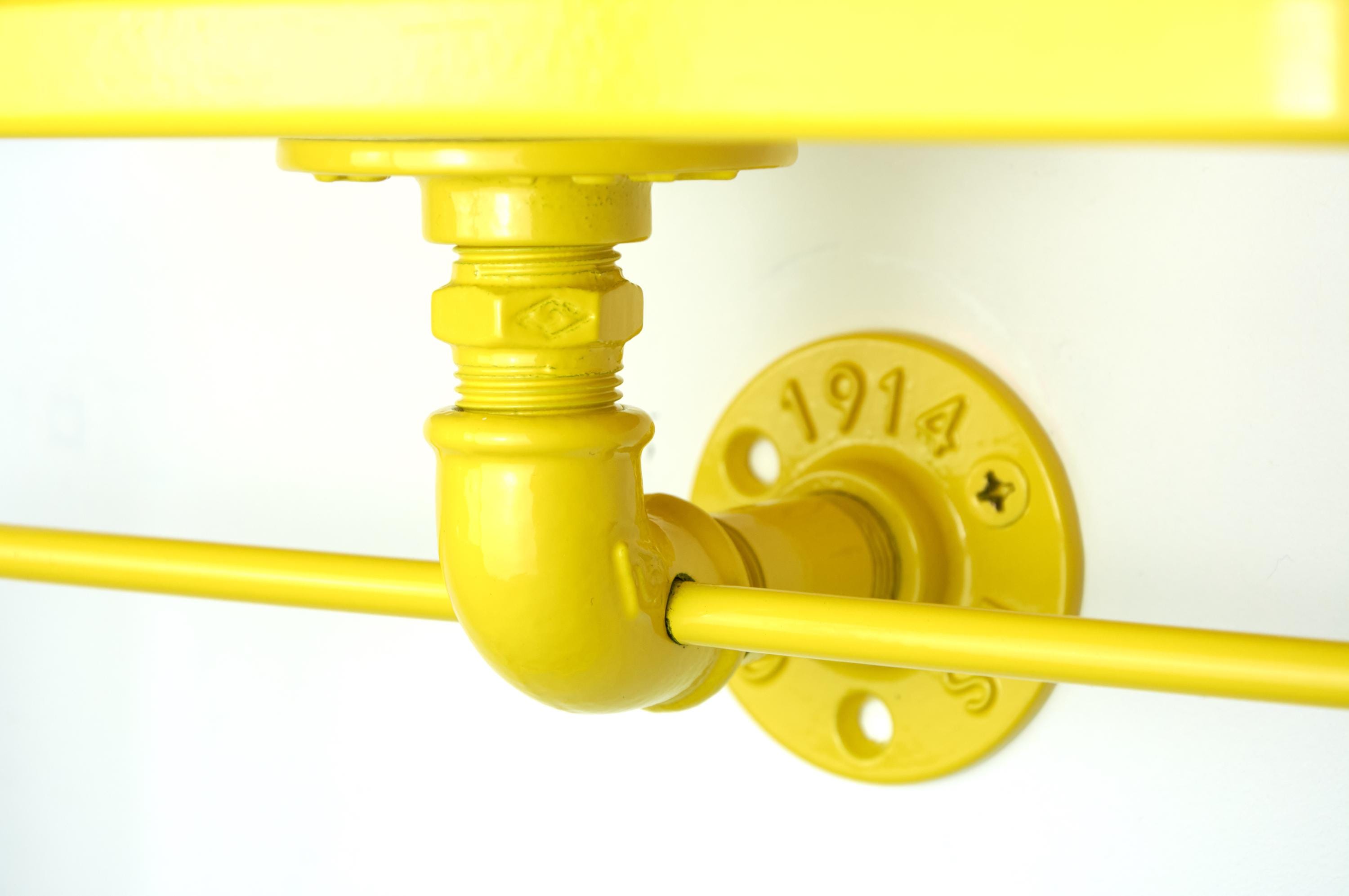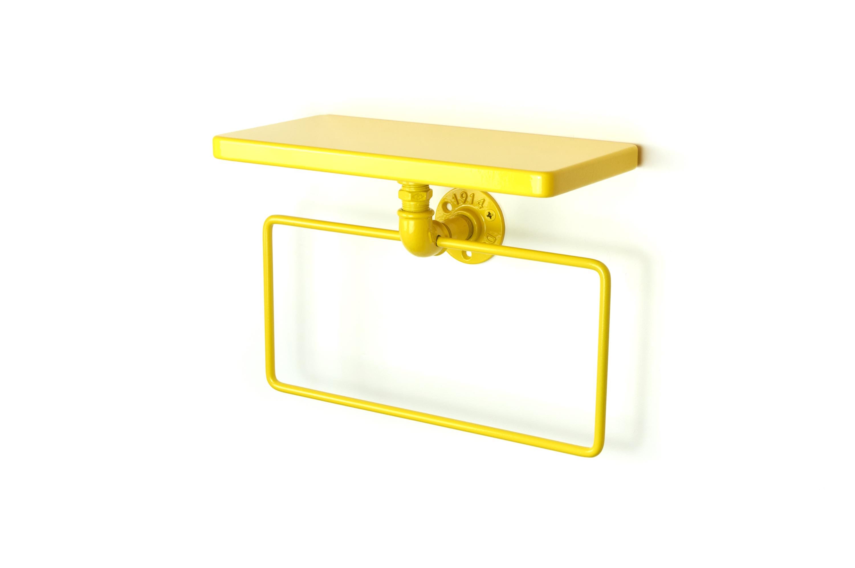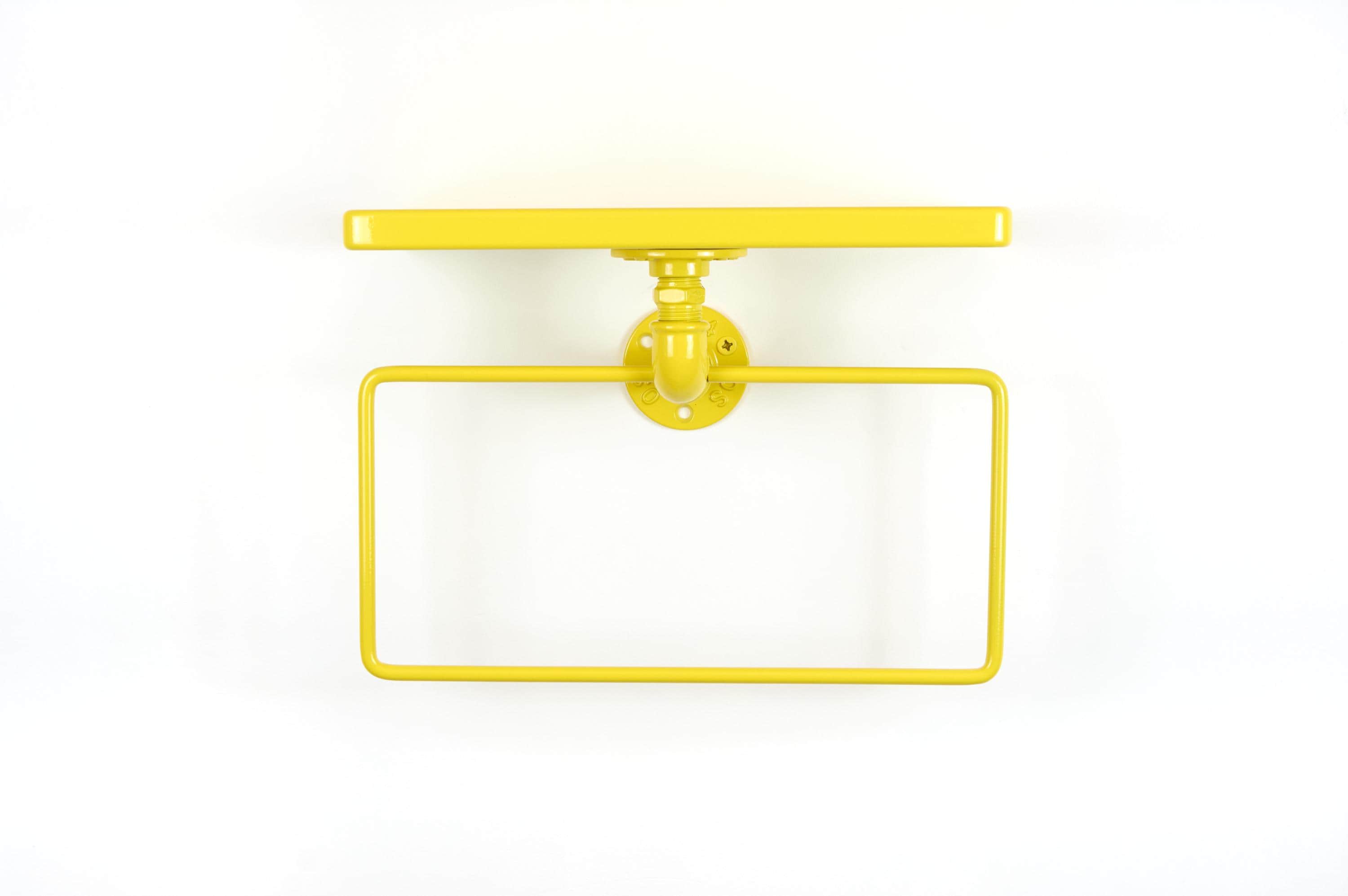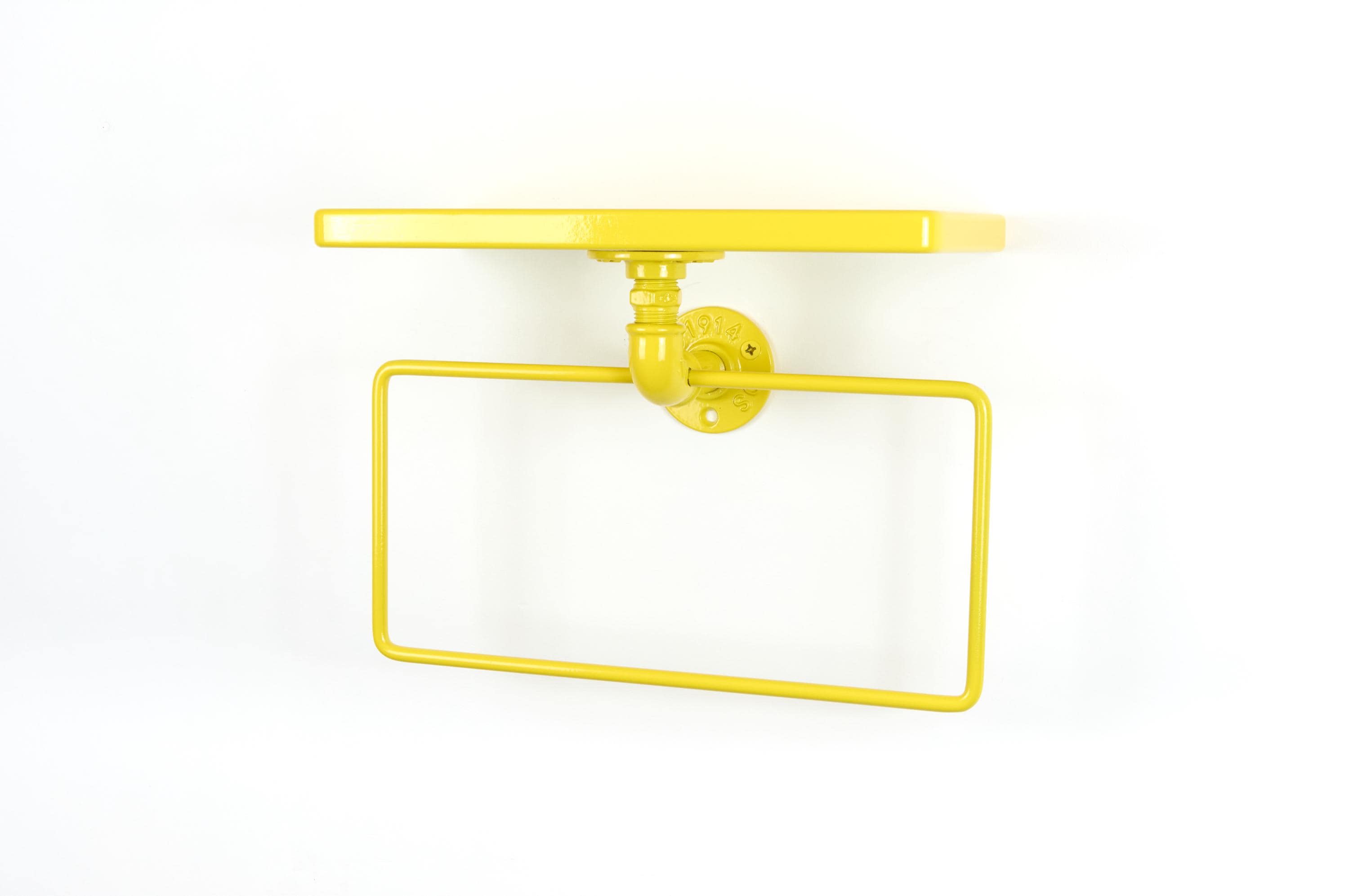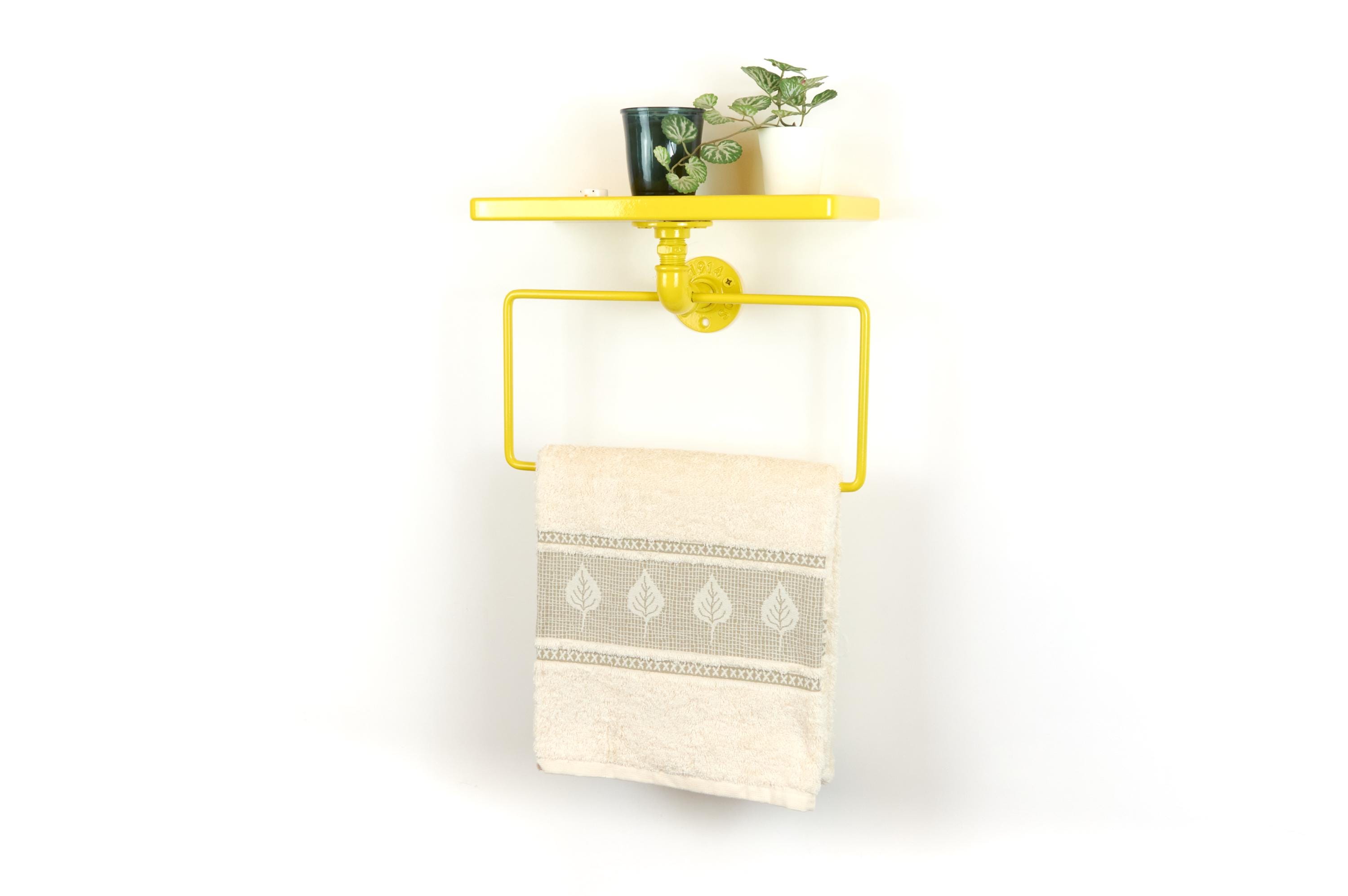 Add a pop of color to your bathroom with this vibrant towel holder with shelf, designed to keep your space stylish and organized! Color shown in pictures - Yellow Gloss.
