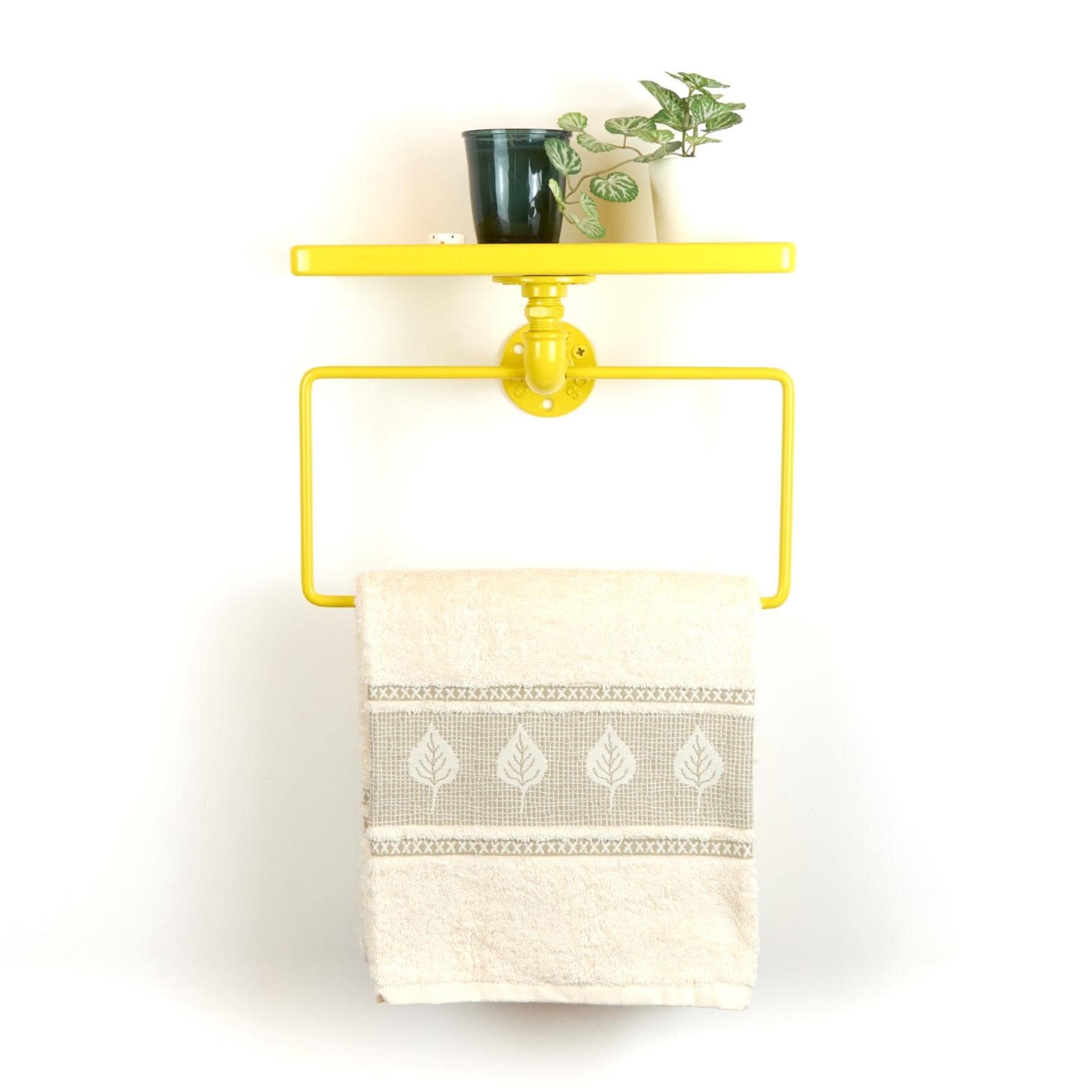 Vibrant Towel Holder with Shelf – Colorful Bathroom Organizer for Towels and Essentials, Stylish Home Decor, Color Pictured - Yellow Gloss