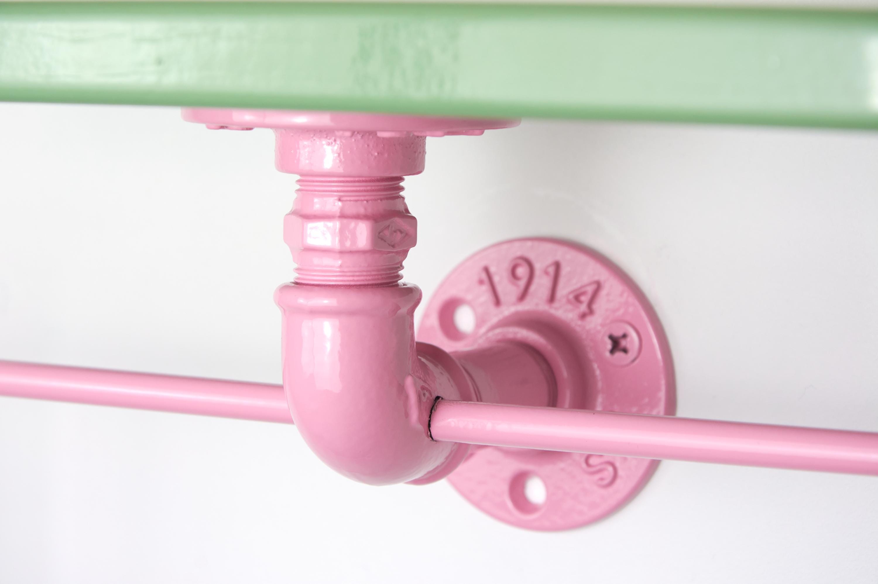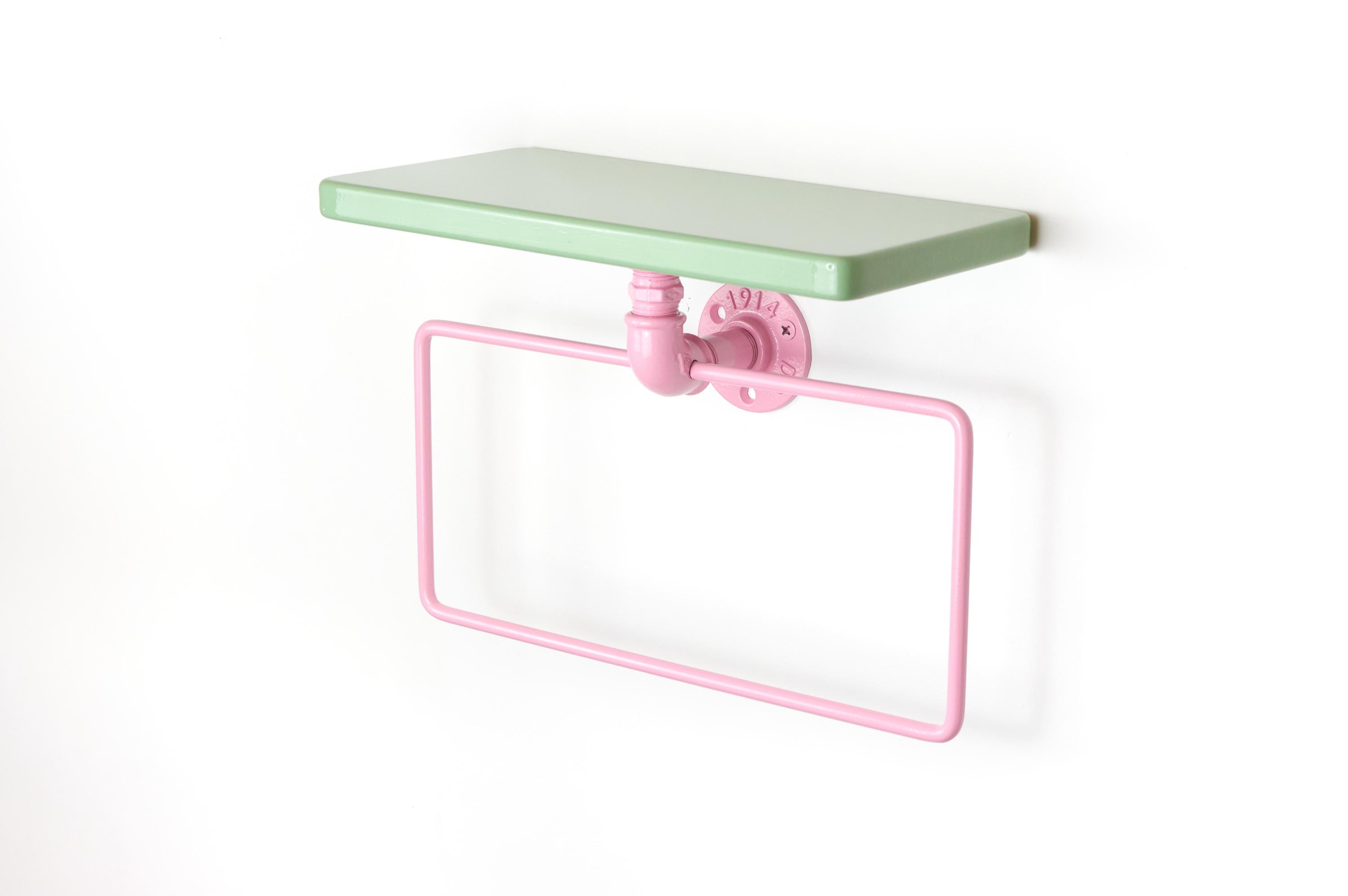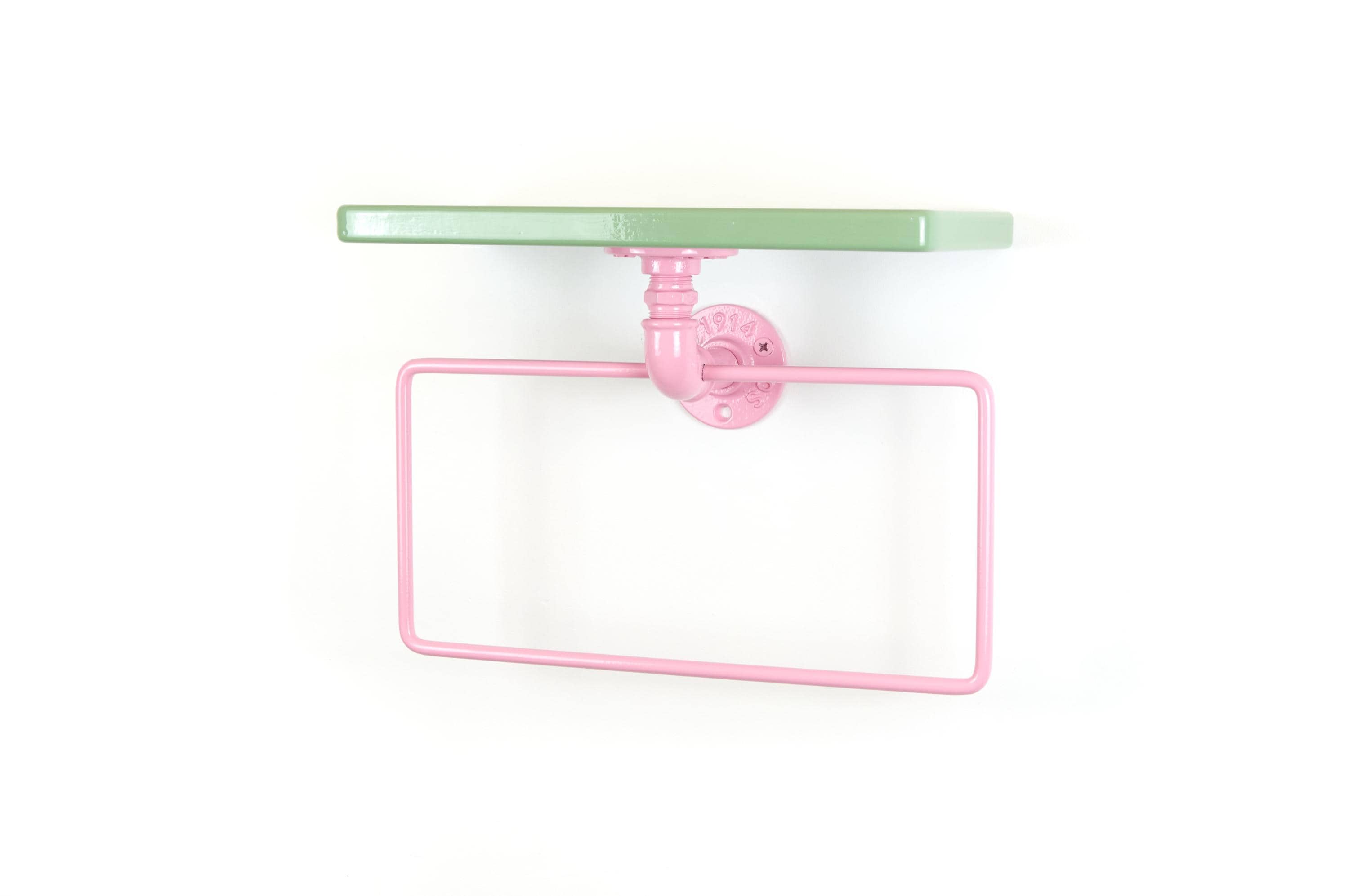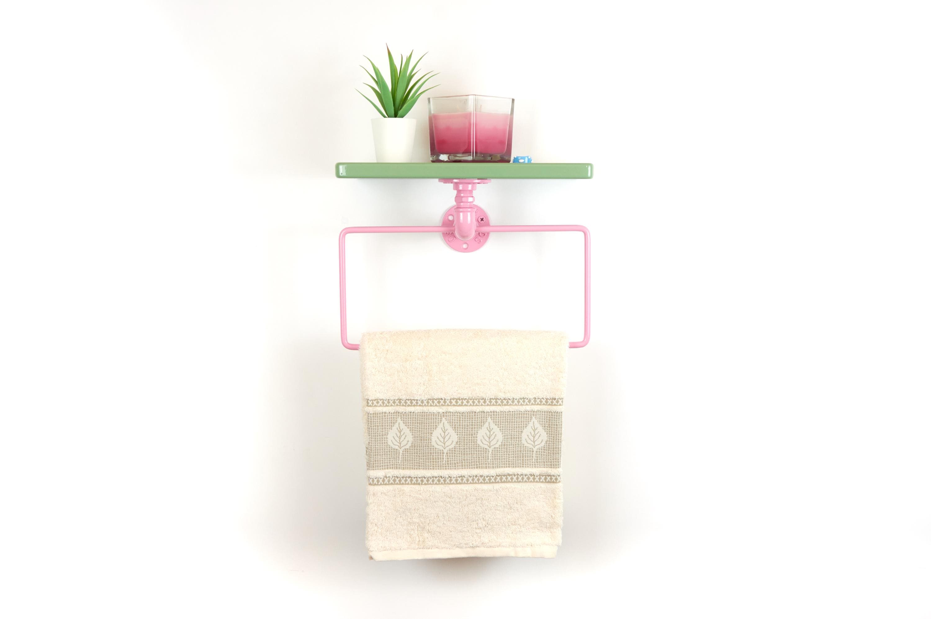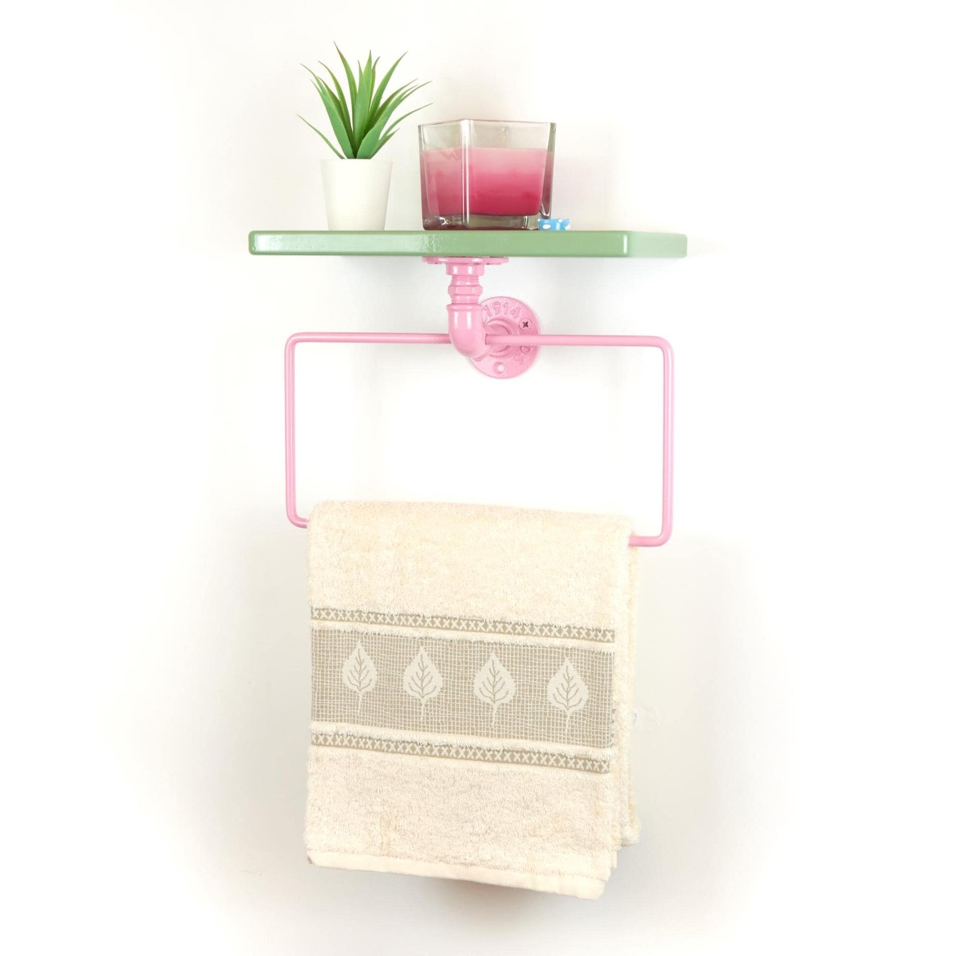 Brighten your bathroom with a pastel towel hanger with shelf, a charming and practical solution for keeping towels and essentials neatly organized!