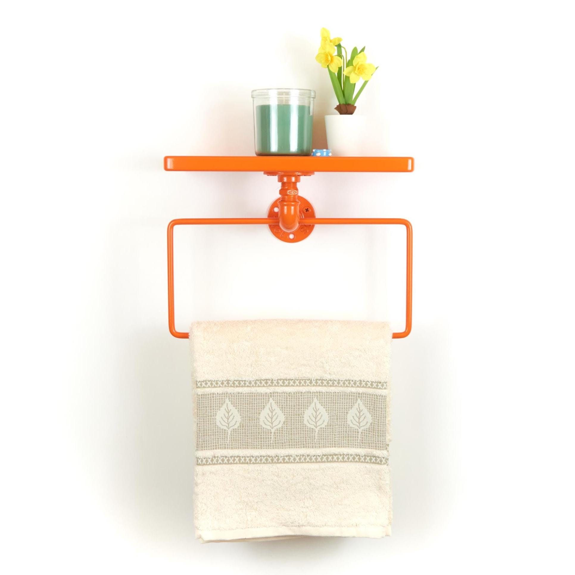 Minimalist Towel Holder with Shelf – Modern Bathroom Organizer for Towels & Essentials, Stylish Home Decor, Color Pictured - Orange Gloss