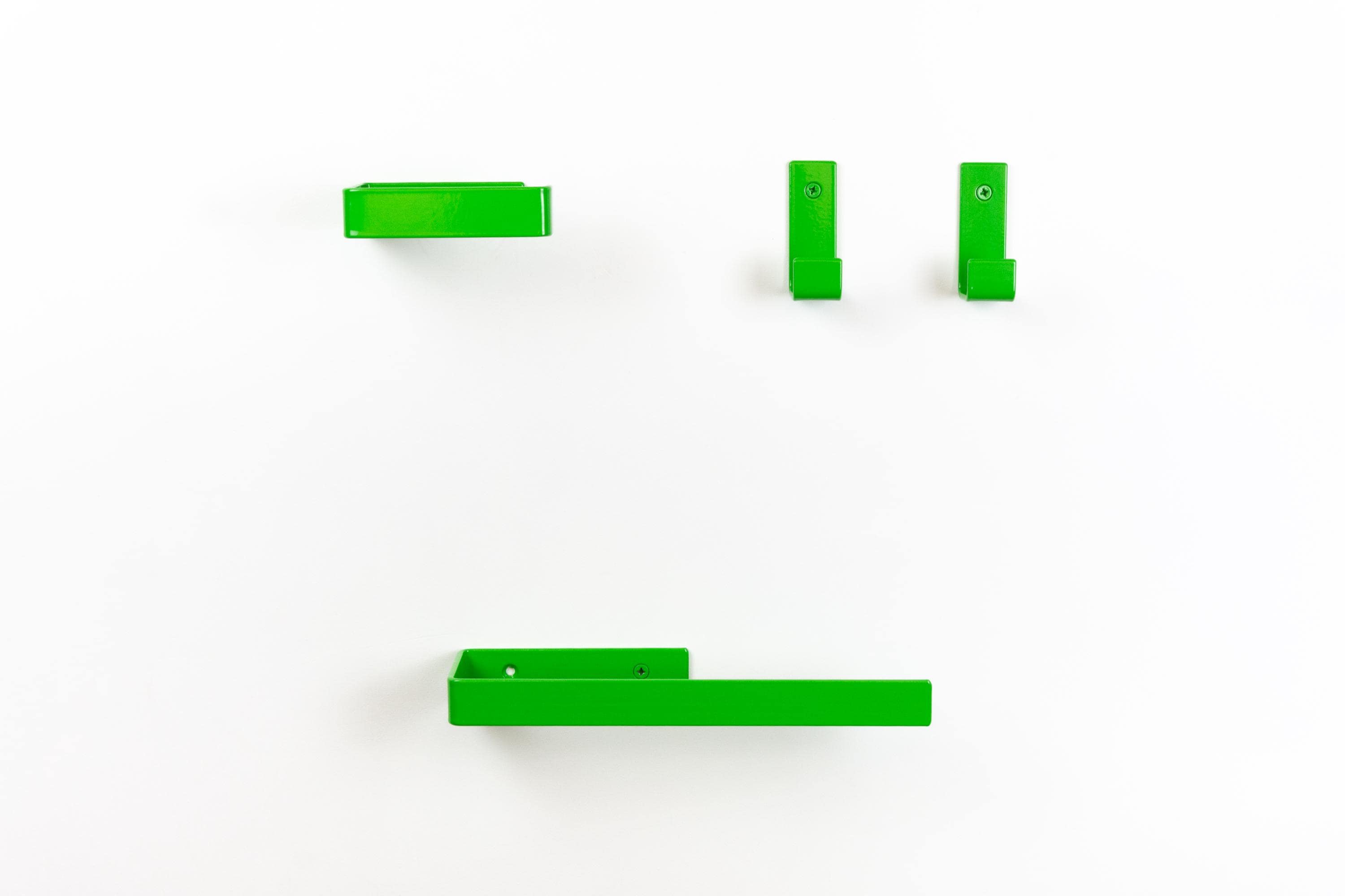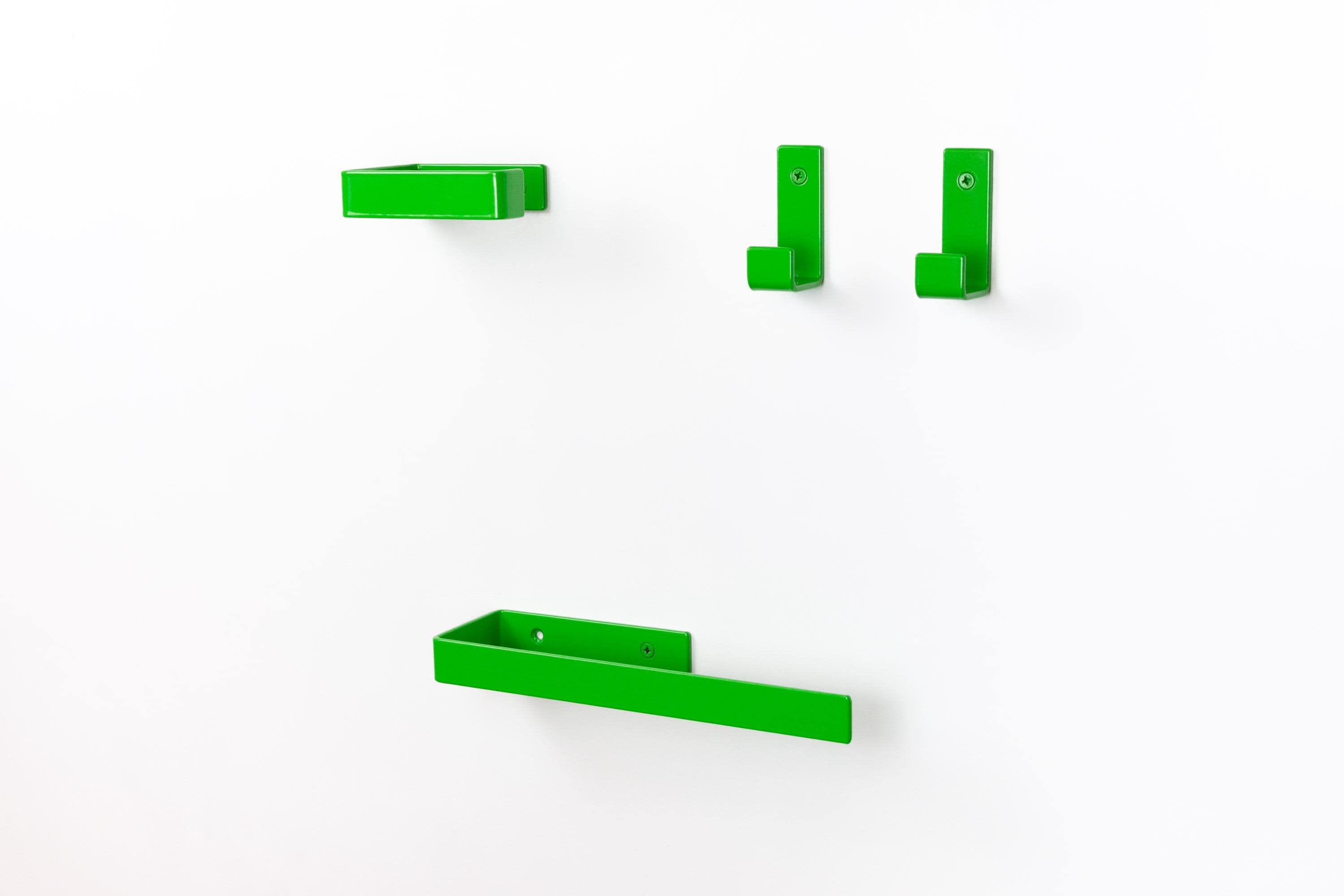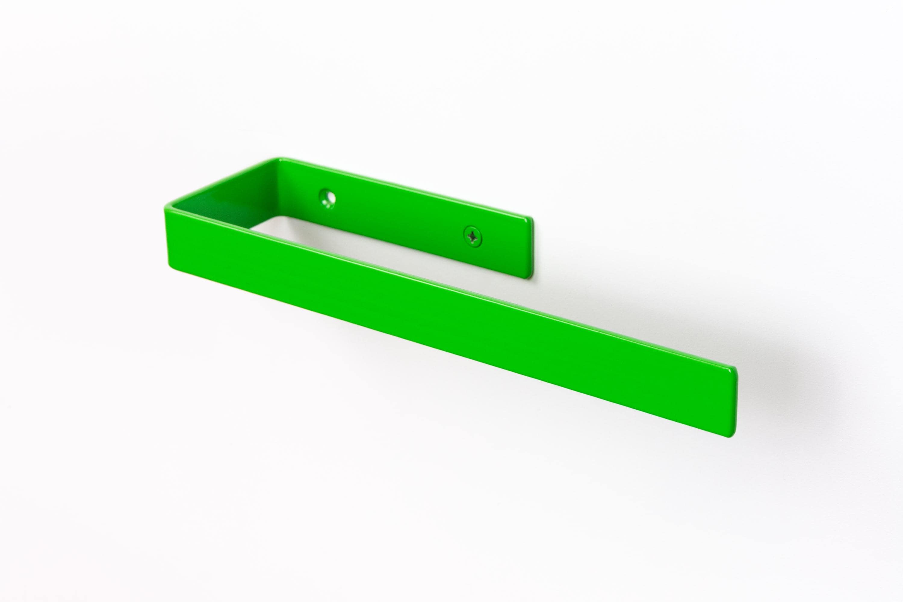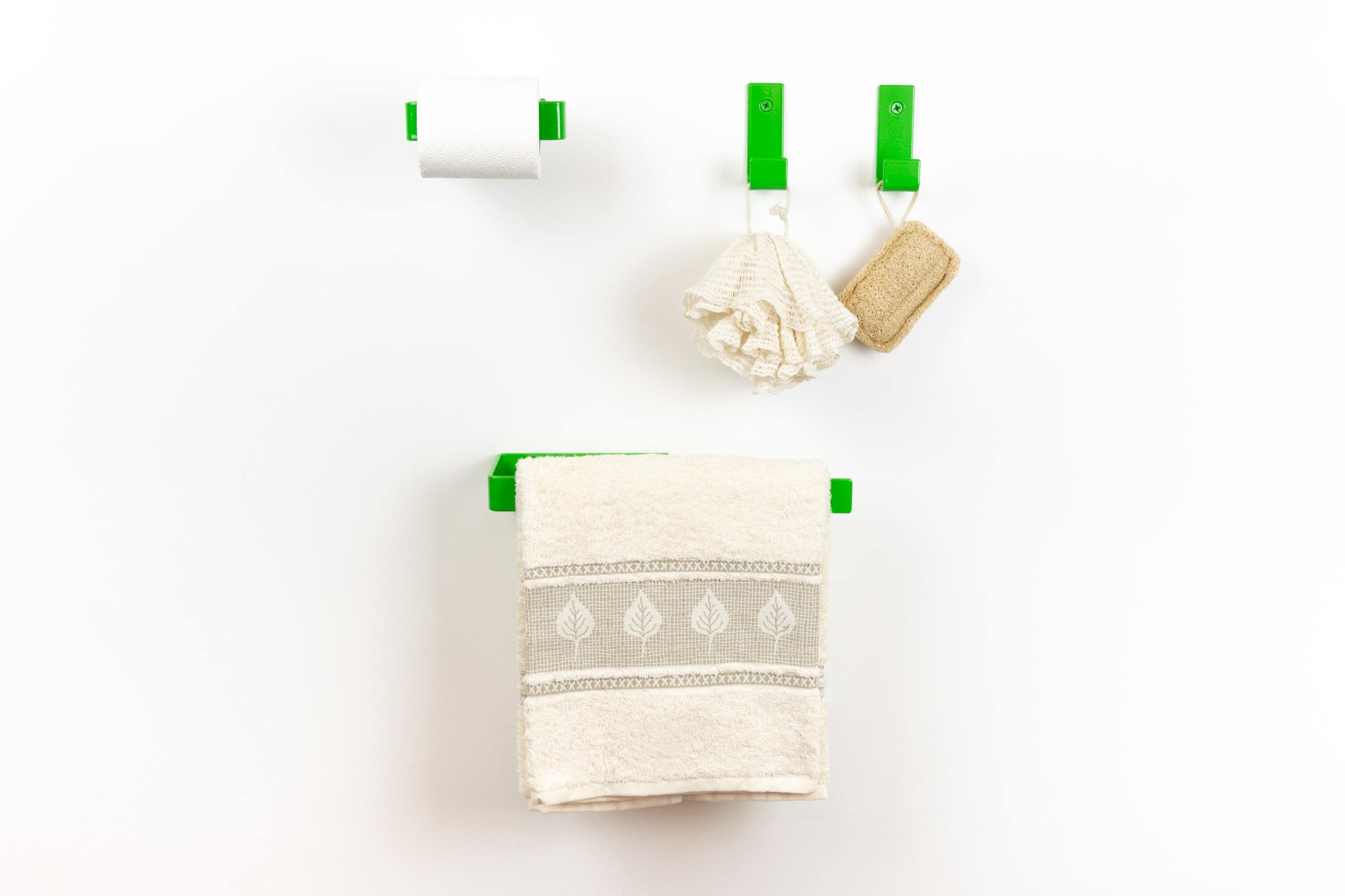 Elevate your space with vibrant bathroom accessories: a toilet paper holder, towel hanger or hook. Create your own bathroom set by mix and matching the available style, colors and size options to fit your unique vision! Color of the items shown in the pictures is Green Gloss.