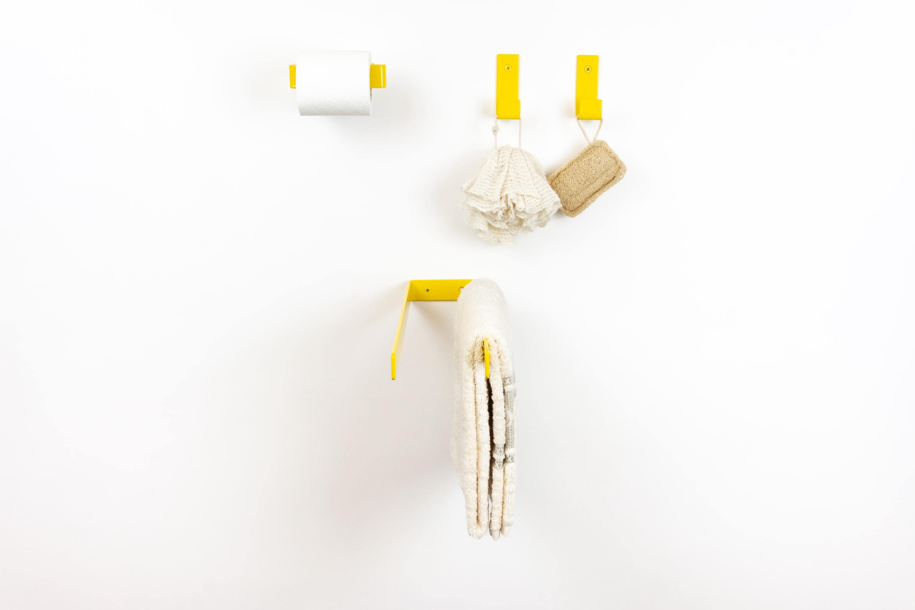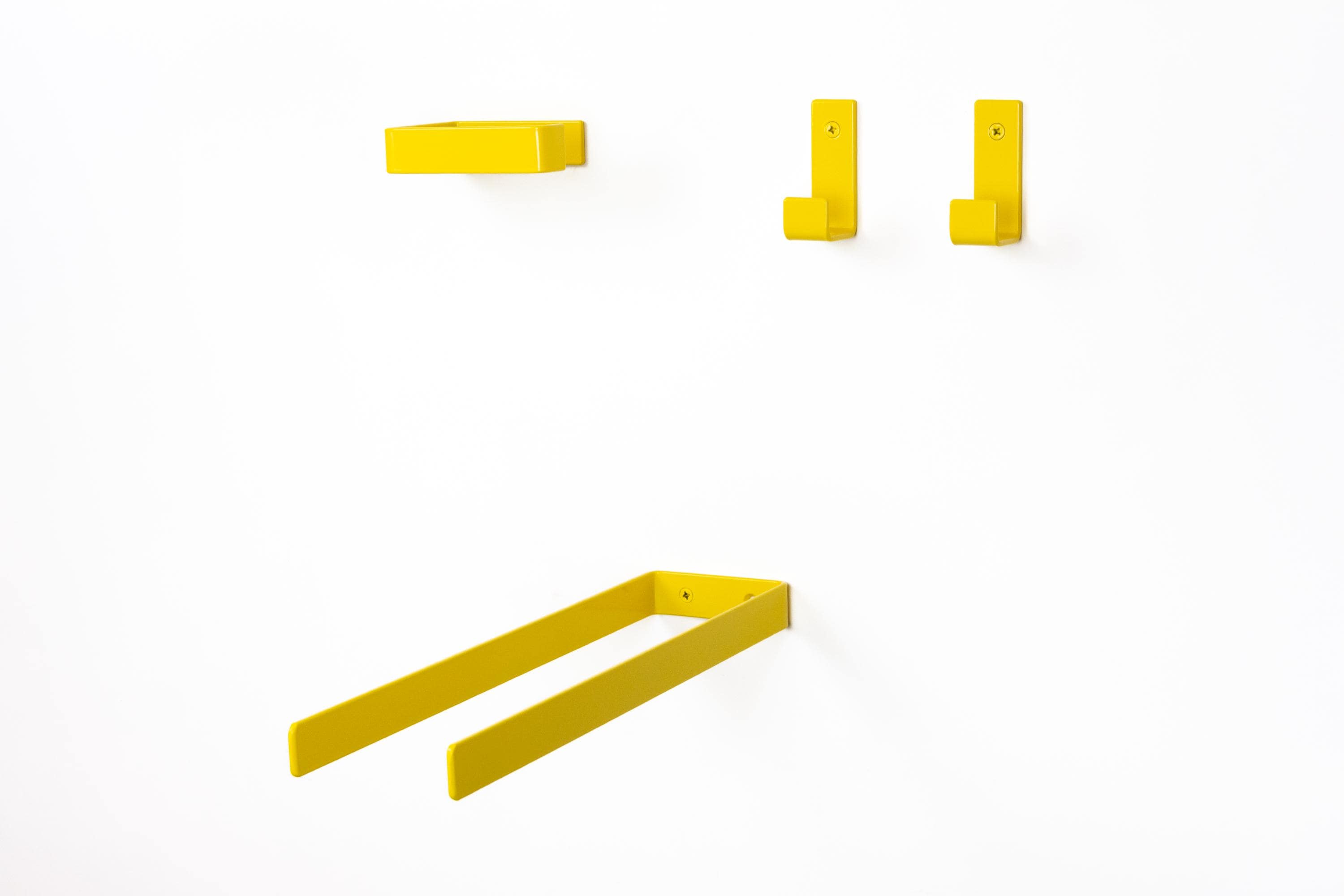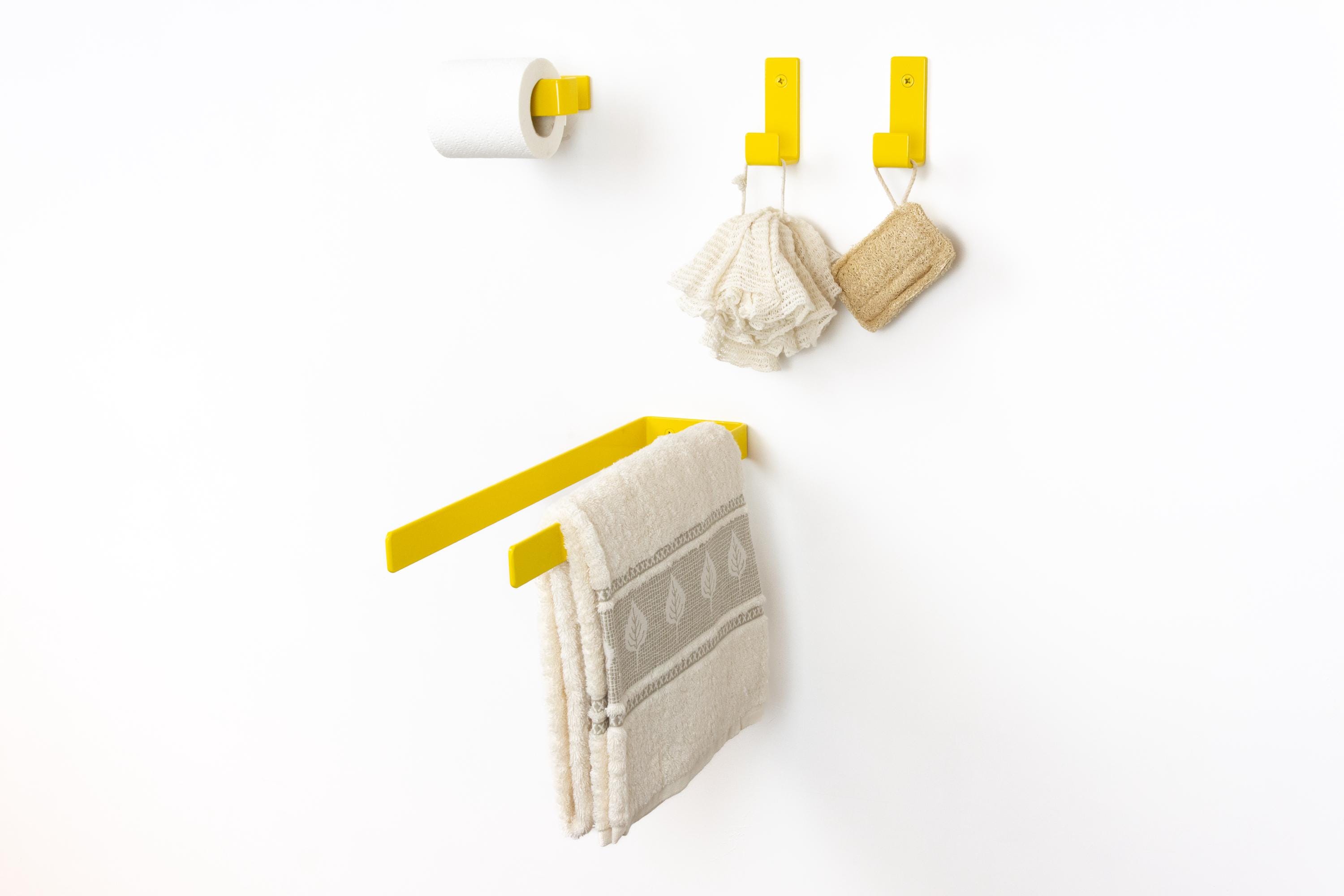 It is time to build your own bright bath set using our custom toilet paper holder, towel holder or hook. Our mix & match pop of color decor allows you to curate a space that is as bold and unique as you are! Color of the items shown in the pictures is Yellow Gloss.