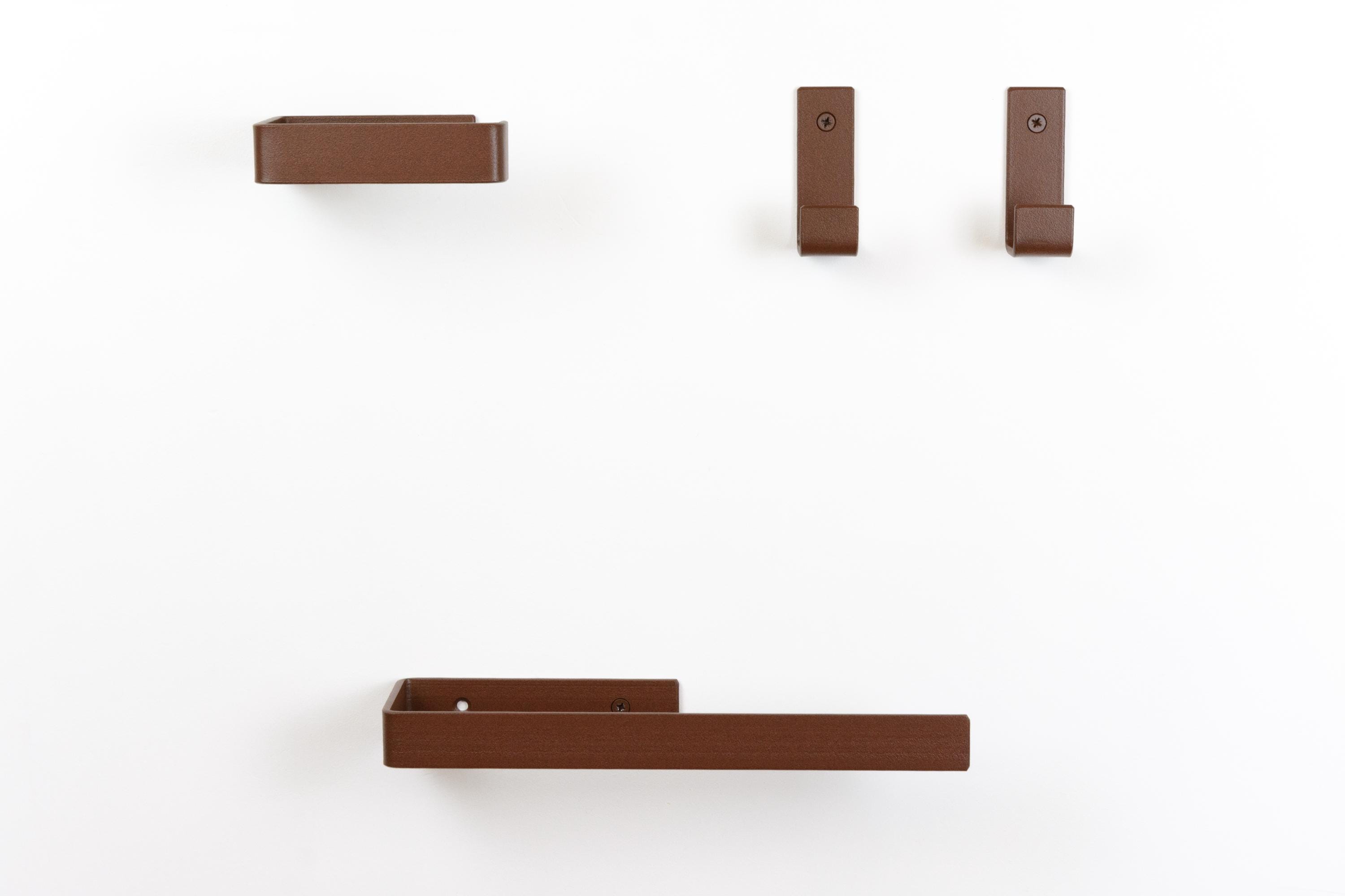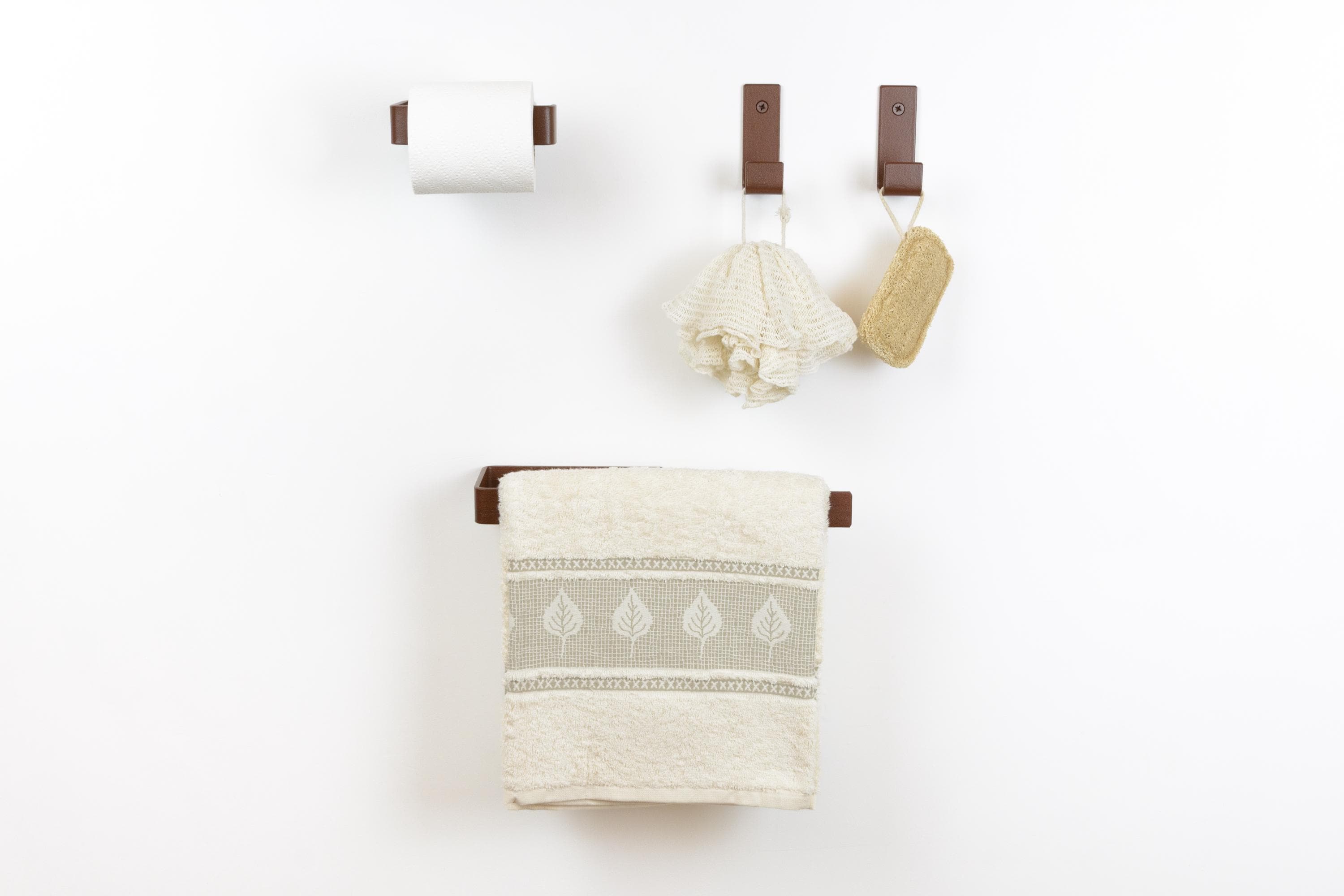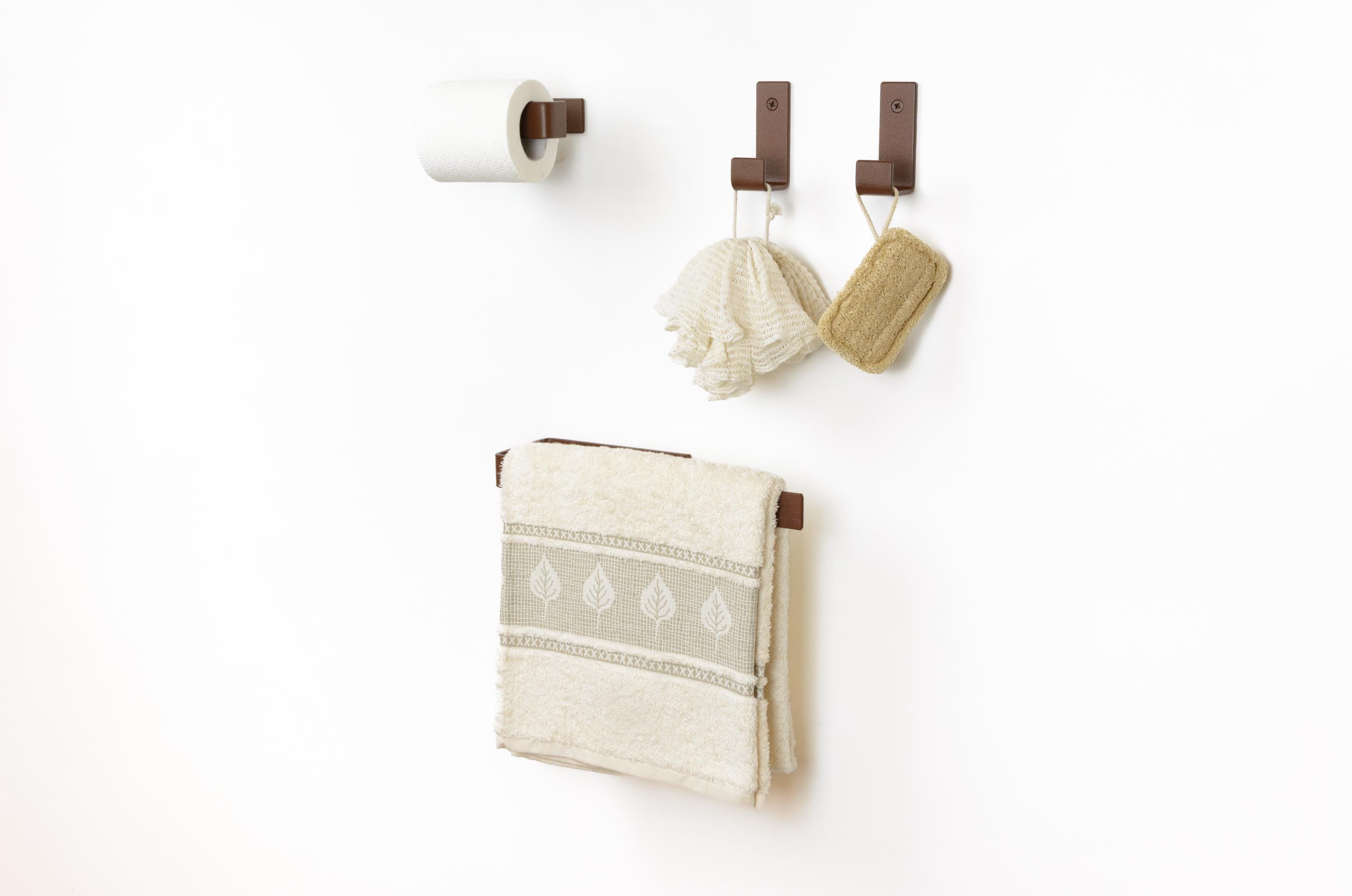 Upgrade your home with stylish bathroom hardware and build your curated set to match your vision. Easily mix & match color and style options for a toilet paper holder, towel holder or hook that looks great in any space! Color of the items shown in the pictures is Rust Effect.