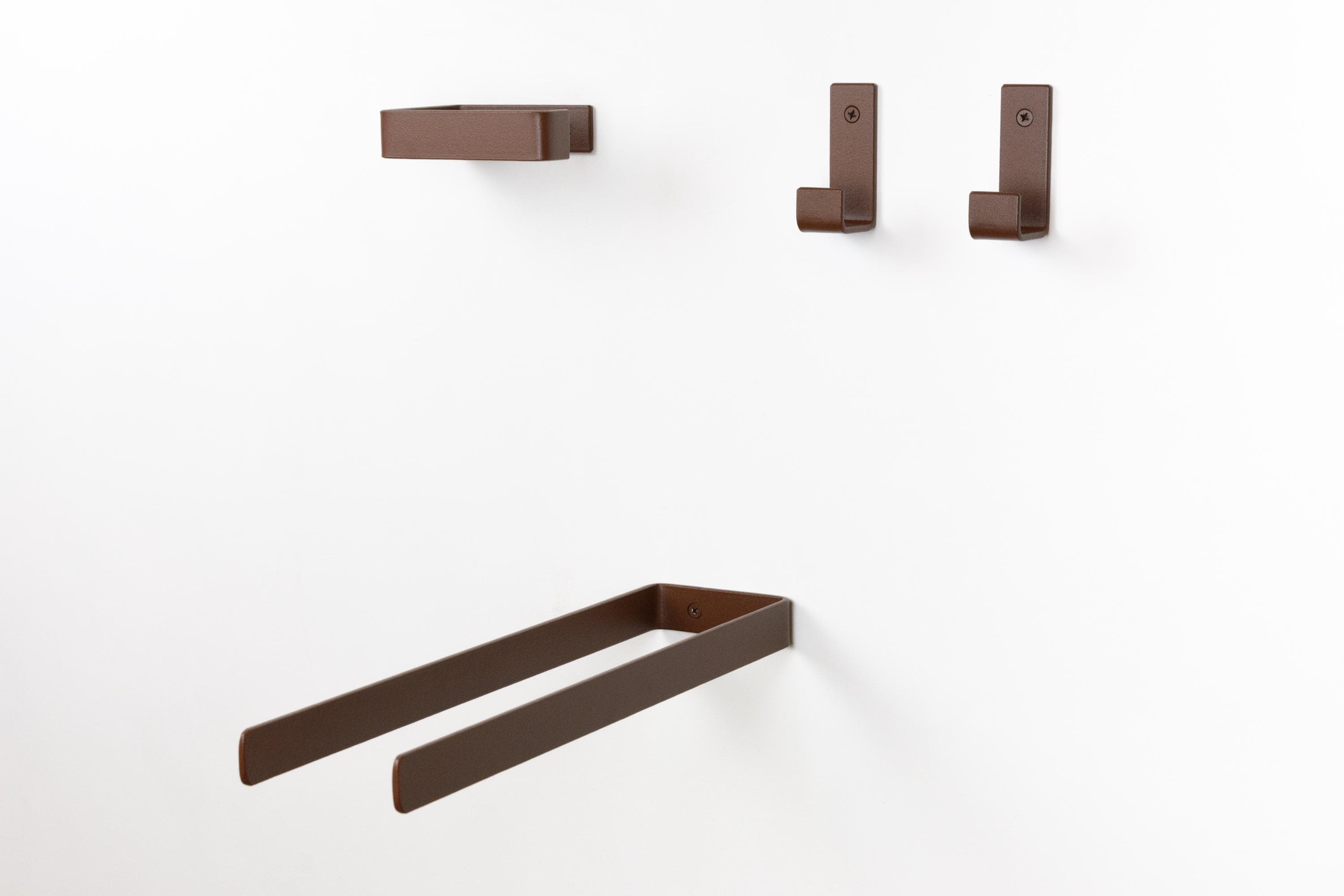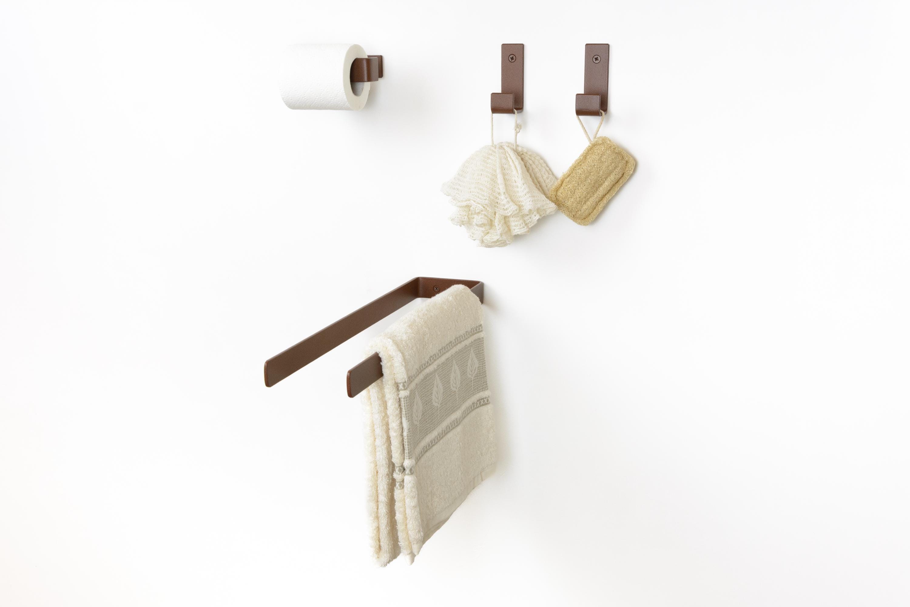 Upgrade your home with stylish bathroom hardware, featuring a toilet paper holder, towel holder or hook. Easily mix and match your favorite color, style, and size home decor to create a space you truly love! Color of the items shown in the pictures is Rust Effect.