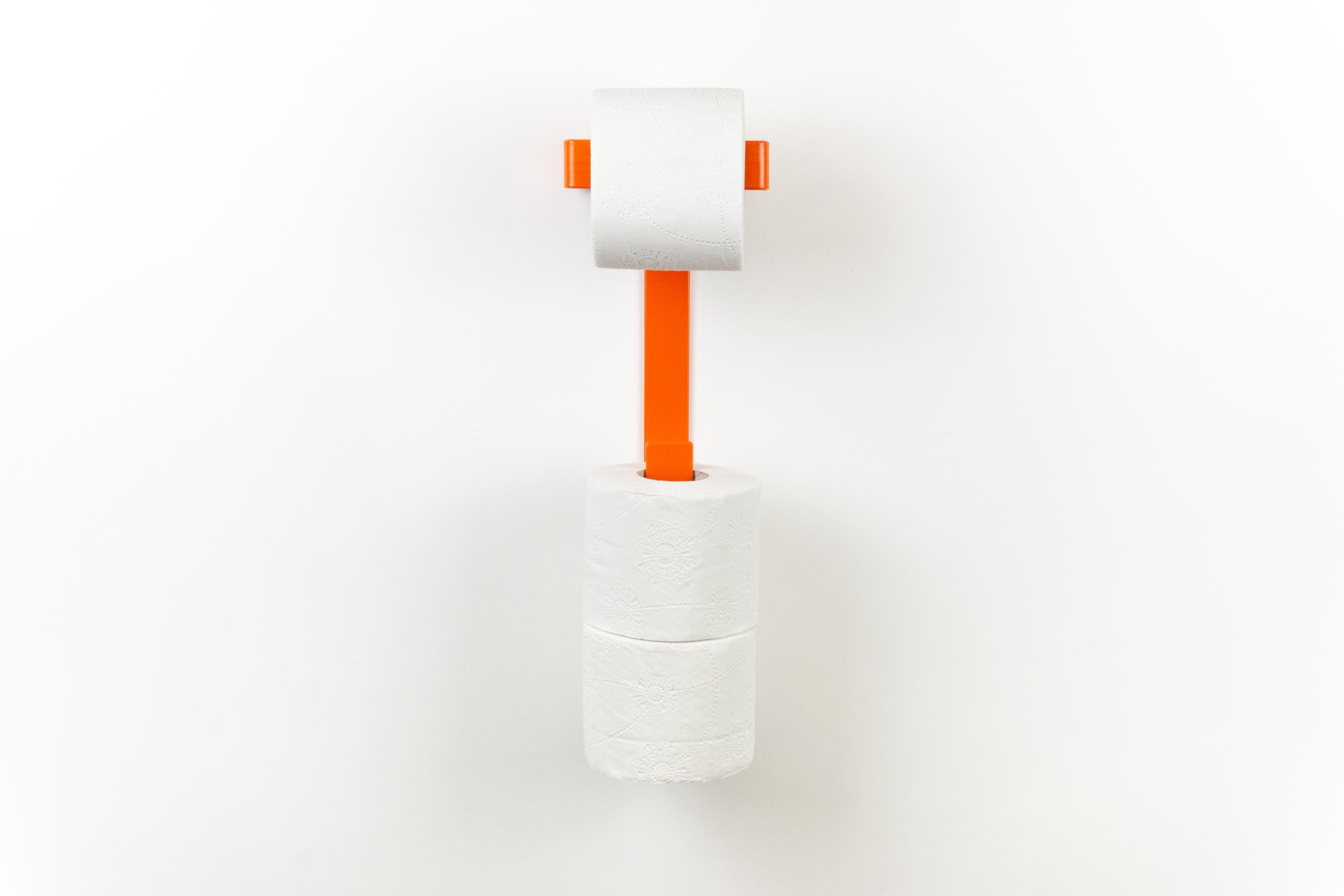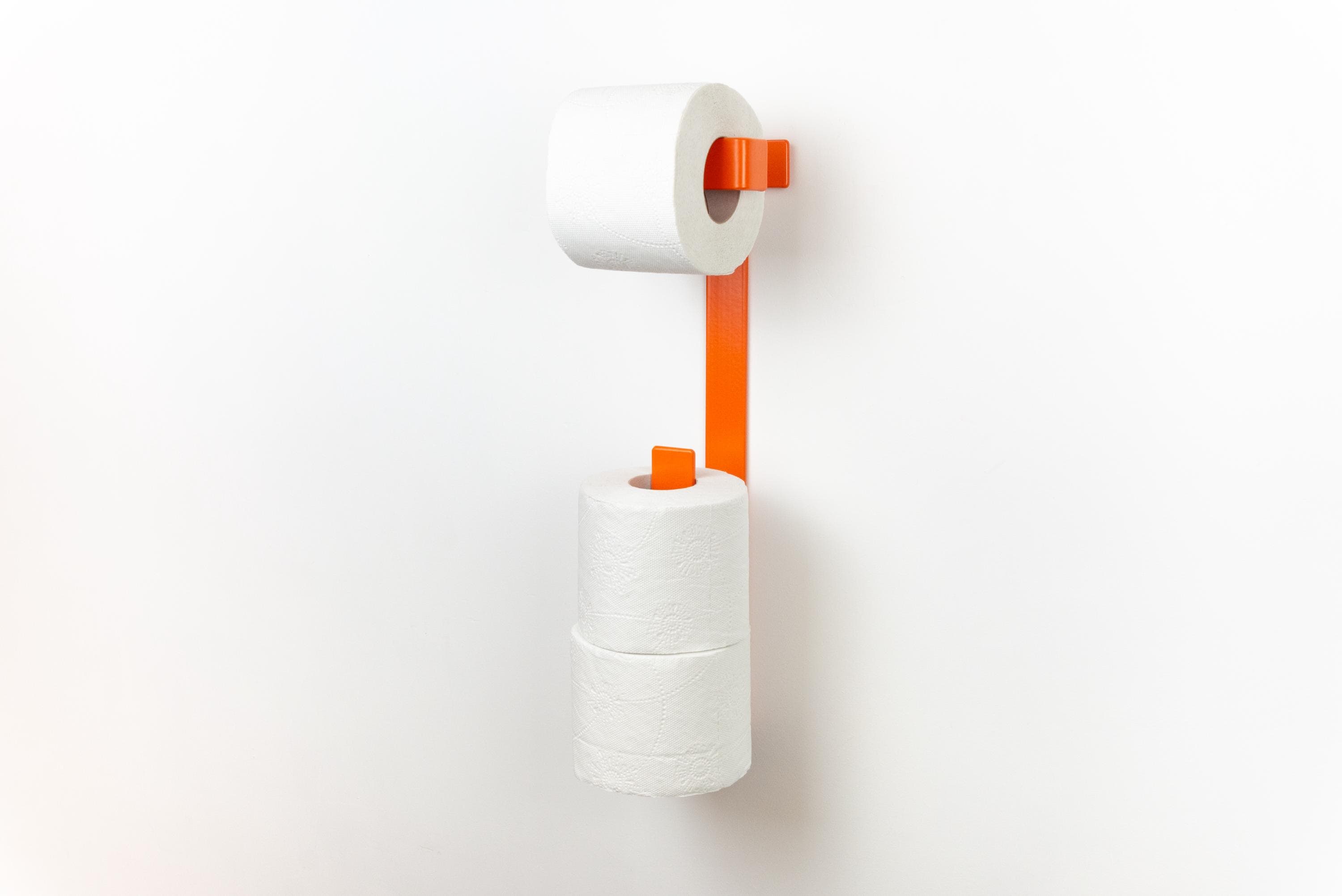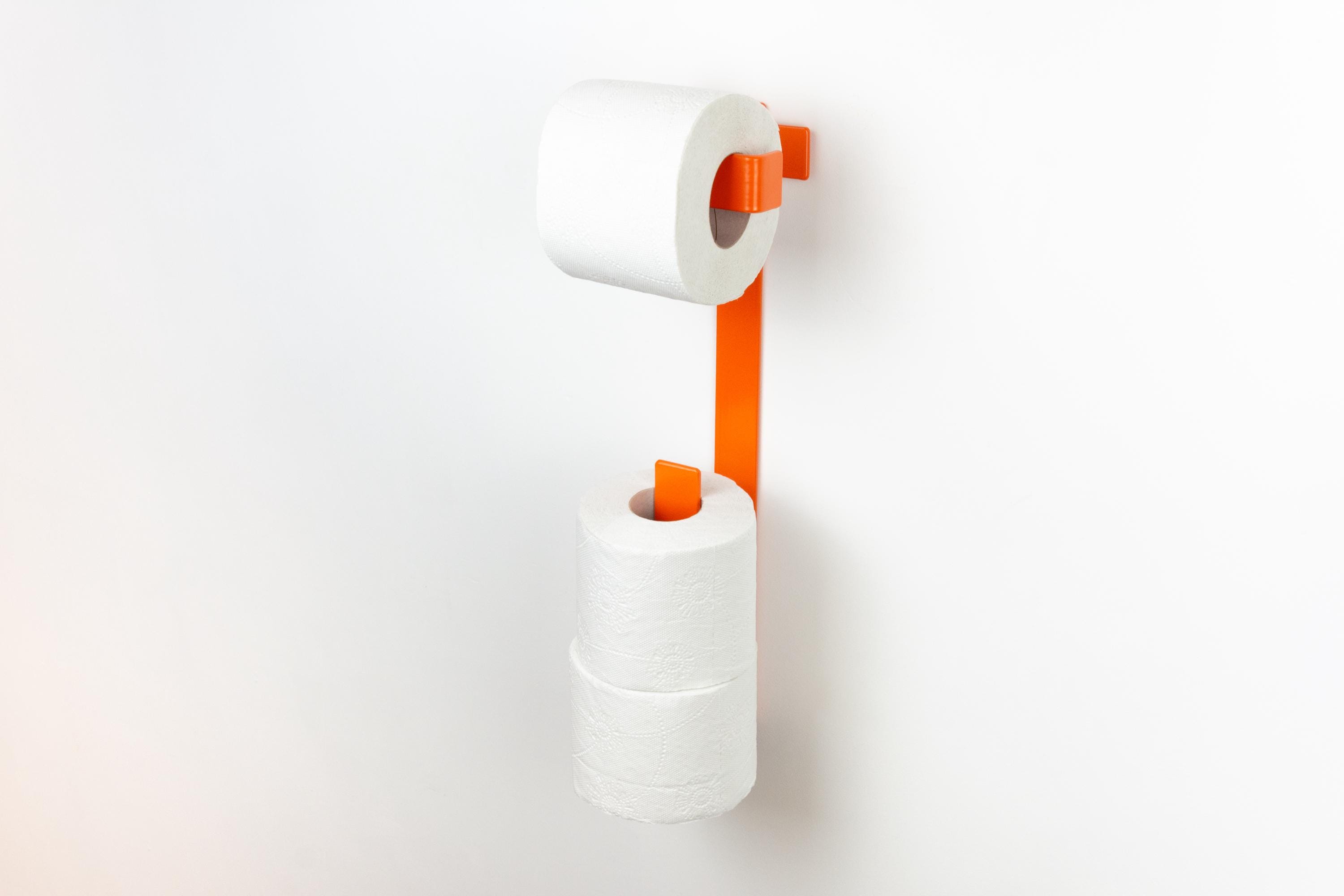Add a bold touch to your home with this vibrant 3 roll toilet paper holder, which serves as a modern colorful bathroom organizer and spare tissue storage. This eye-catching piece is pictured in the color Orange Matte, perfect for creating a lively and stylish atmosphere!